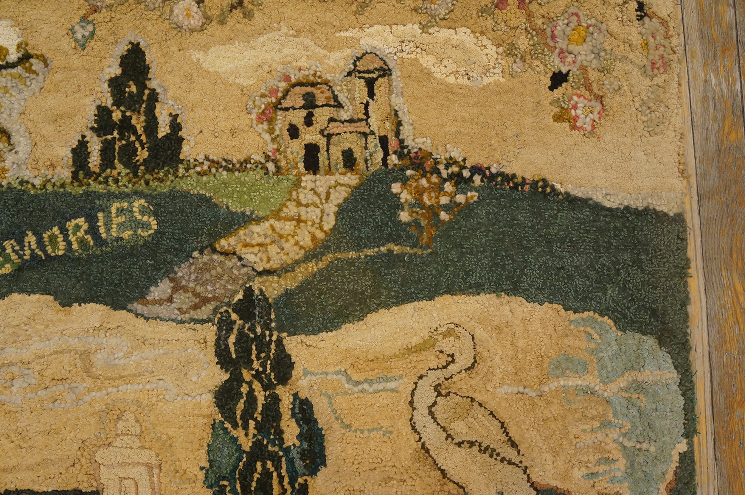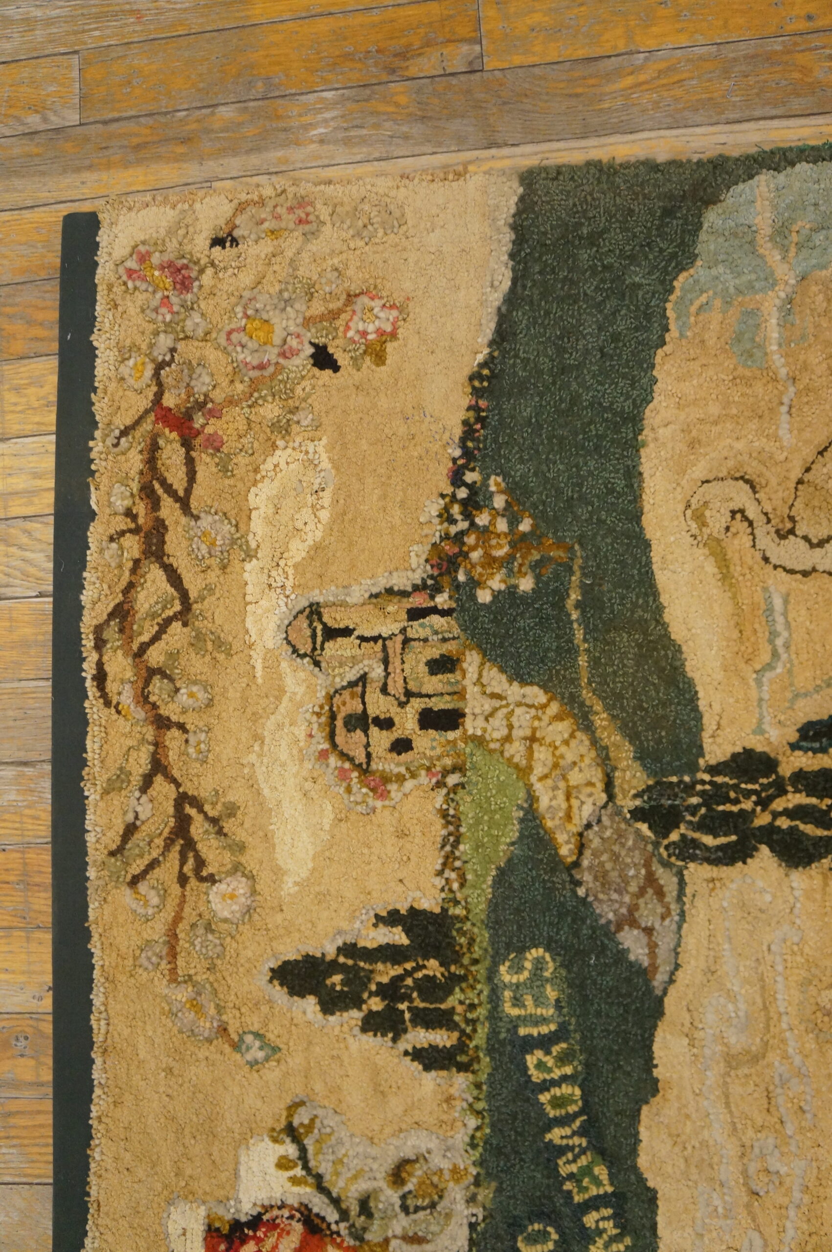 Crafted entirely of wool, the texture is robust yet soft, showcasing the longevity of 1930s handiwork. This remarkable artifact offers both historical context and sophisticated visual interest, making it a compelling acquisition for collectors seeking distinguished and rare antique rugs with a strong narrative presence.