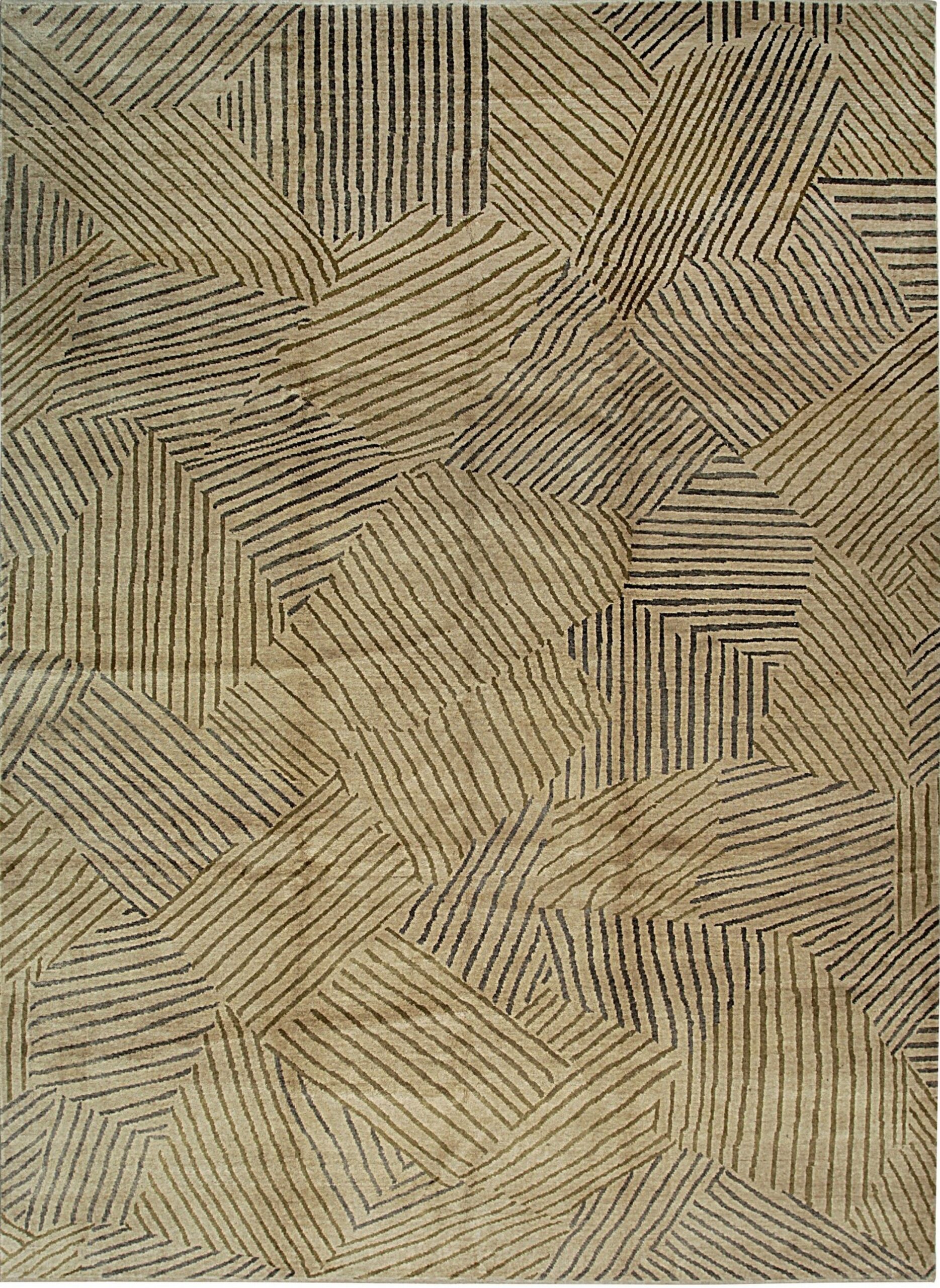Nadia Mira Beige Nan Rug, Country of Origin: China. This piece offers a striking departure from traditional motifs, showcasing a dynamic, all-over abstract design. The hand-knotted construction speaks to the enduring quality of Chinese rugs craftsmanship, reinterpreted for the contemporary interior.