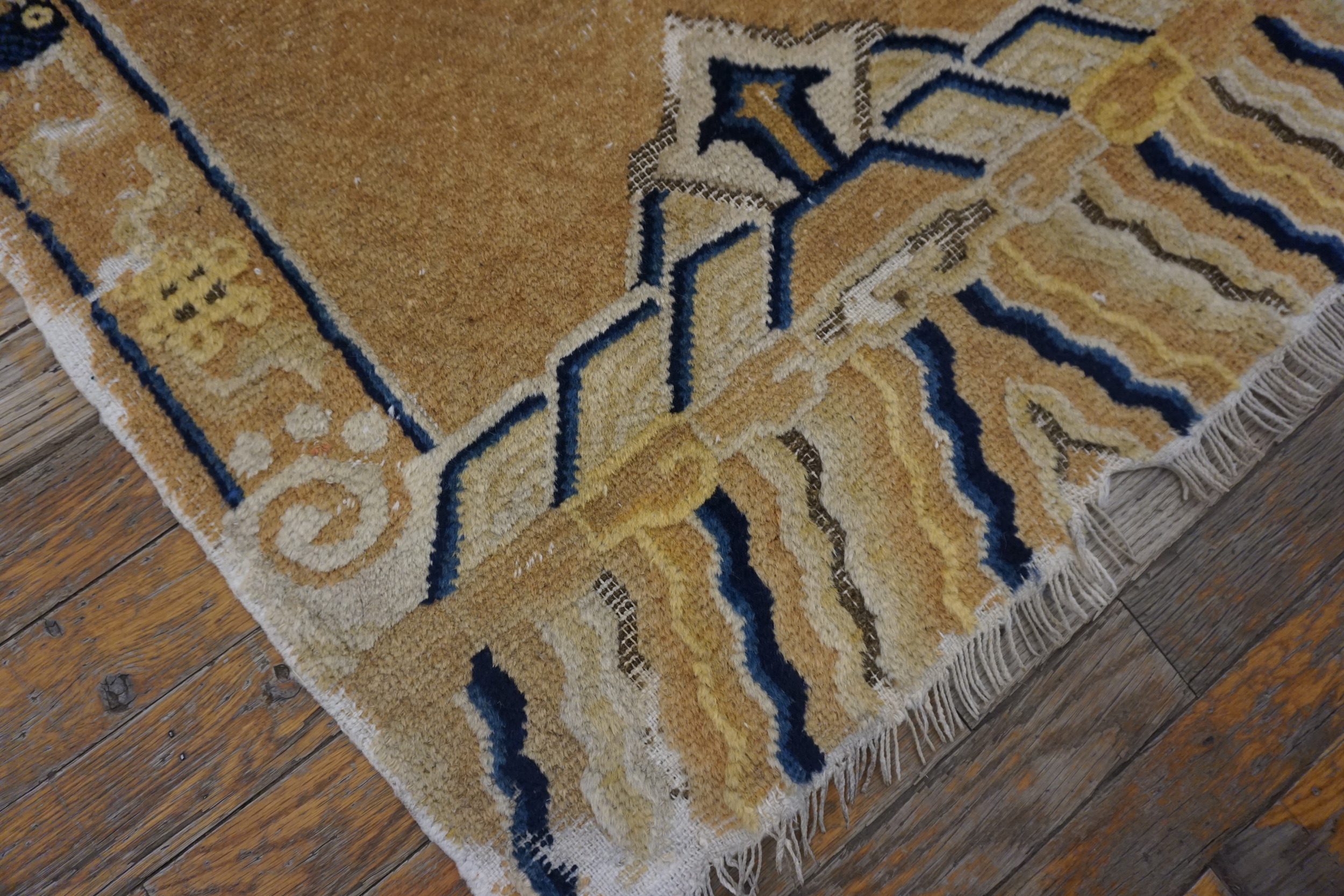 Antique Chinese – Ningxia Ivory 1850s Rug, Circa Date: 1850s. This exceptional example of 19th-century weaving hails from the Ningxia region, renowned for producing some of the most distinctive and highly sought-after antique rugs of the Qing Dynasty. Its restrained palette and powerful central imagery define its rarity and historical significance.