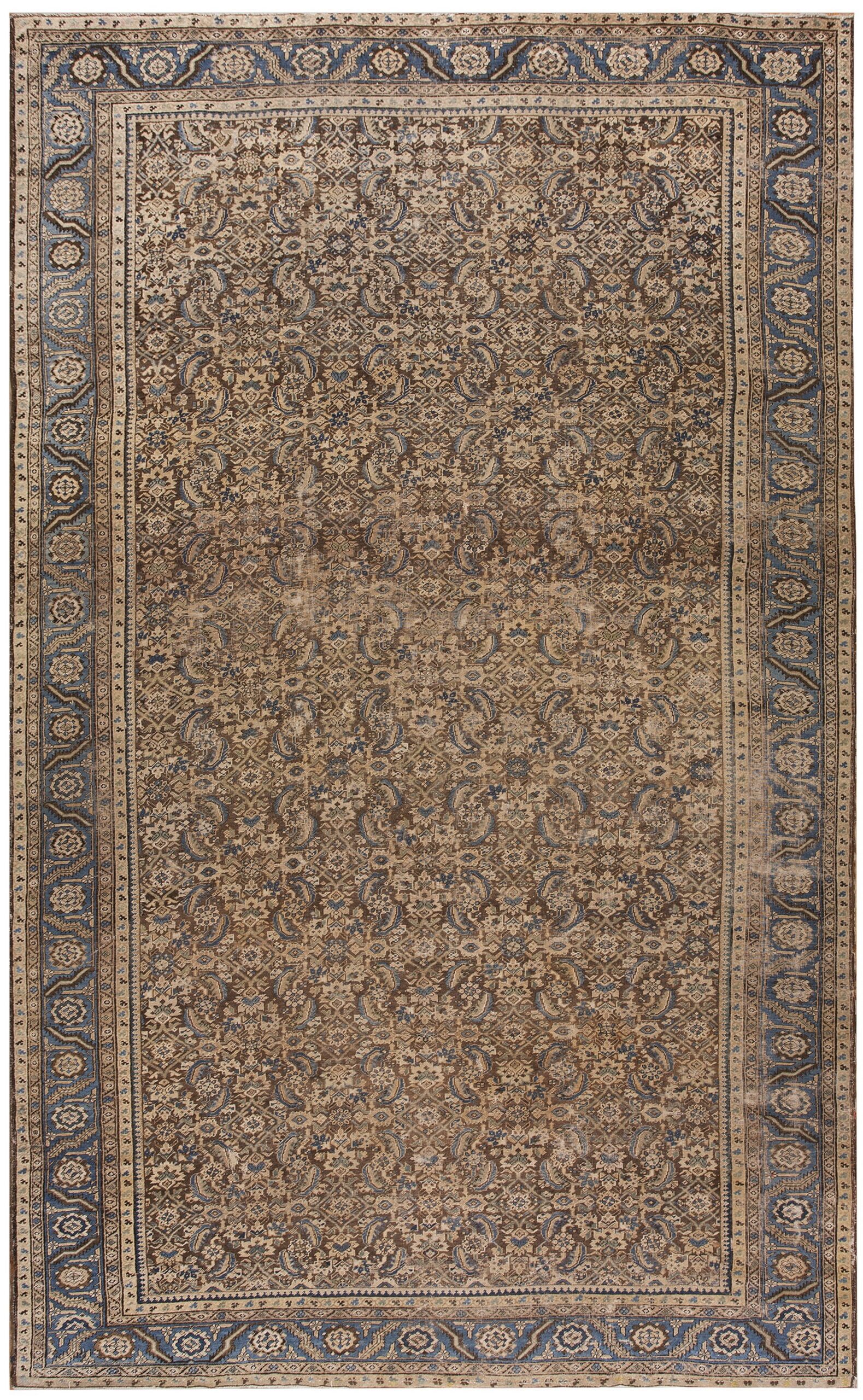 Antique Large Bakshaish Geometric Knotted Rug, Circa Date: 1890s. This exceptional example of a bakshaish rug showcases the distinctive tribal-geometric aesthetic favored by weavers in the Heriz region during the late 19th century. The intricate all-over pattern, characterized by highly stylized botanical and geometric elements, creates a mesmerizing visual texture.
