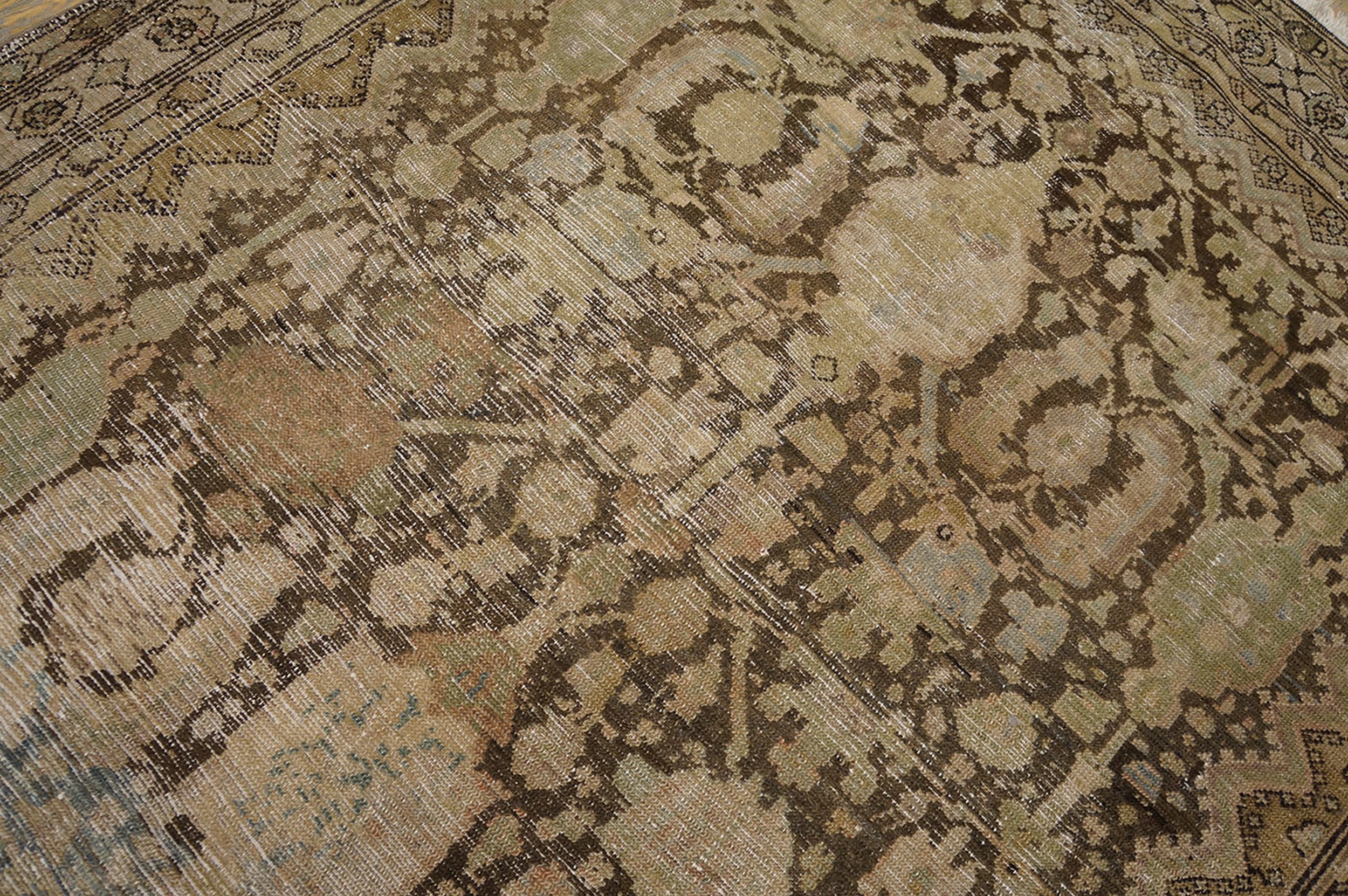 Woven in a versatile small scatter size, this Malayer is perfectly suited for use as an accent piece in an entryway, beside a chair, or layered over larger flooring. Its durable wool foundation and compact structure ensure that, despite its age, it remains a robust and functional textile, ideal for high-traffic areas where a touch of history is desired.