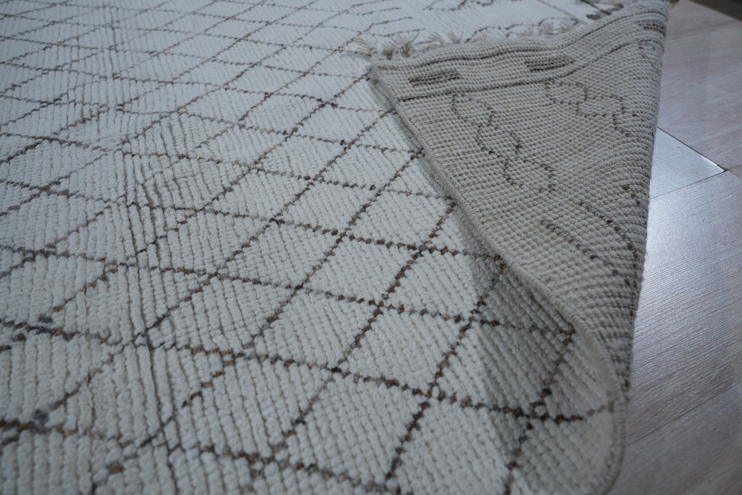 Jasmine Moroccan Ivory Hand Knotted Wool Rug, Country of Origin: Pakistan. This stunning piece captures the timeless appeal of North African design while showcasing the exceptional craftsmanship inherent in Pakistani rugs. Hand-knotted from luxurious wool, the rug offers a plush texture and robust construction, ideal for high-traffic areas.