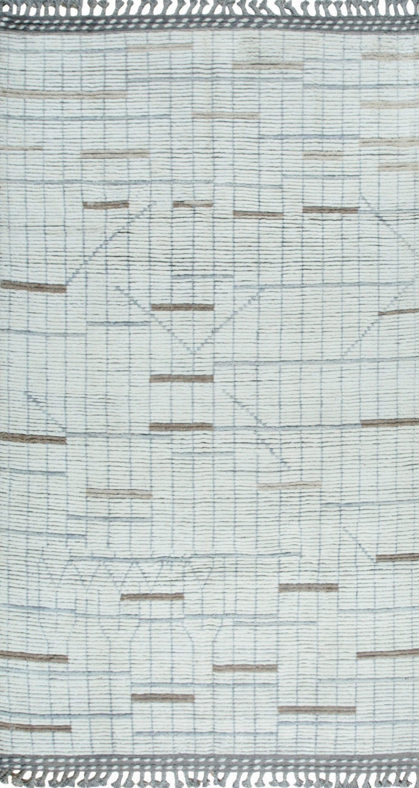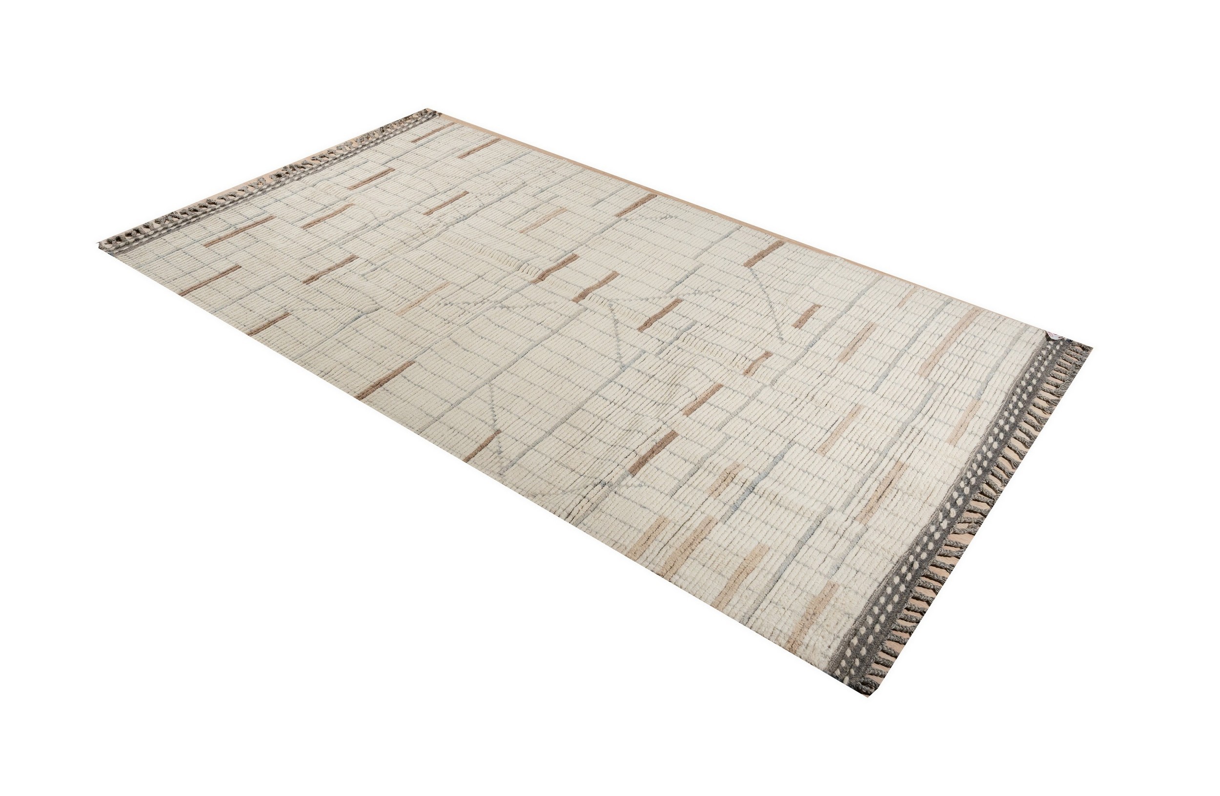 Marrakech Ivory Haze Hand-Knotted Berber Carpet, Country of Origin: Pakistan. This exquisite piece embodies modern minimalism, offering a highly textural field defined by subtle geometric linearity. The craftsmanship reflects the sophisticated weaving heritage of Pakistani rugs, blending traditional hand-knotting techniques with a distinctly contemporary design vision.