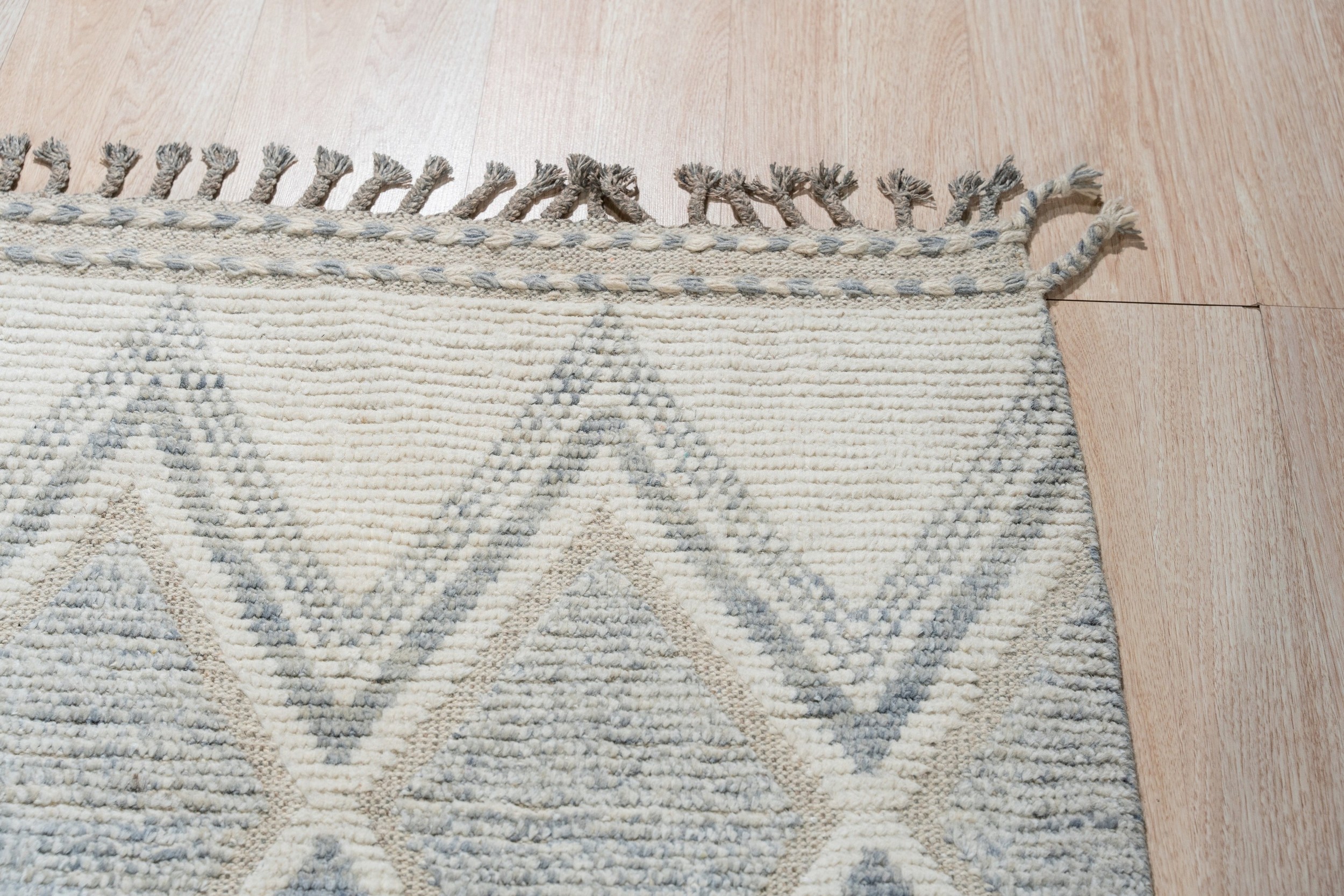 New Moroccan Beni Ourain Diamond Design Beige Hand-Knotted Modern Wool Berber Carpet