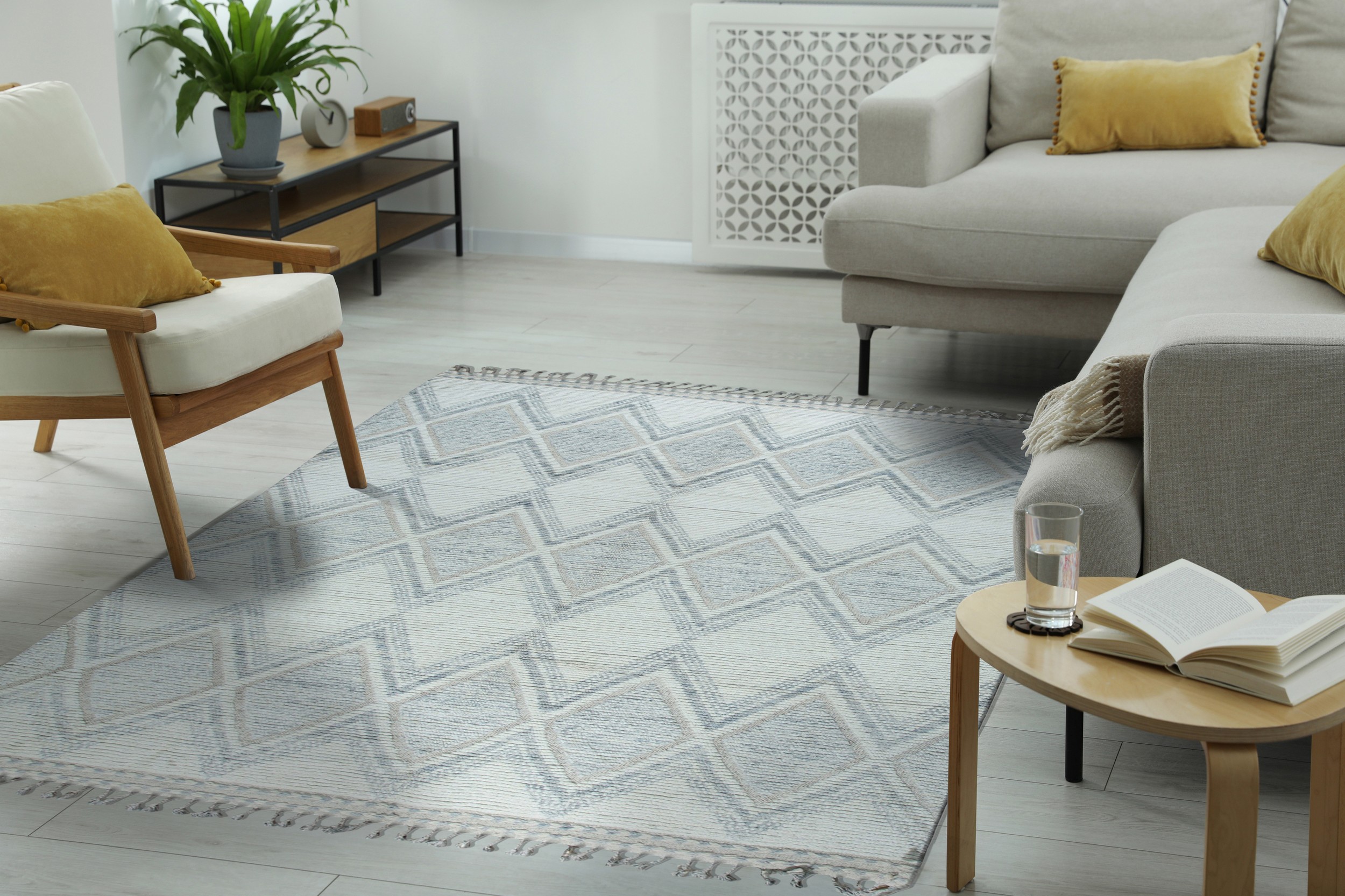 The palette is deliberately subtle, utilizing soft, tonal variations of cream, pale grey, and warm beige. This neutral foundation allows the rug to harmonize effortlessly with diverse furnishing styles, from minimalist Scandinavian to layered maximalism. Explore our curated selection of ivory and beige rugs to find the perfect complementary piece for your living area or bedroom.