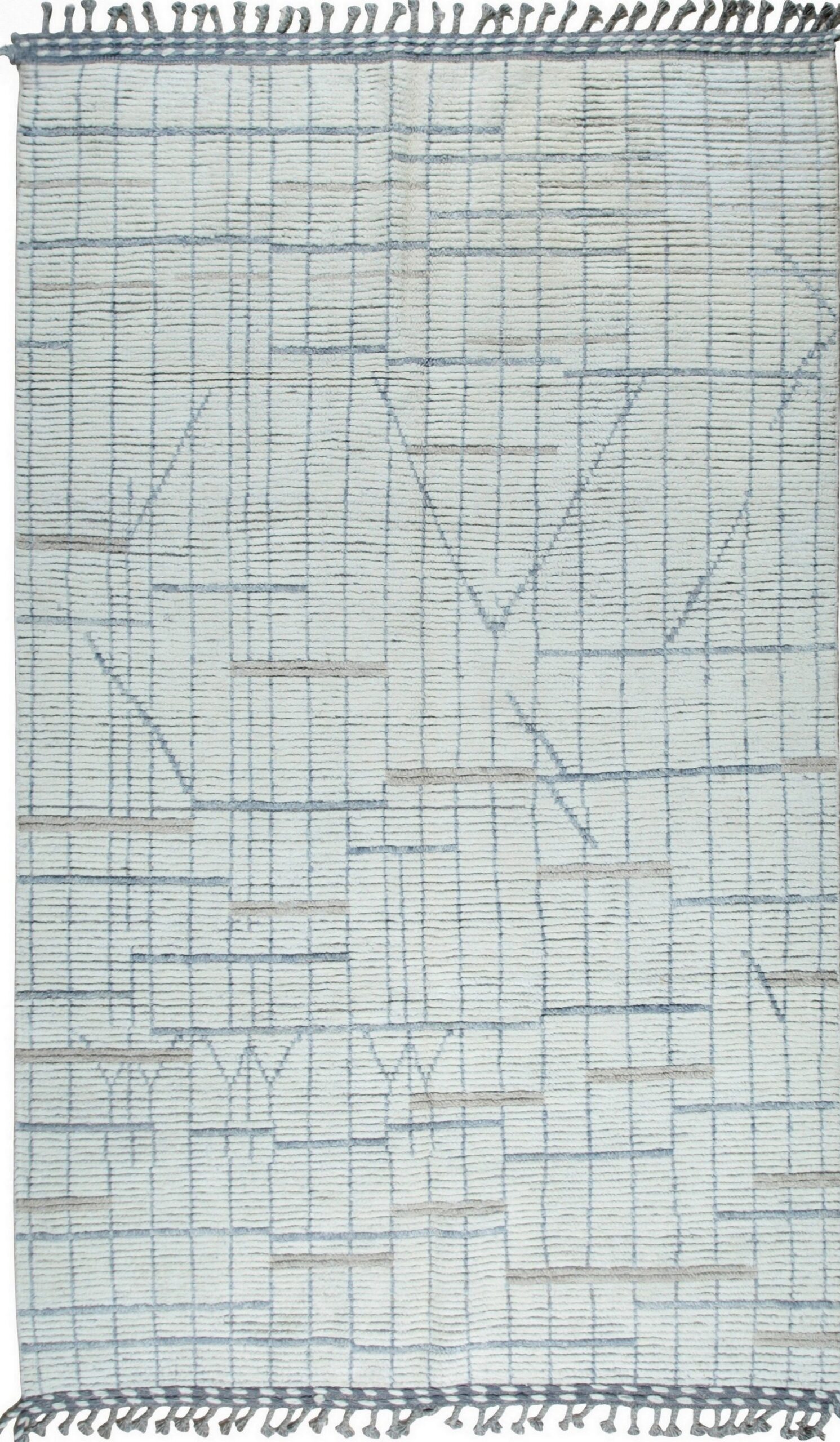 Marrakech Ivory Drift Hand-Knotted Berber Carpet, Country of Origin: Pakistan. This exquisite piece defines modern elegance, blending traditional hand-knotting techniques with a thoroughly contemporary design sensibility. The subtle texture and graphic lines reflect the high quality expected from Pakistani rugs.