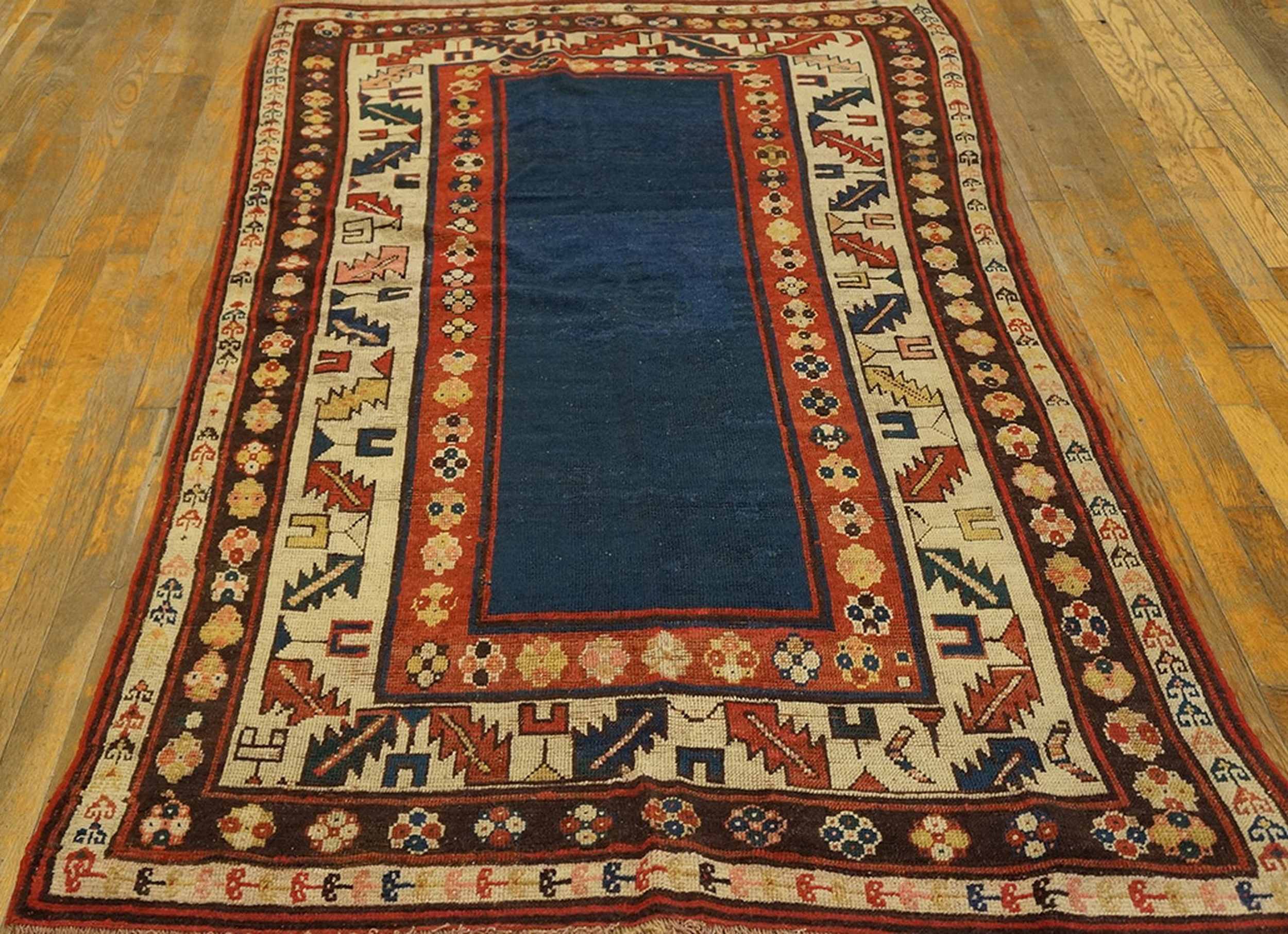Antique Caucasian Caucasian 1900s Rug, Country of Origin: Caucasus, Circa Date: 1900s. This exceptional example of early 20th-century weaving presents a striking visual contrast, dominated by a saturated indigo field framed by complex, richly colored borders. It represents the robust and enduring tradition of Caucasian rugs.
