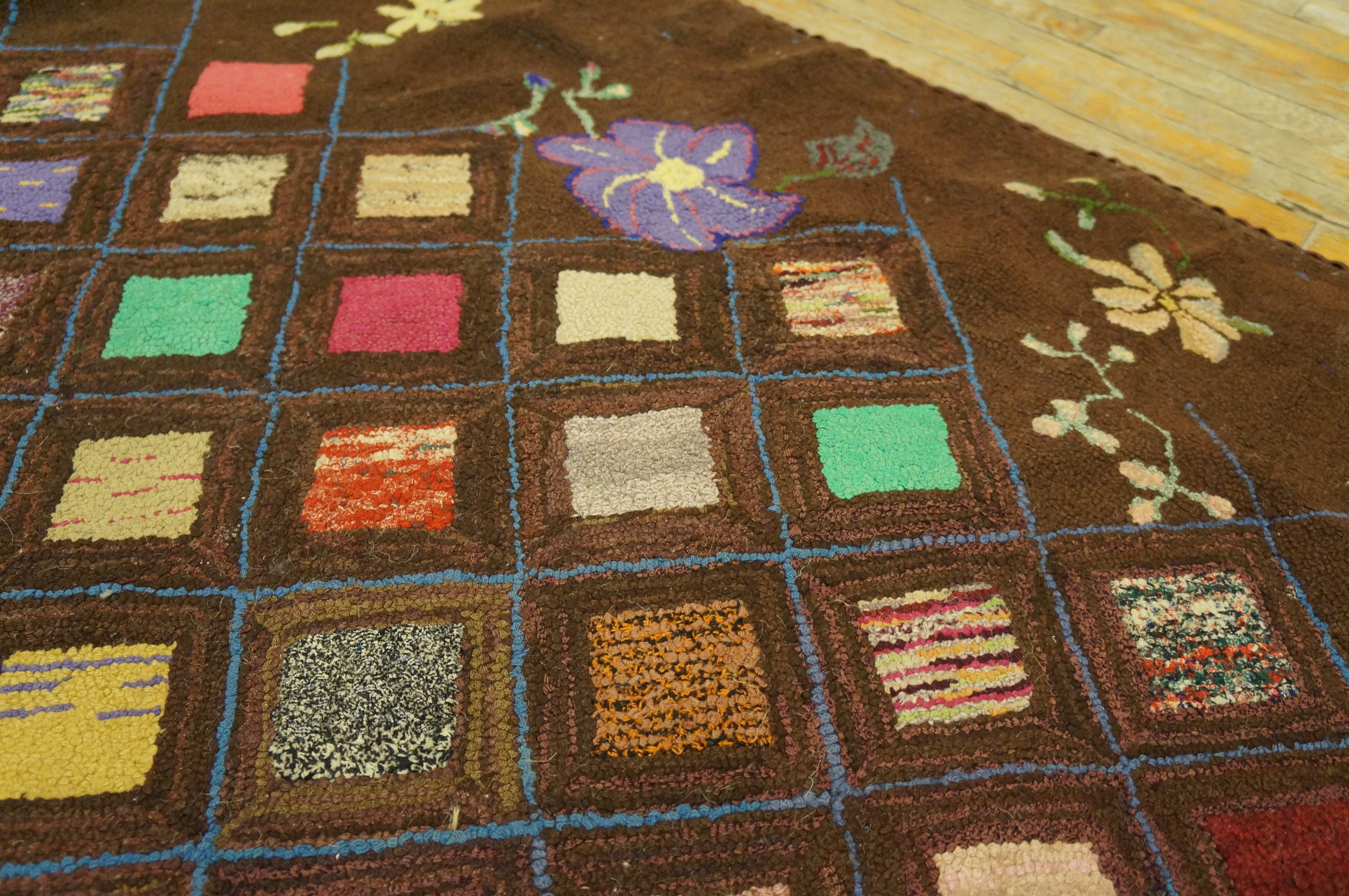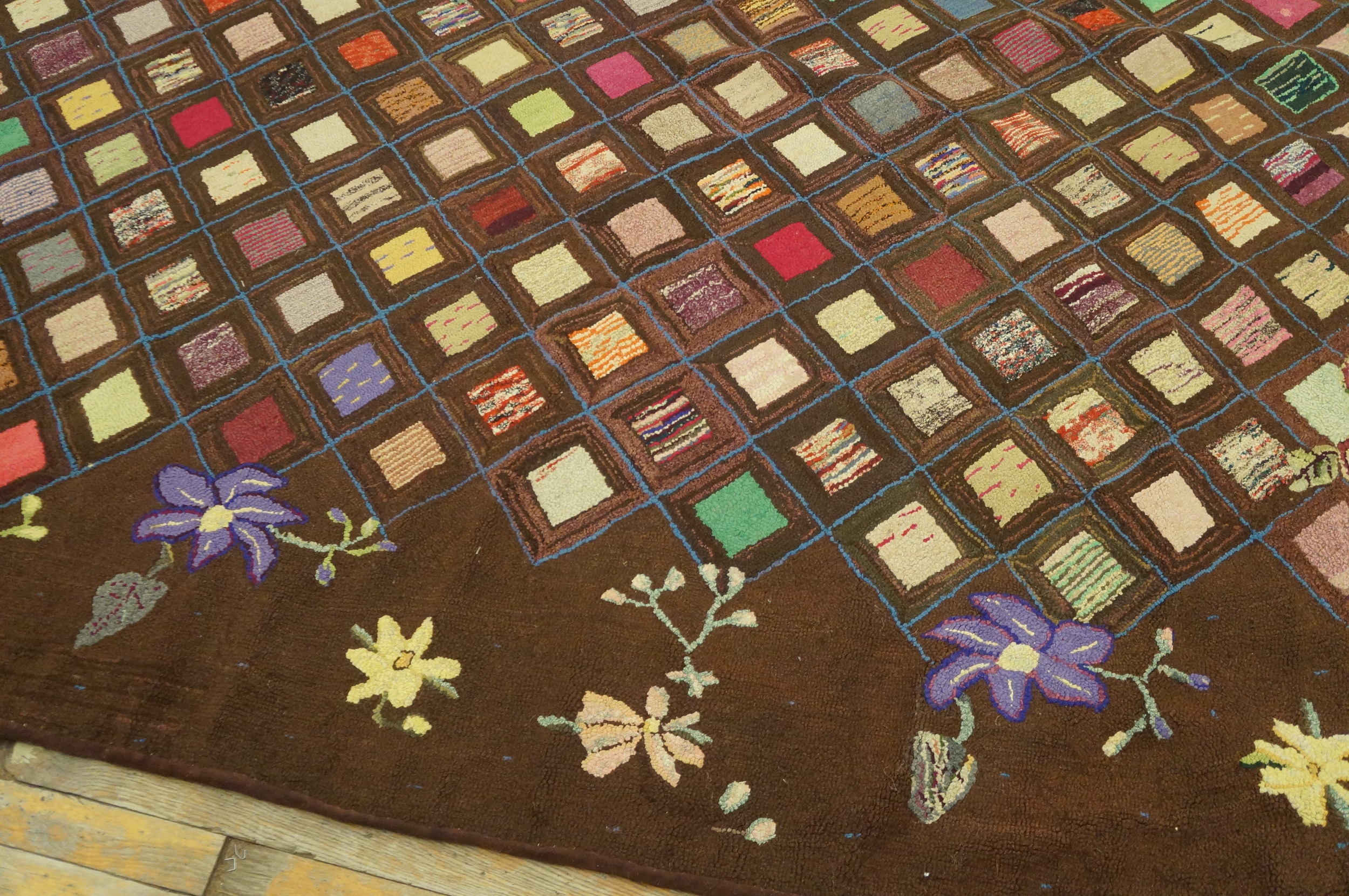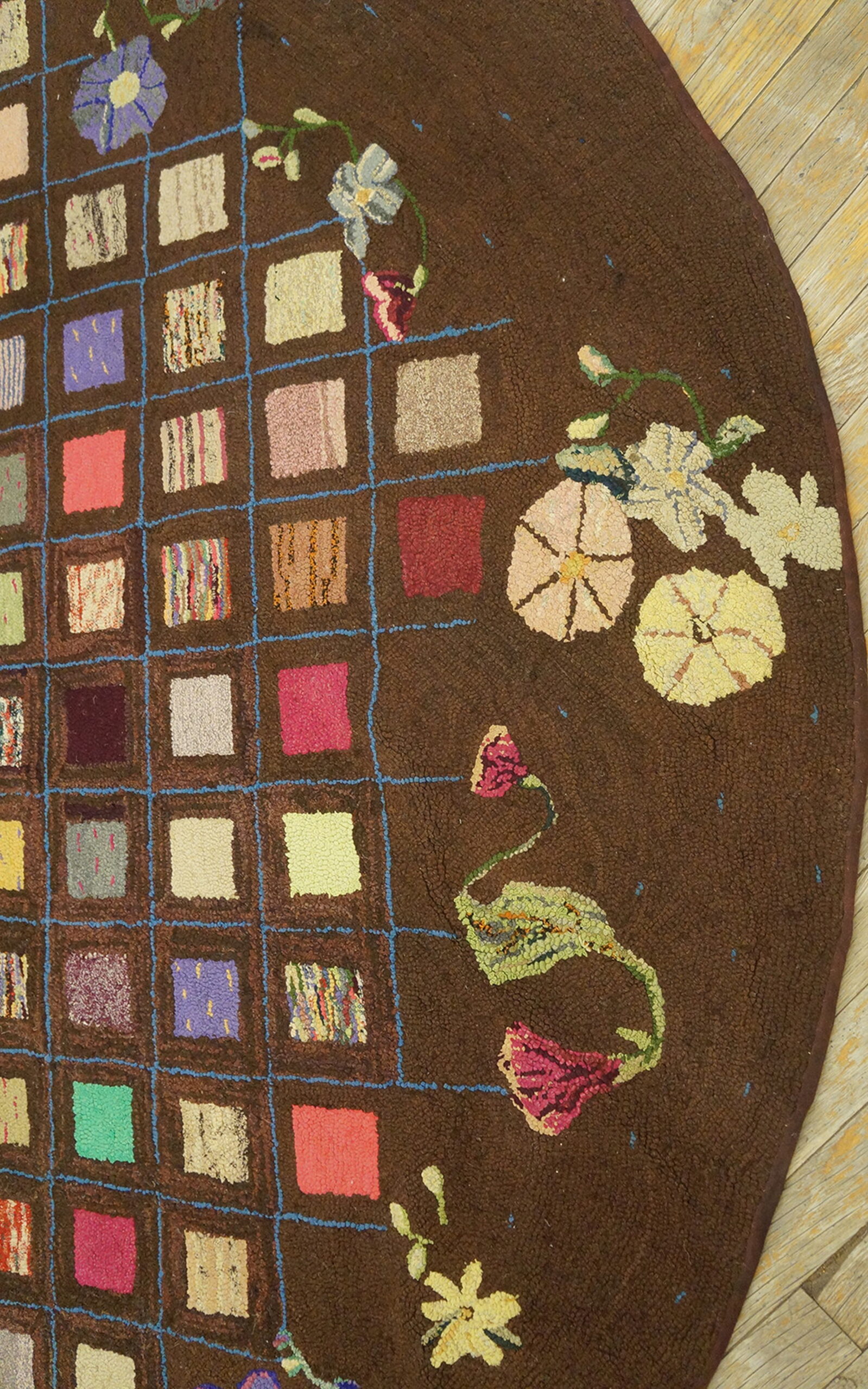 Antique American Hooked Rug American Brown 1920s, Circa Date: 1920s. This exceptional piece is a testament to the enduring American folk art tradition. The technique, known as rug hooking, flourished in the early 20th century, resulting in unique and highly personal textiles. This specific example is a remarkable addition to our collection of antique rugs.