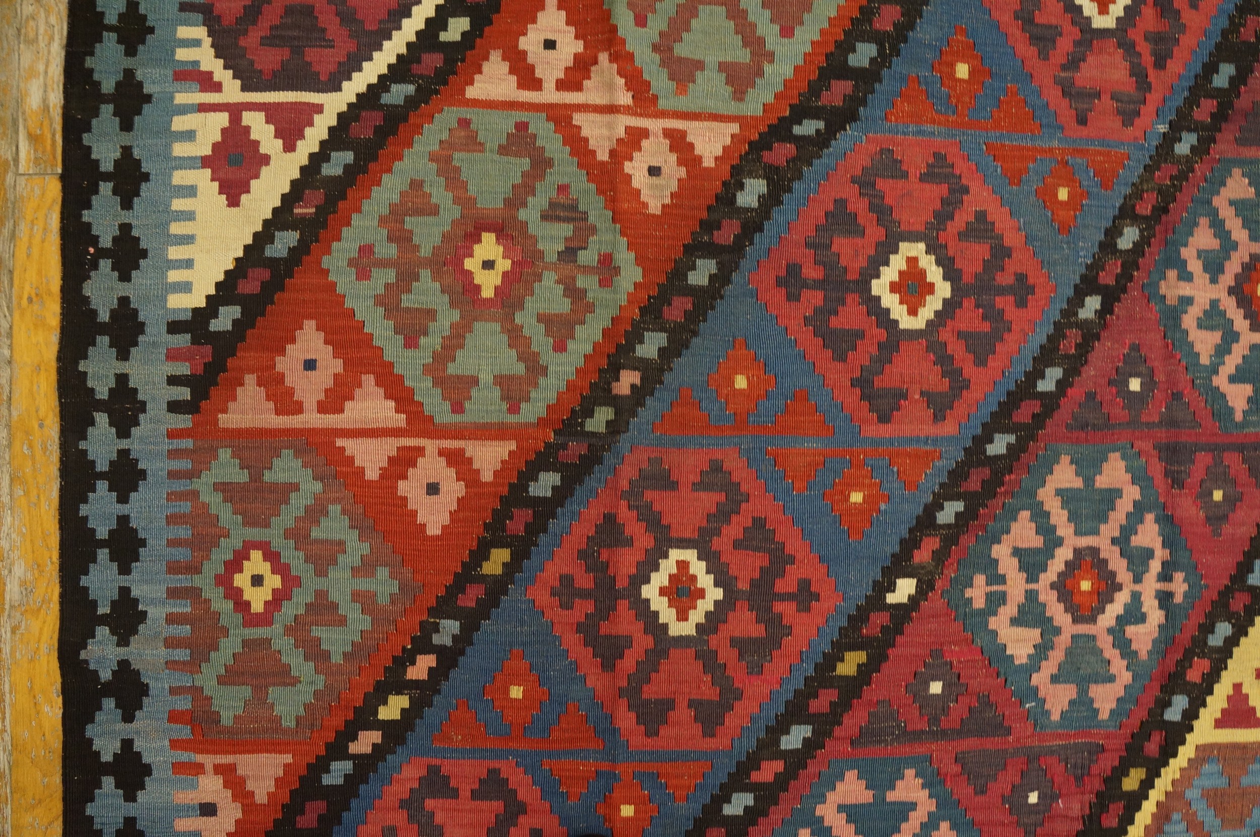 Historically, the late 1800s were a period of intense creative output in the Caucasus, as weavers began to experiment with larger-scale, more ambitious geometric patterns that moved beyond traditional nomadic boundaries. The wool used in this piece is hand-spun from high-altitude sheep, providing a lustrous, durable texture that has developed a soft, organic patina over the last century. The absence of a pile emphasizes the raw, architectural power of the design, making it a favorite for modern collectors who value the “primitive-modernist” aesthetic. To possess a Caucasian kilim of this scale and chromatic vibrancy is to hold a monument to a vanishing way of life—a work that bridges the gap between ancient shamanistic symbolism and the bold, geometric sensibilities of contemporary art.