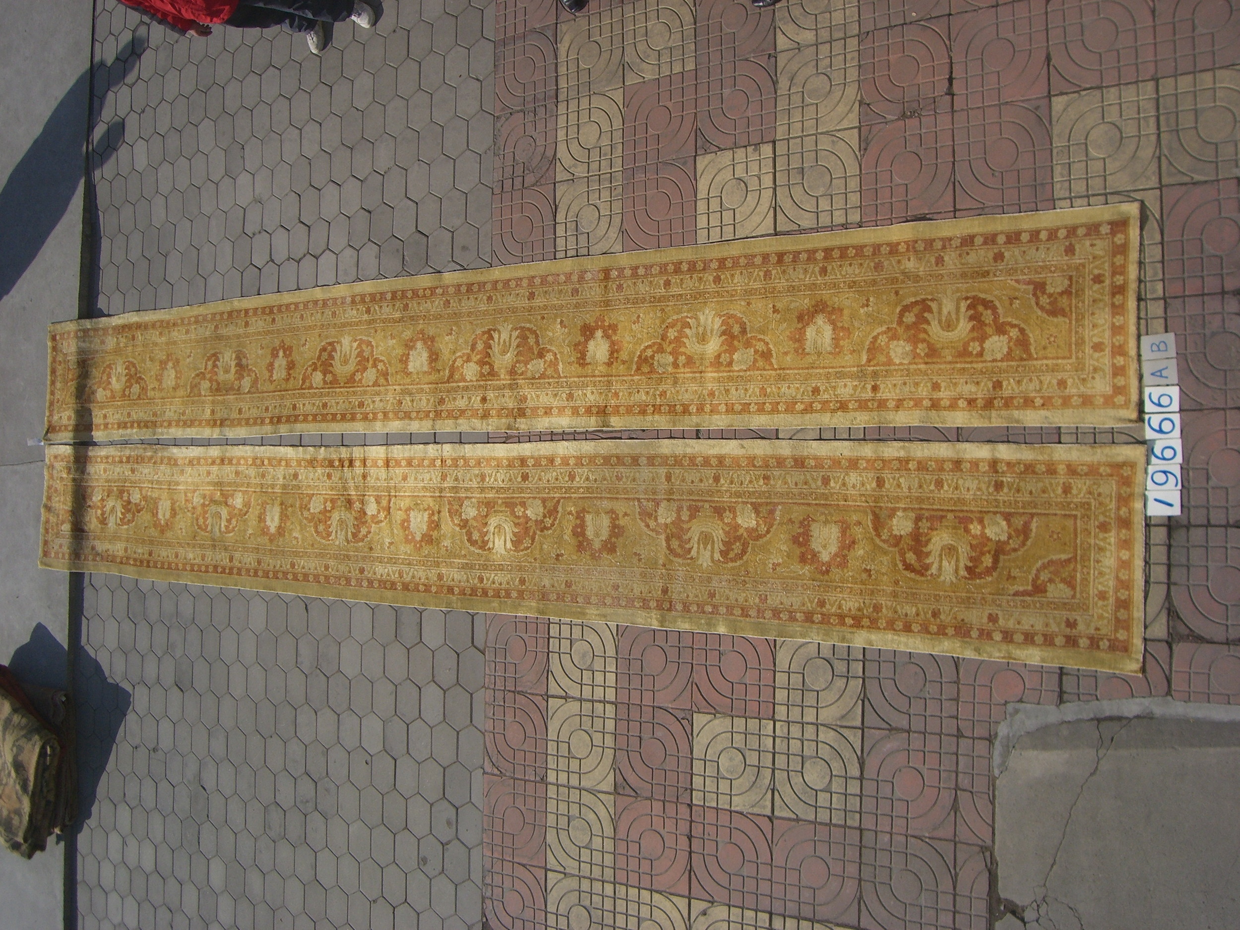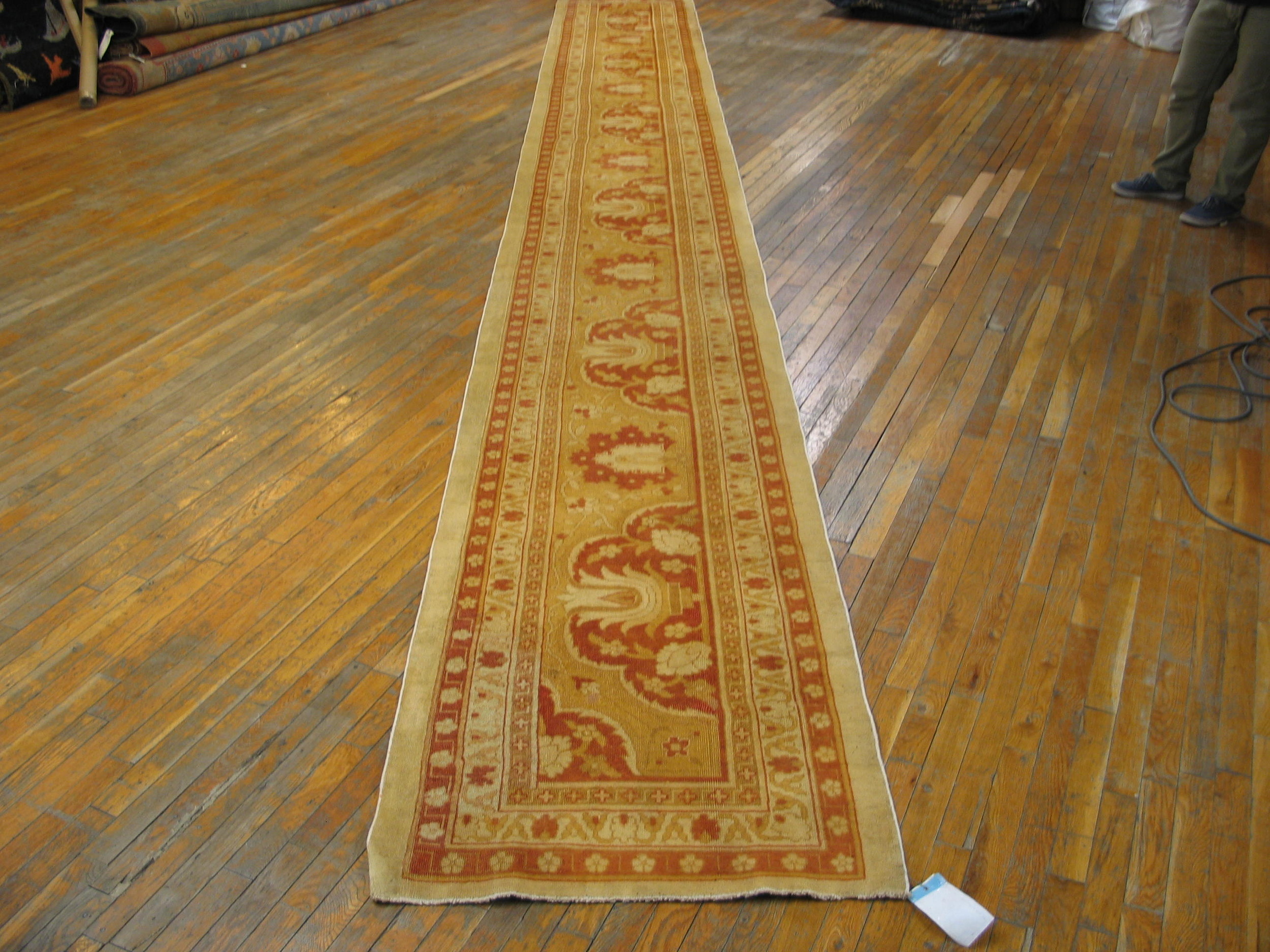 Antique Amritsar Oversized Hallway Runner Wool Ivory Rug, Circa Date: 1900s. This exceptional piece represents the finest weaving traditions of amritsar rugs, known for their adaptation of classical European and Persian motifs. Its generous length defines it as an oversized runner, perfectly suited for grand corridors or expansive entryways.