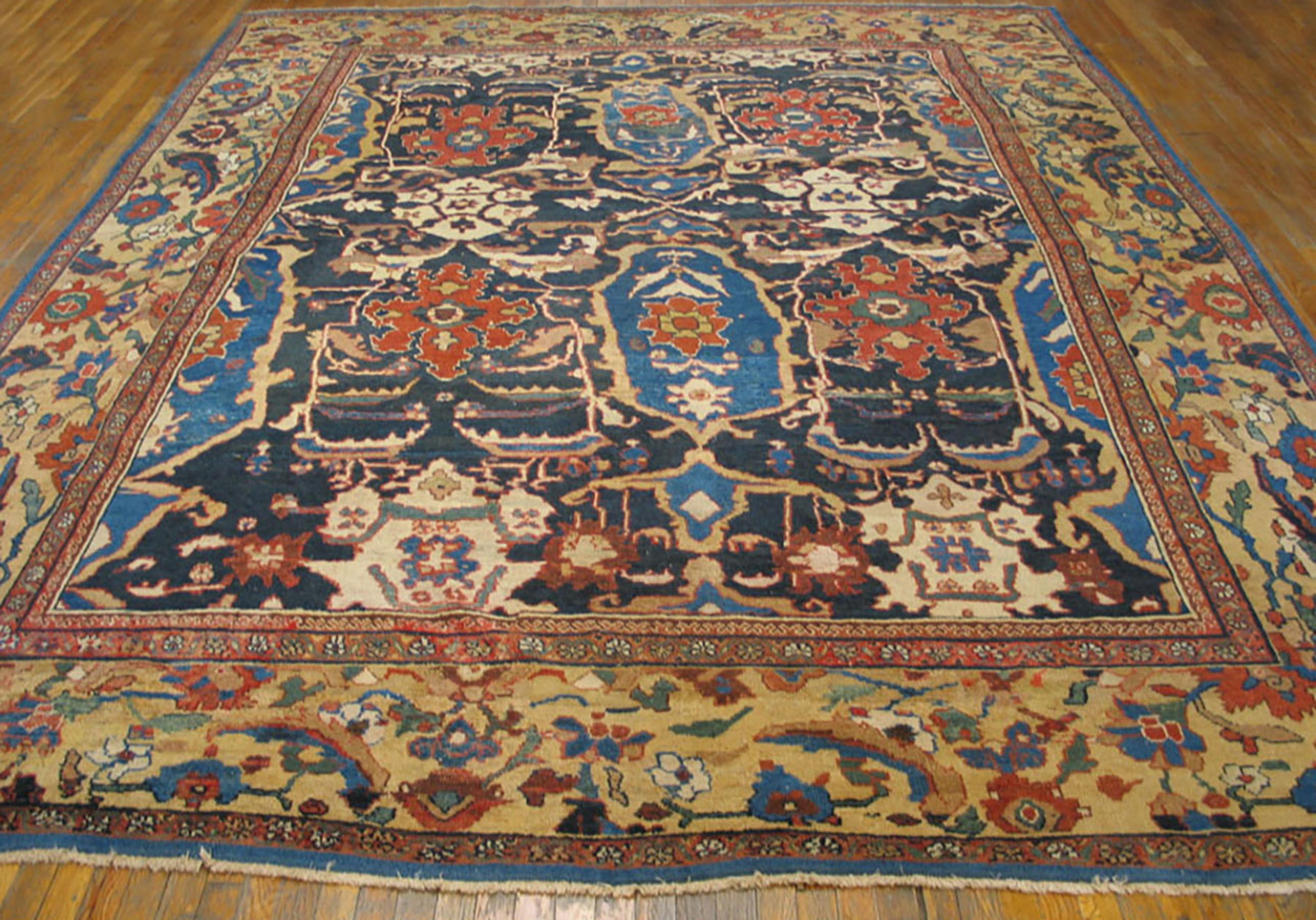 Antique Sultanabad Persian Blue 1880s Rug, Circa Date: 1880s. This magnificent example of late 19th-century Persian weaving represents the pinnacle of decorative antique rugs. Woven in the Sultanabad region, known for producing robust, large-scale designs for the European and American markets, this piece exhibits exceptional structural integrity and rich, naturally dyed wool.