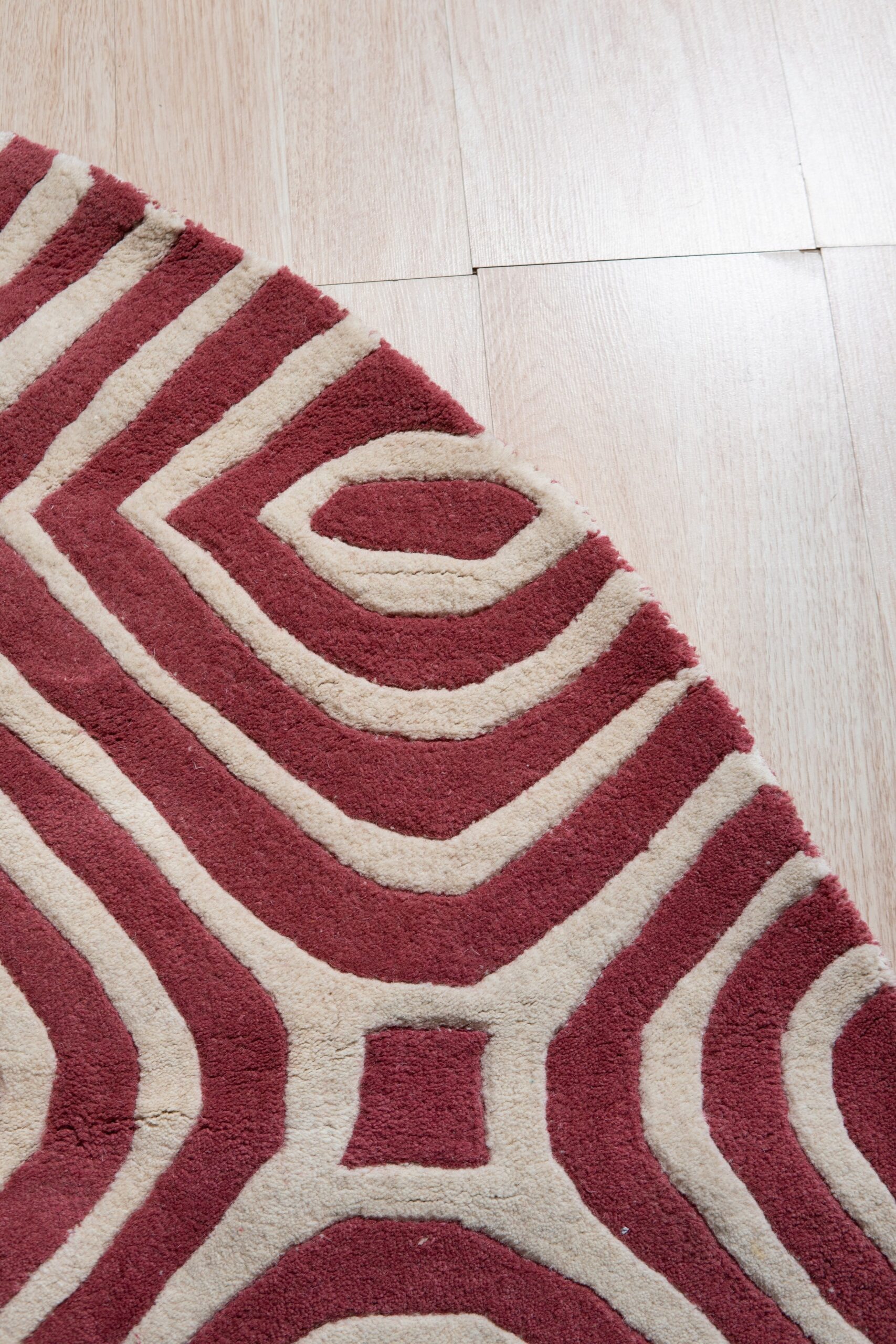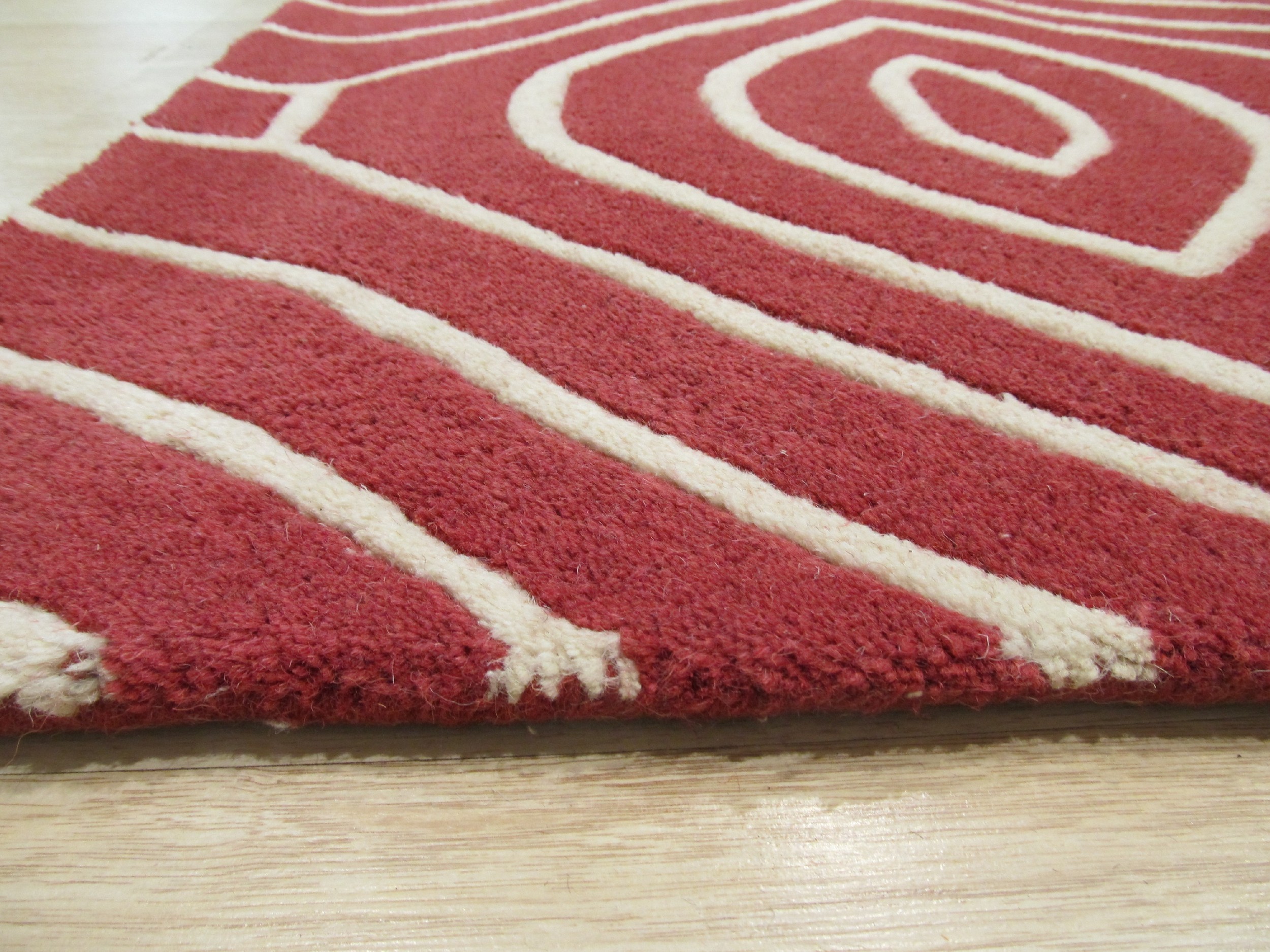 Quinn Luxurious Red Hand Tufted Wool Rug, Country of Origin: India. This contemporary piece showcases the exceptional craftsmanship associated with Indian rugs, offering both luxurious texture and modern visual impact. Hand-tufted from premium wool, the dense pile provides a soft, durable foundation suitable for high-traffic areas.