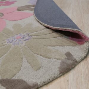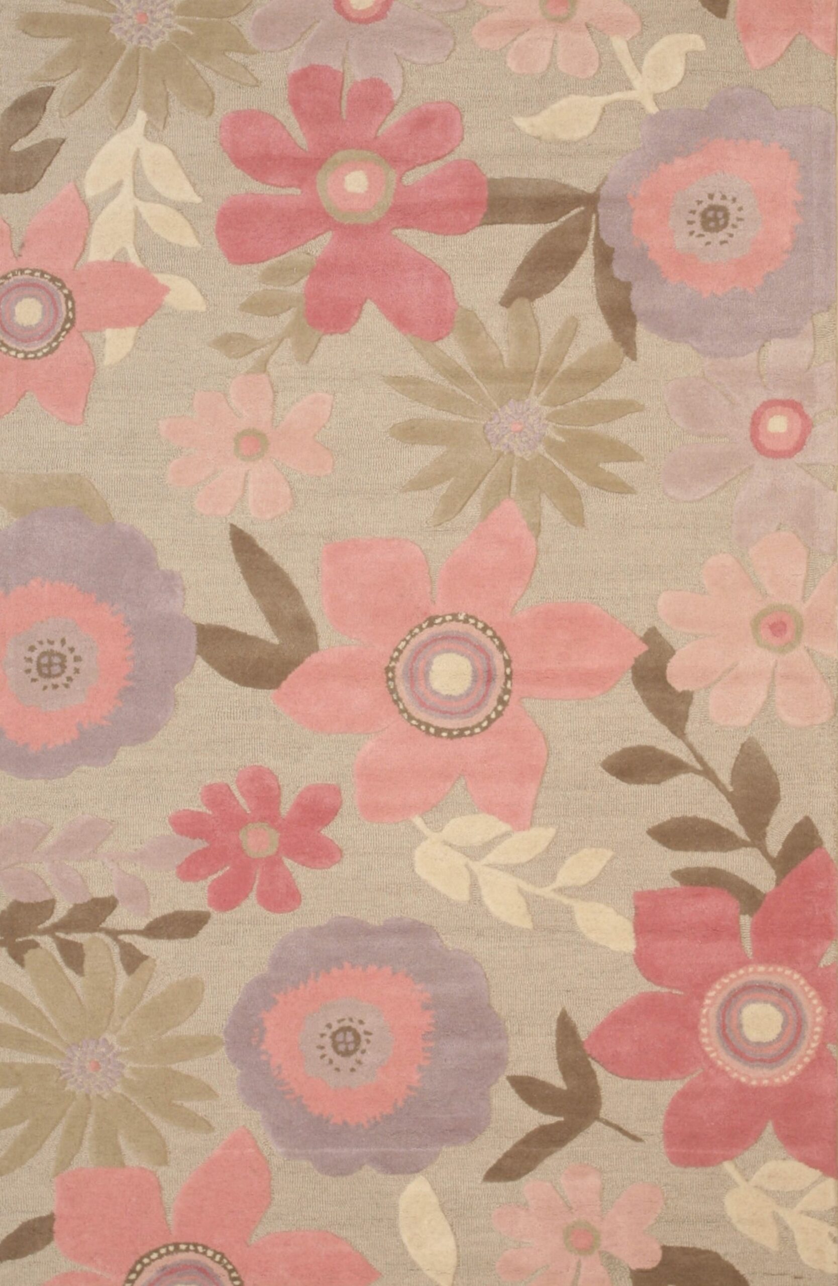 The palette is striking yet balanced. A soft, neutral field serves as the canvas, allowing the oversized blossoms to emerge in shades of rose, coral, and subtle lavender. Explore more options in our curated selection of gray color rugs to find the perfect neutral foundation for your space.