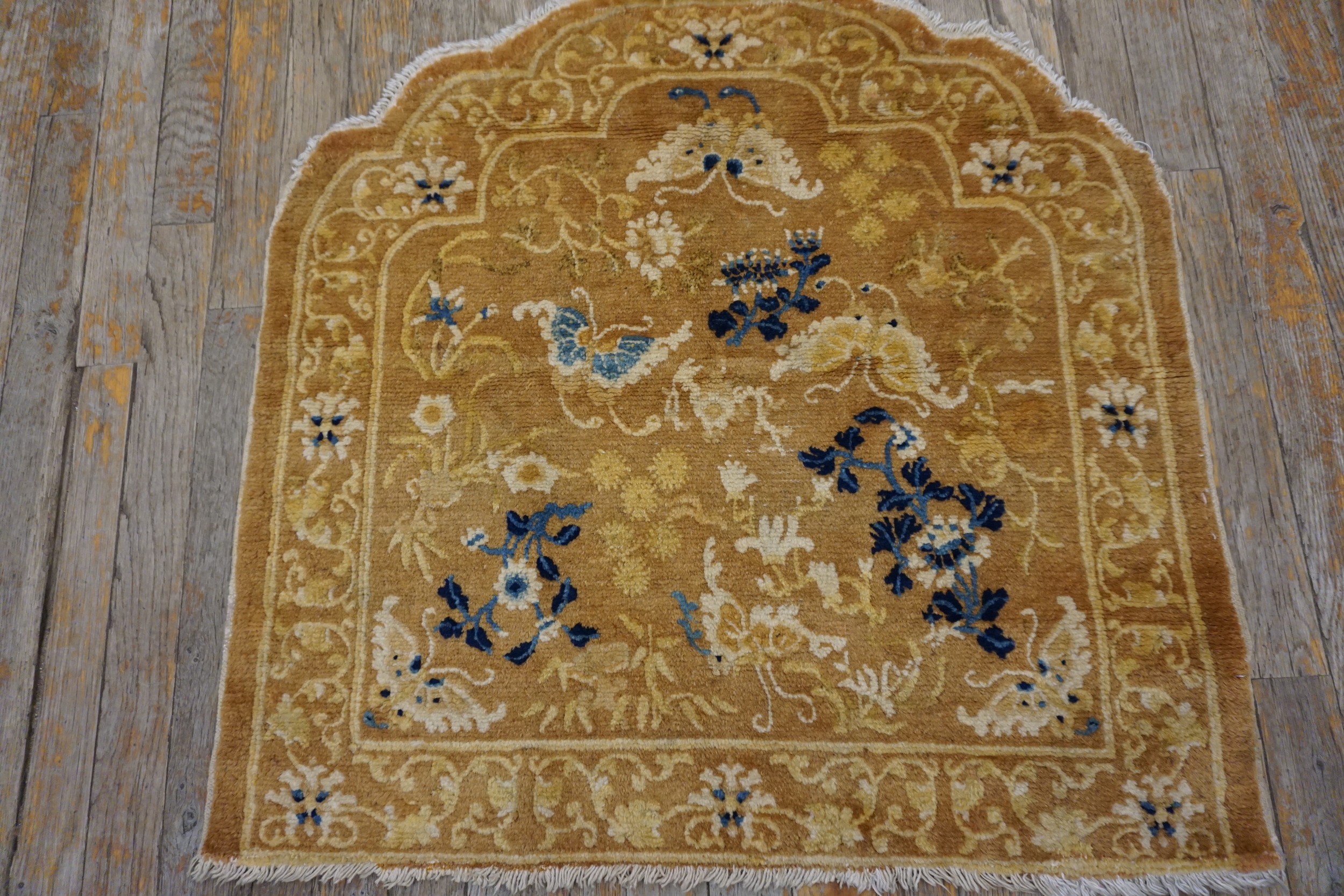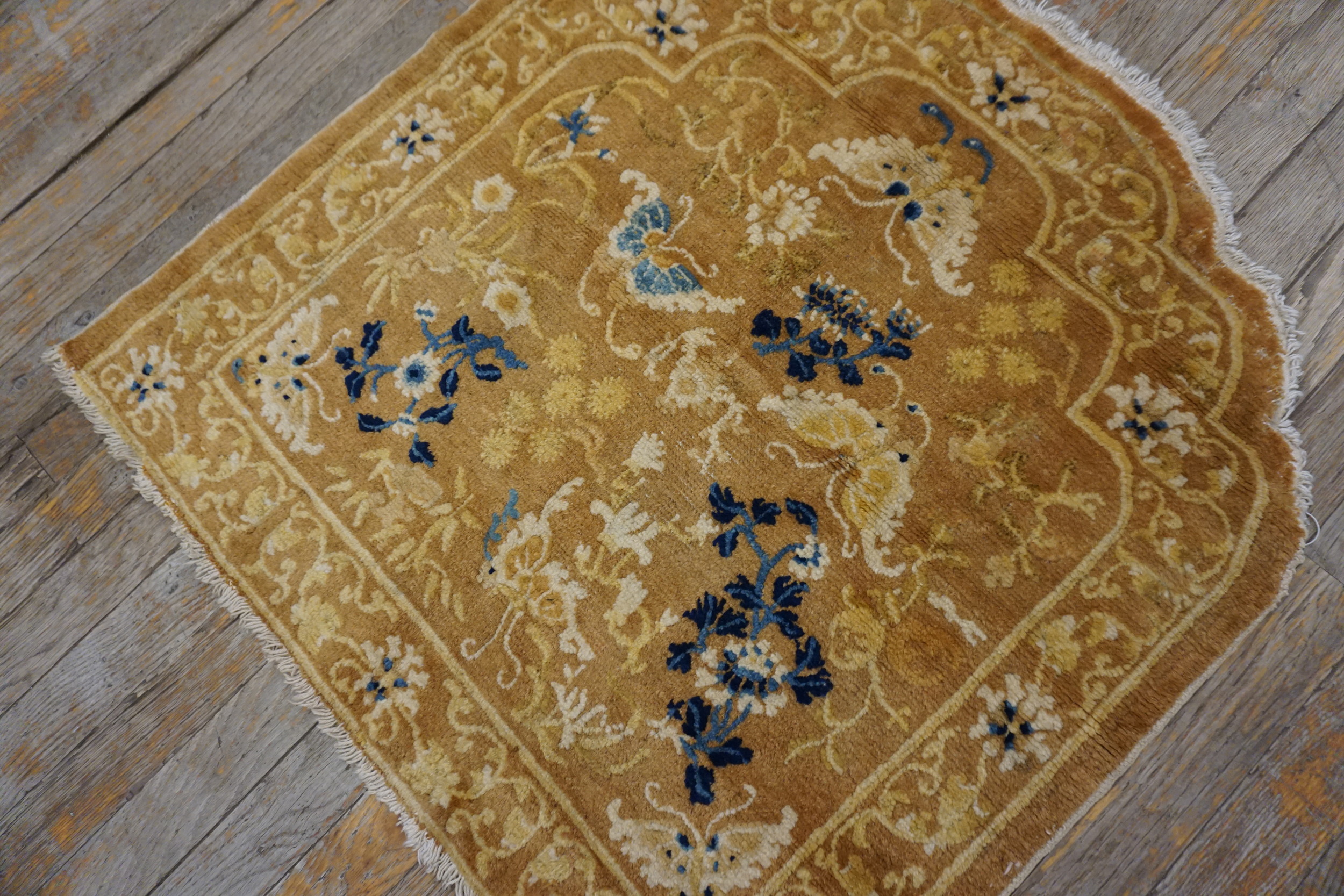Antique Chinese Allover Floral Wool Hand Knotted Pile 1800s Rug, Country of Origin: China, Circa Date: 1800s. This exceptional example of the Chinese weaving tradition showcases the sophisticated palette and intricate symbolism favored during the Qing Dynasty. Woven entirely from natural wool, the dense, plush pile retains a remarkable softness, a testament to the quality of 19th-century craftsmanship.