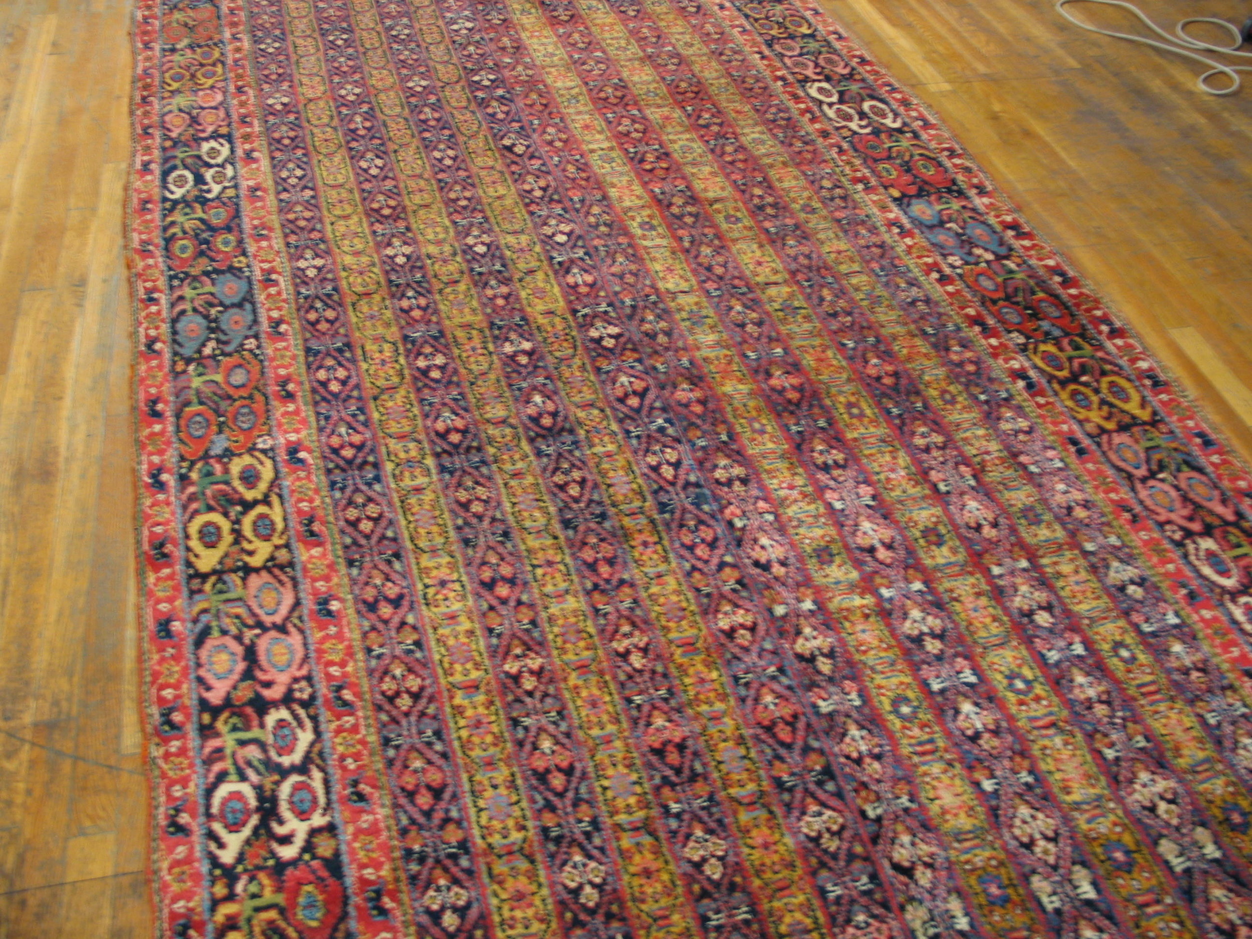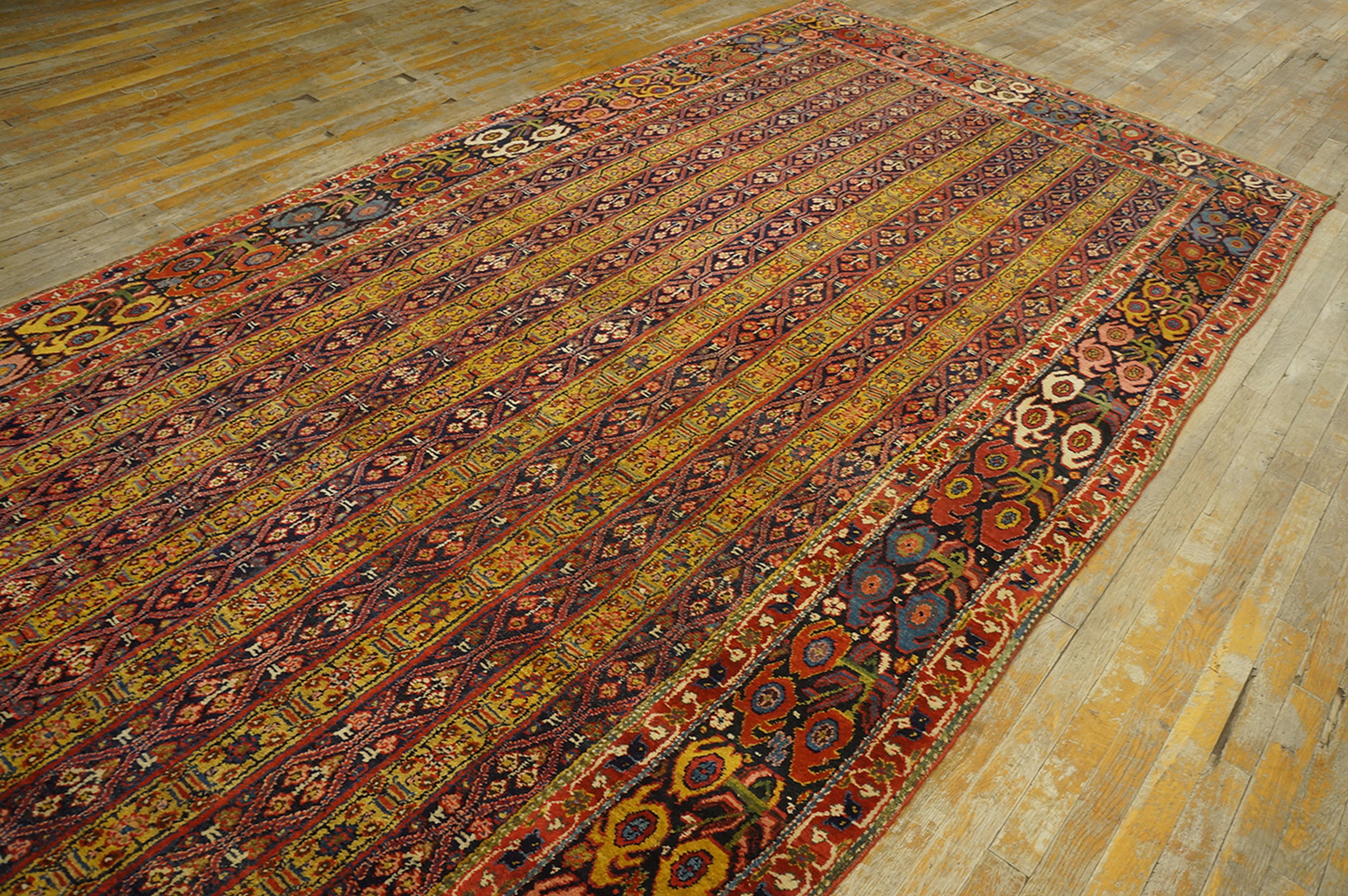 Antique Bijar Large Hallway Runner Wool Yellow Rug, Circa Date: 1850s. This exceptional example of 19th-century weaving hails from the Bijar region of Persia, renowned for its highly durable construction and dense knotting. As one of the most sought-after types of antique rugs, this piece showcases the rugged elegance characteristic of Kurdish craftsmanship.