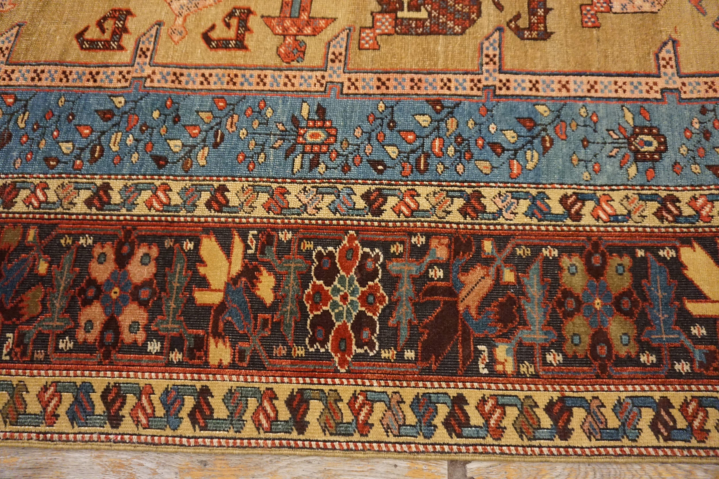 Antique Bakshaish Persian Geometric Medallion Hand Knotted Pile Rug, Country of Origin: Iran / Persia, Circa Date: 1870s. This exceptional example of 19th-century weaving showcases the distinctive, monumental scale and geometric abstraction characteristic of bakshaish rugs. Originating from the Heriz region, this piece represents a pinnacle of nomadic and village artistry from the late Qajar period of Iranian / Persian rugs.