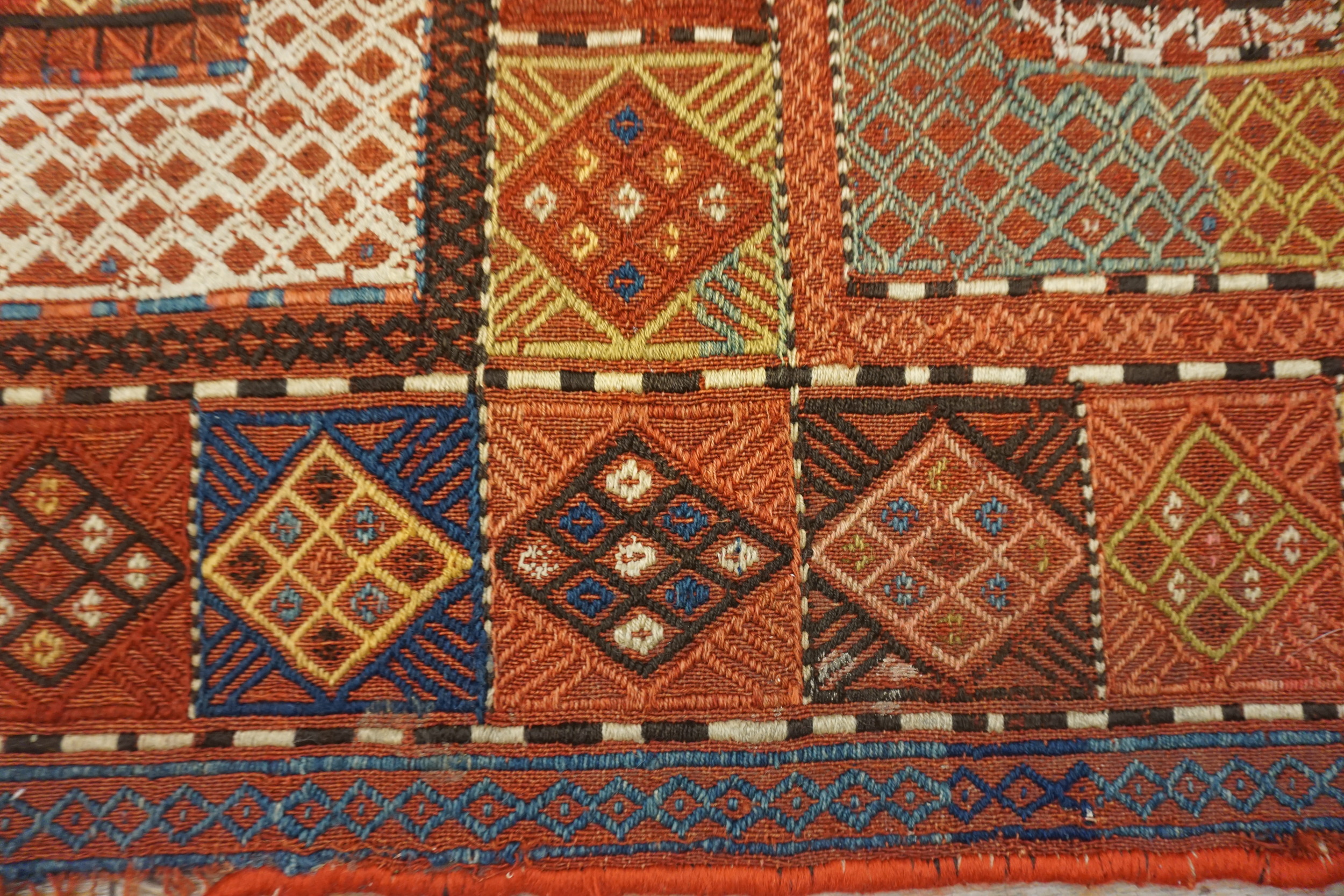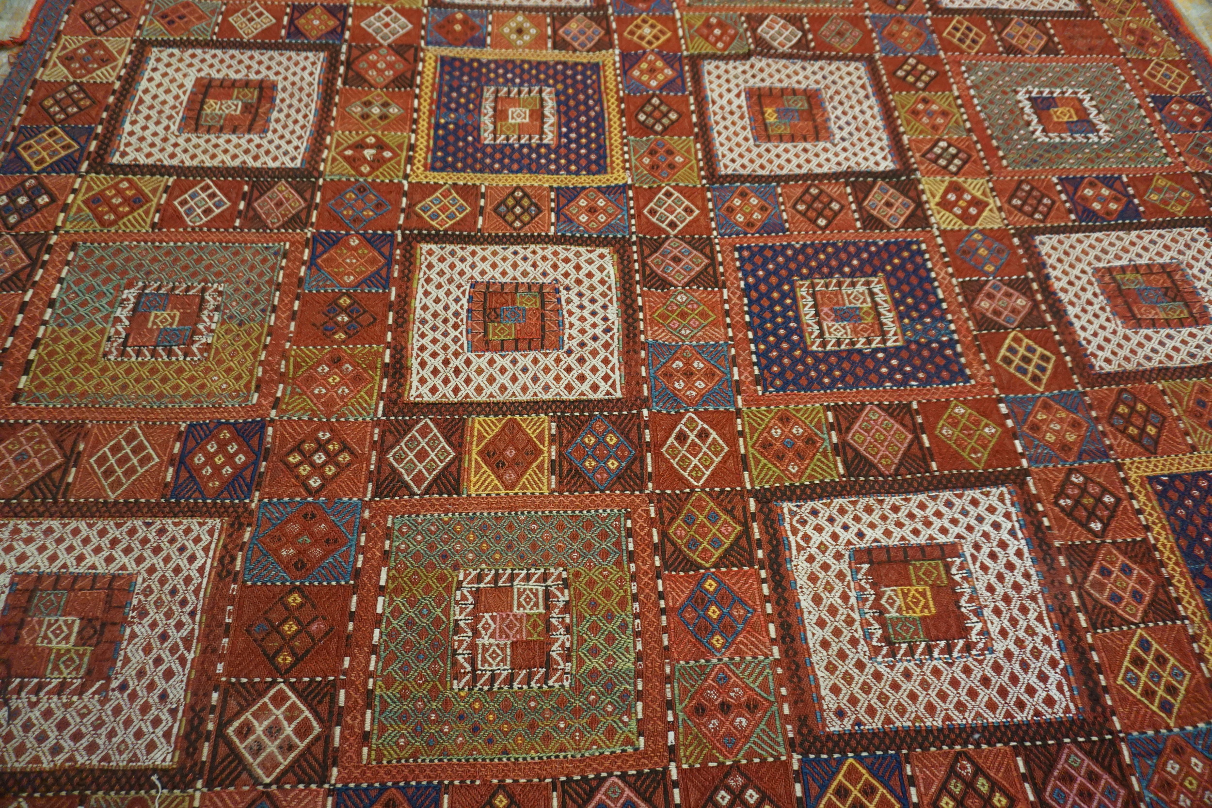Given its age and the demanding flat-weave technique, this piece remains in remarkably fine condition, preserving the integrity of its original colors and structure. Its substantial dimensions qualify it as a true room size rug, offering a powerful statement piece suitable for a sophisticated interior seeking authentic tribal artistry.