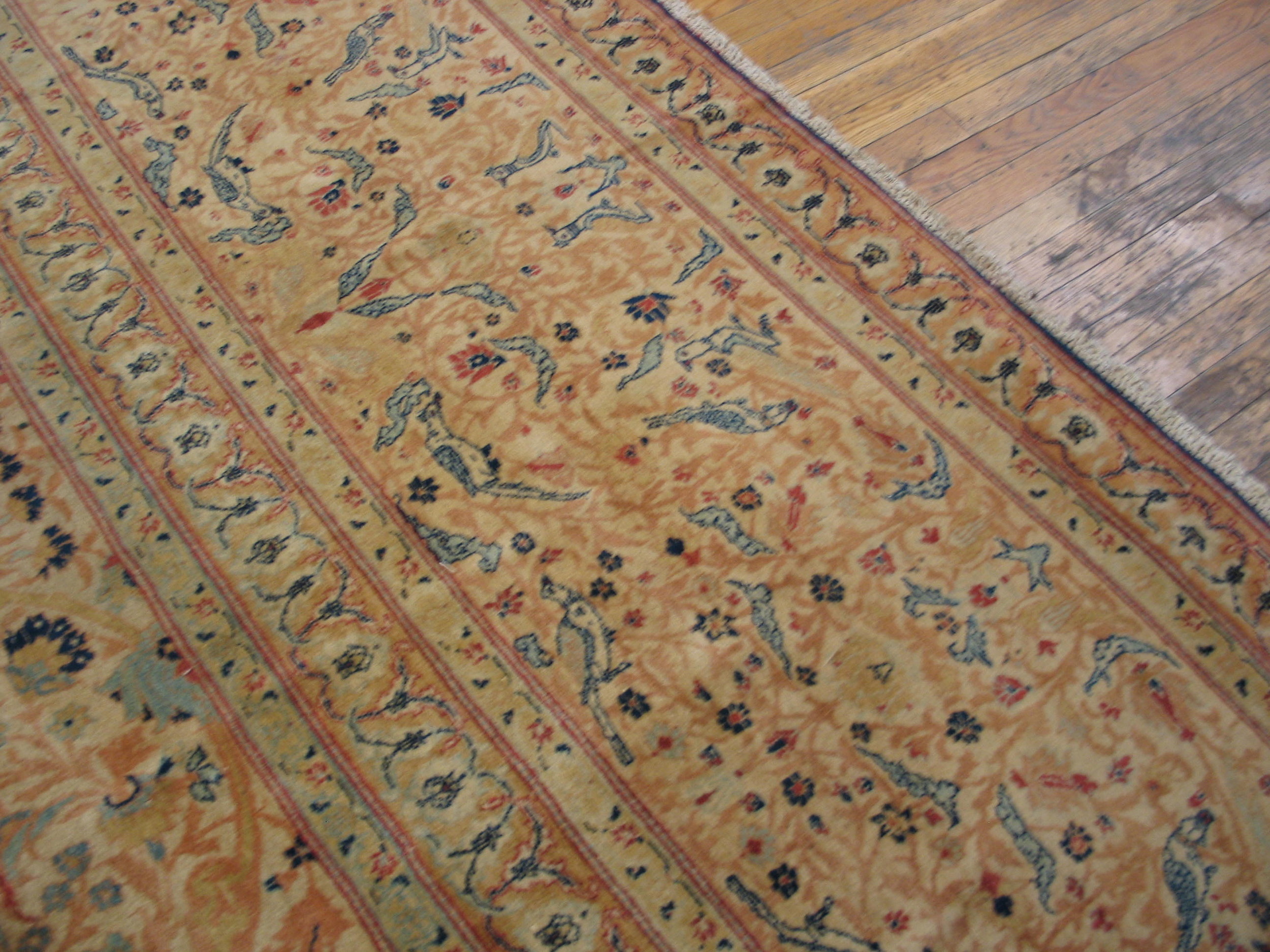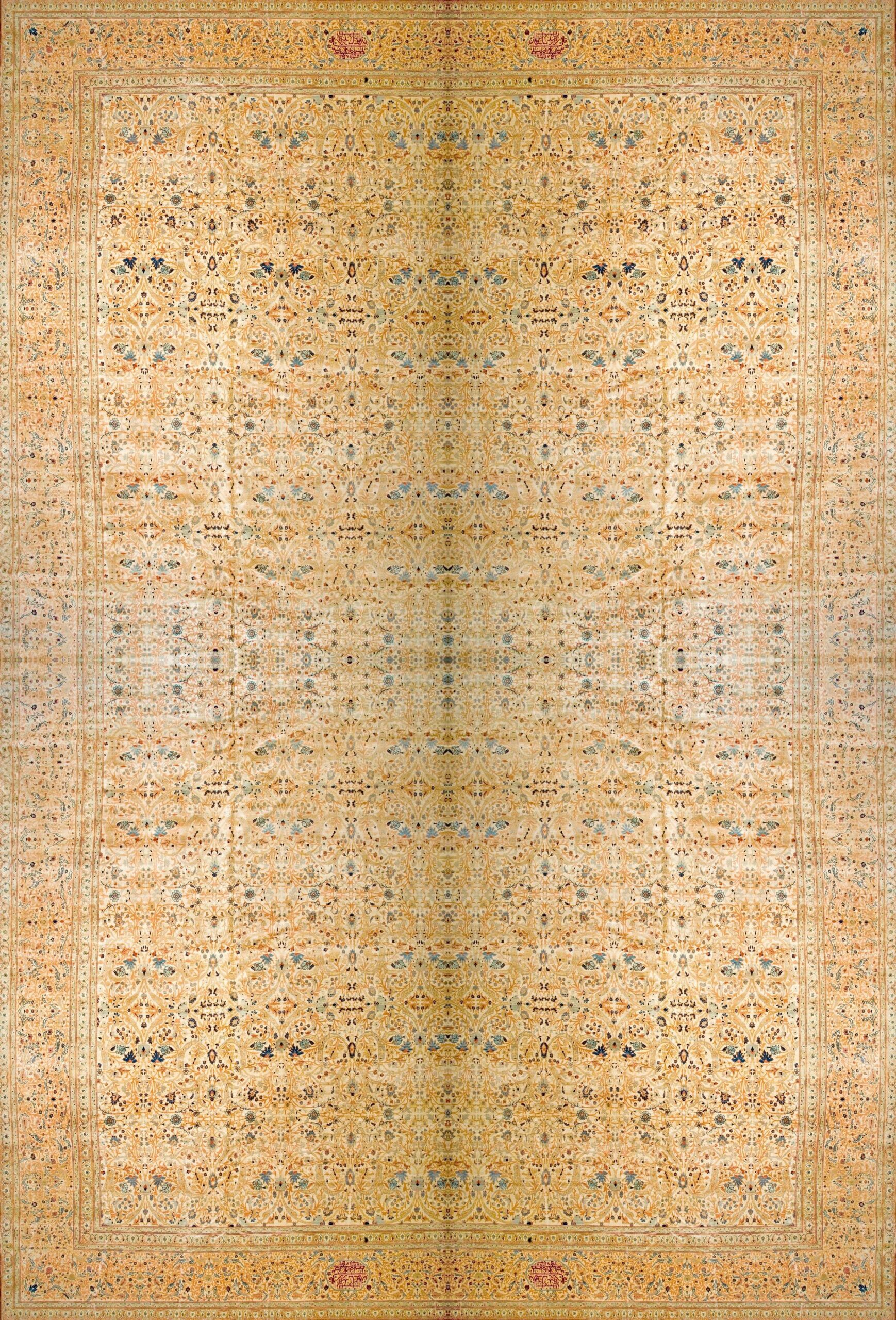 Antique Oversized Tabriz Persian Knotted Rug, Country of Origin: Iran / Persia, Circa Date: 1890s. This magnificent example of Tabriz rugs showcases the unparalleled skill of late 19th-century Persian weavers, renowned for their exceptionally fine knotting and sophisticated palette.
