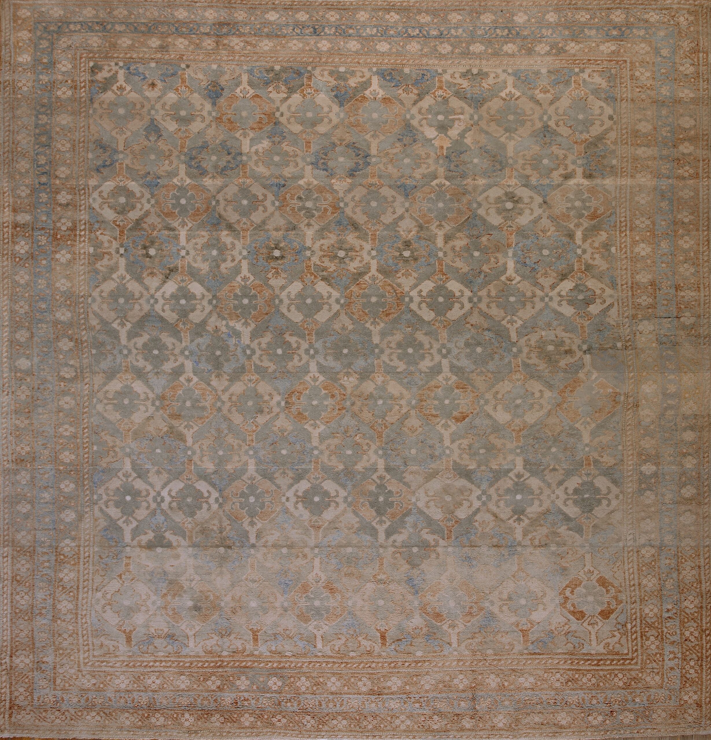 Ideal for living rooms, bedrooms, studies, or salon-style spaces, rare square shape area rugs can serve as both a focal point and a unifying foundation. Its unique shape and restrained palette make it adaptable to a range of interiors — from classic and transitional to contemporary — where its historic presence and geometric clarity can be fully appreciated.