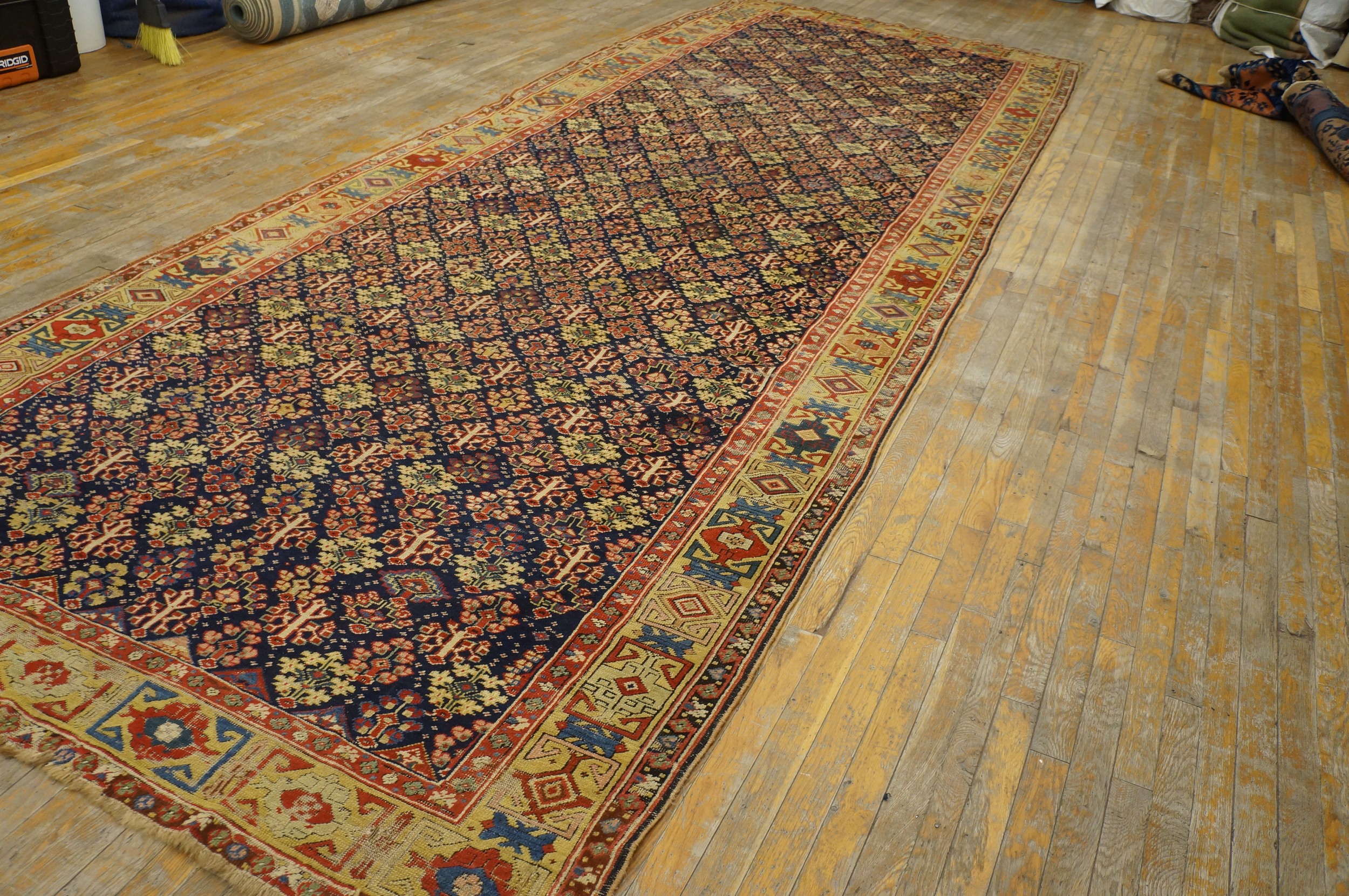 Antique Large N.W. Persian Persian Geometric Knotted Rug, Circa Date: 1850s. This exceptional piece represents the finest traditions of 19th-century Northwest Persian weaving. Its age and remarkable condition classify it among truly rare antique rugs available today. The dense, all-over geometric pattern speaks to a sophisticated village or nomadic aesthetic, prioritizing intricate repetition over centralized medallions.