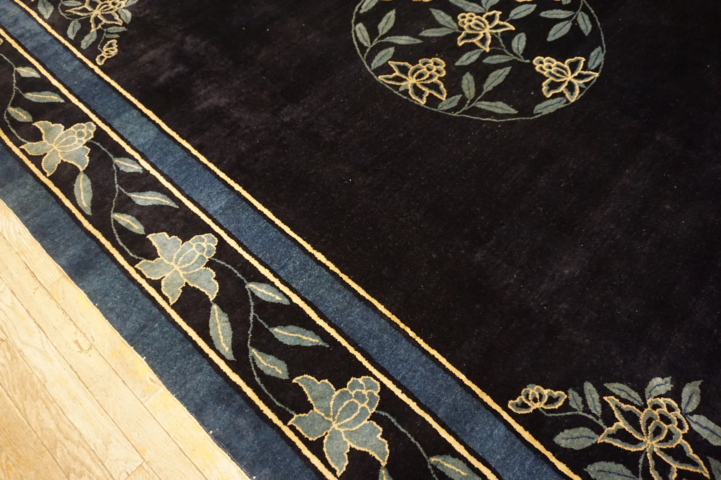 Rectangle Antique 1930s Room Size Wool Chinese Blue Knotted – Peking Rug, Circa Date: 1930s. This exceptional piece exemplifies the restrained elegance of early 20th-century Chinese weaving. Its generous dimensions classify it as a true room size format, ideal for anchoring a sophisticated living space or formal dining area.