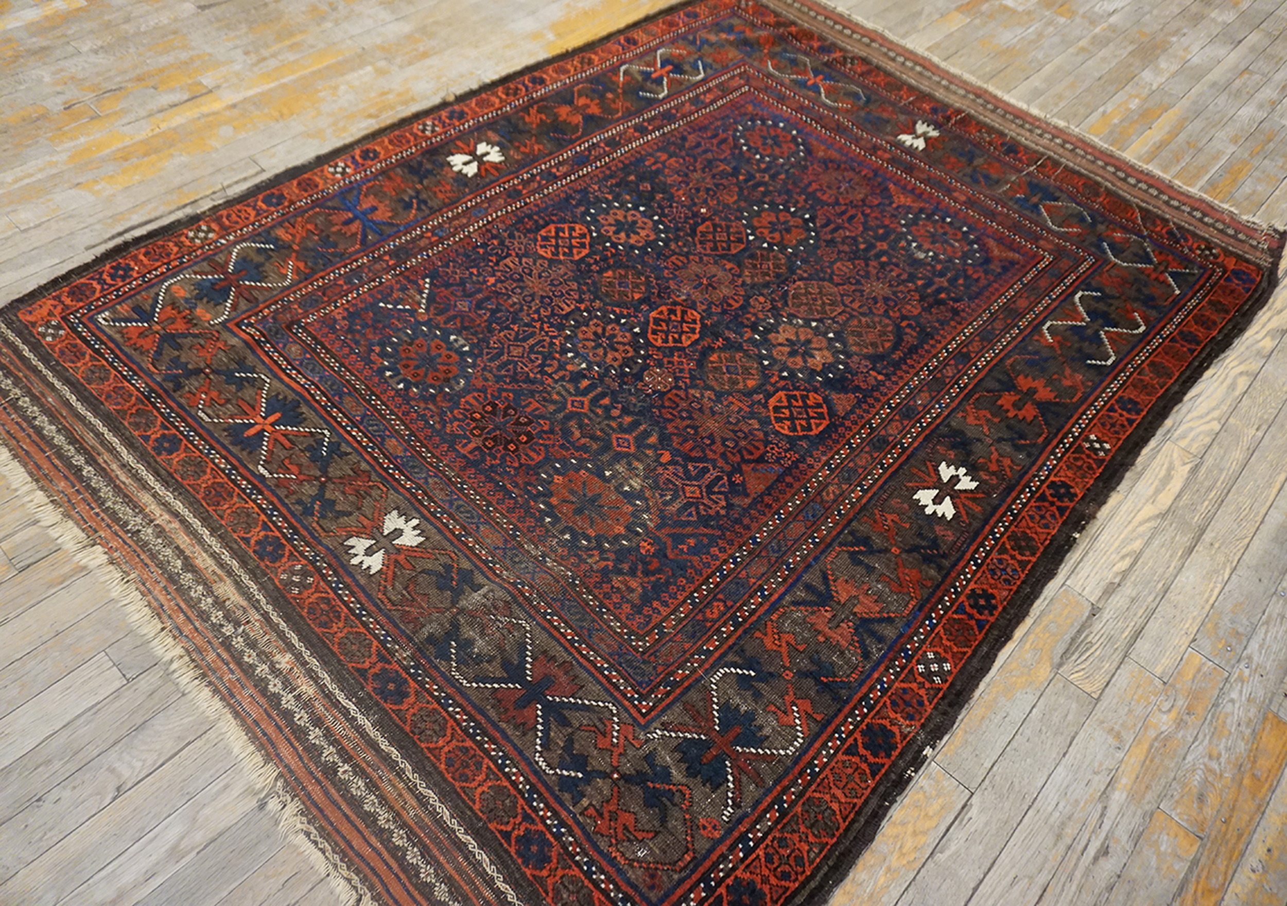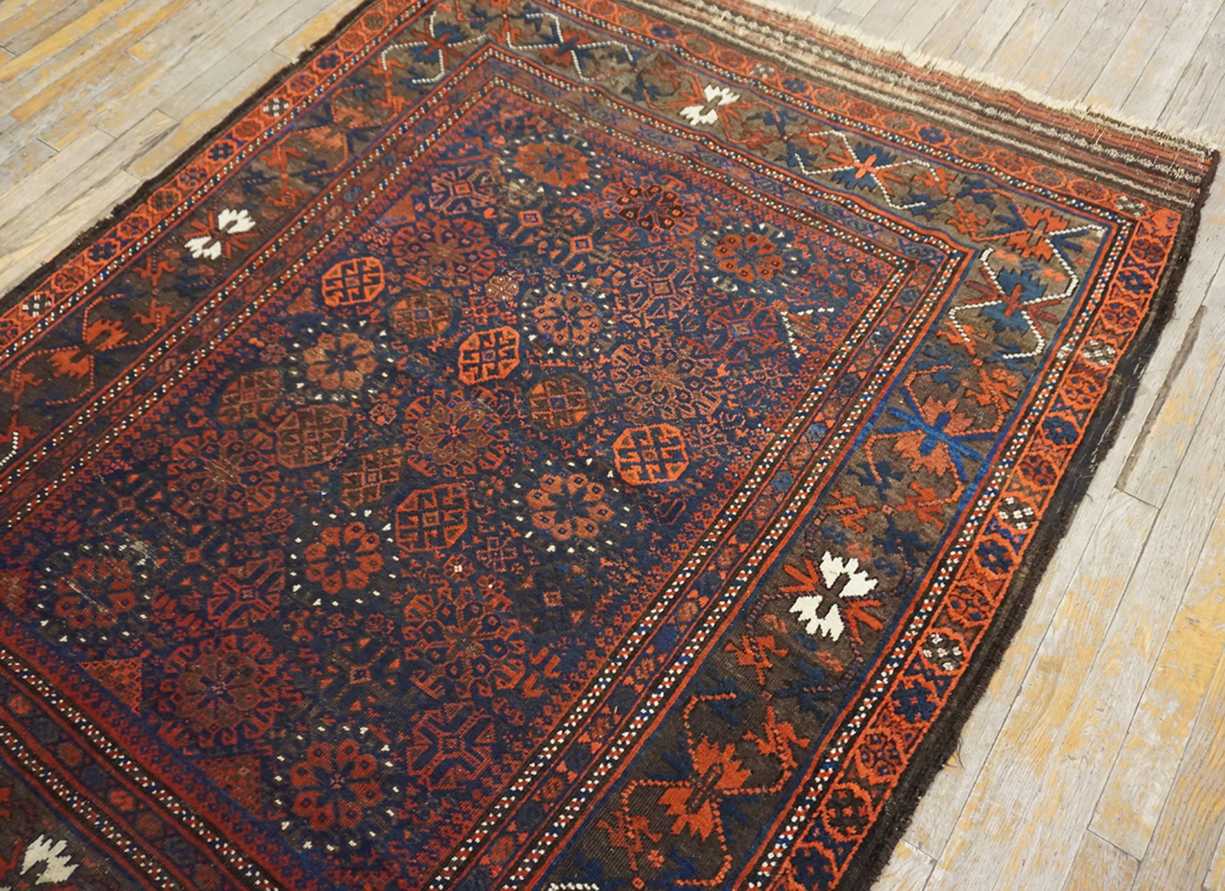 Rectangle Hand Knotted Pile Allover Geometric 1890s Wool Blue Antique Rug, Circa Date: 1890s. This exceptional piece represents the finest traditions of tribal weaving, characterized by densely packed motifs and a rich, saturated palette. As a genuine antique rug, its history is woven into every knot, offering a tangible connection to the artistry of the late 19th century.