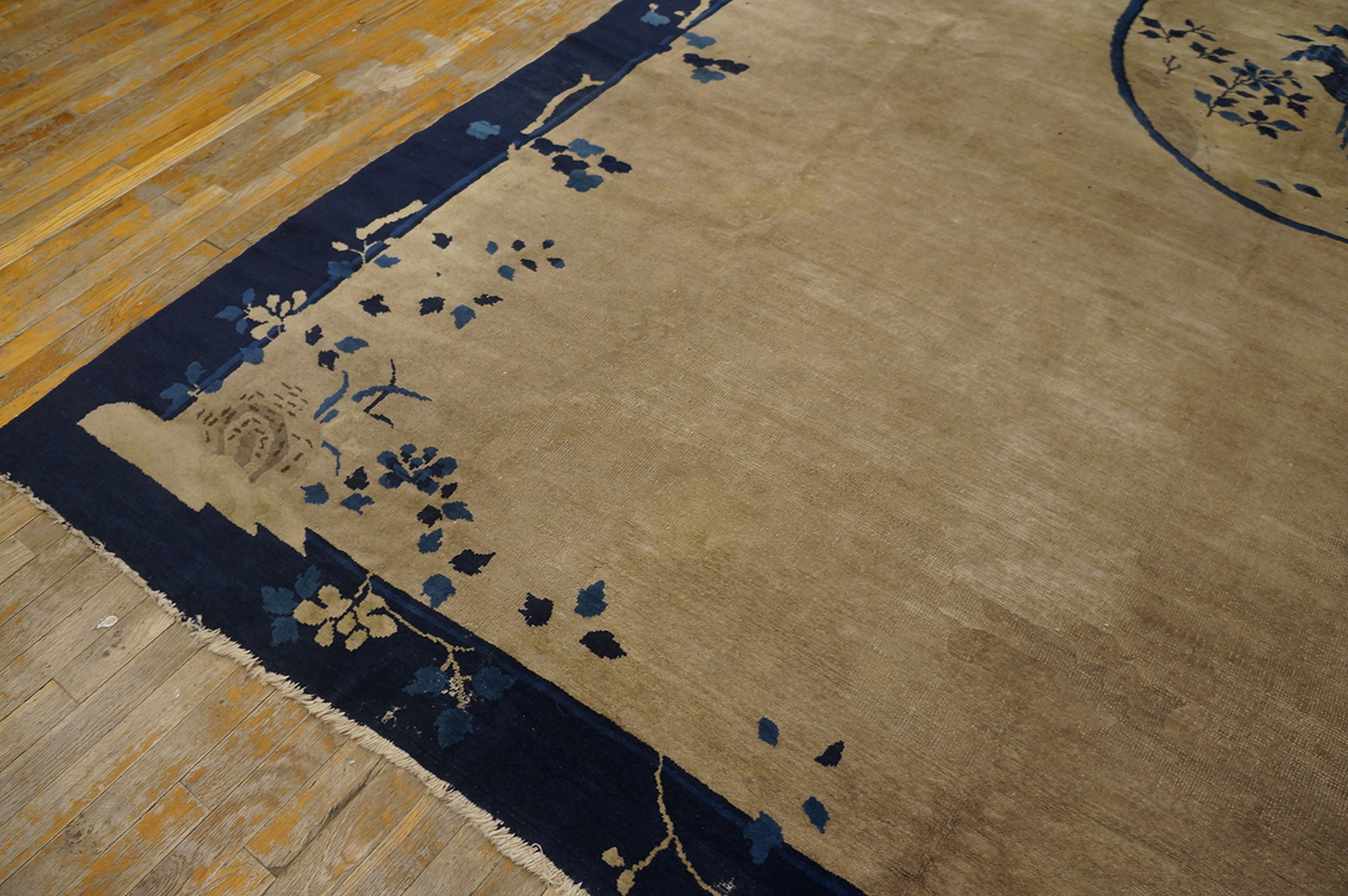 Rectangle Knotted Antique Chinese Ivory 1920s Room Size Wool – Peking Rug, Circa Date: 1920s. This exceptional example of a Peking rug represents the height of early 20th-century Chinese weaving, blending traditional craftsmanship with emerging Art Deco sensibilities. Its substantial dimensions classify it as a true room size piece, ideal for anchoring a sophisticated interior. We specialize in sourcing the finest antique rugs from this highly sought-after period.