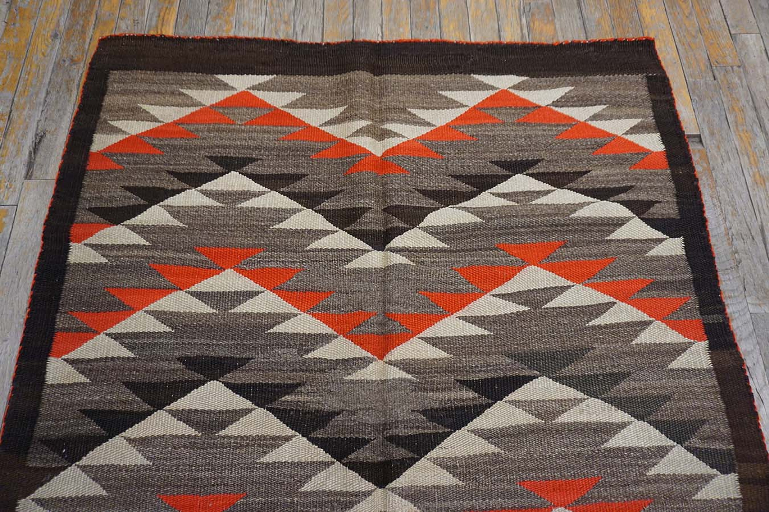 Woven in a highly practical dimension, this piece is classified as a small scatter size rug. Such dimensions were ideal for use in transitional spaces, entryways, or as a vibrant layering element, reflecting the evolving domestic needs of the American Southwest during this era when traditional weaving was adapting to commercial demand.
