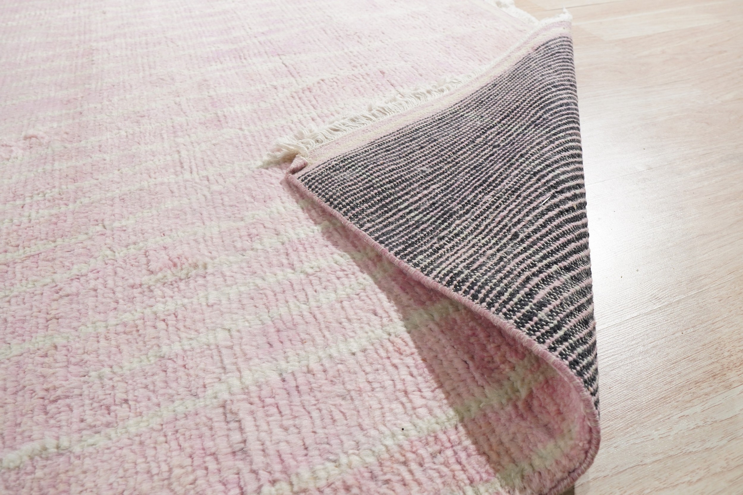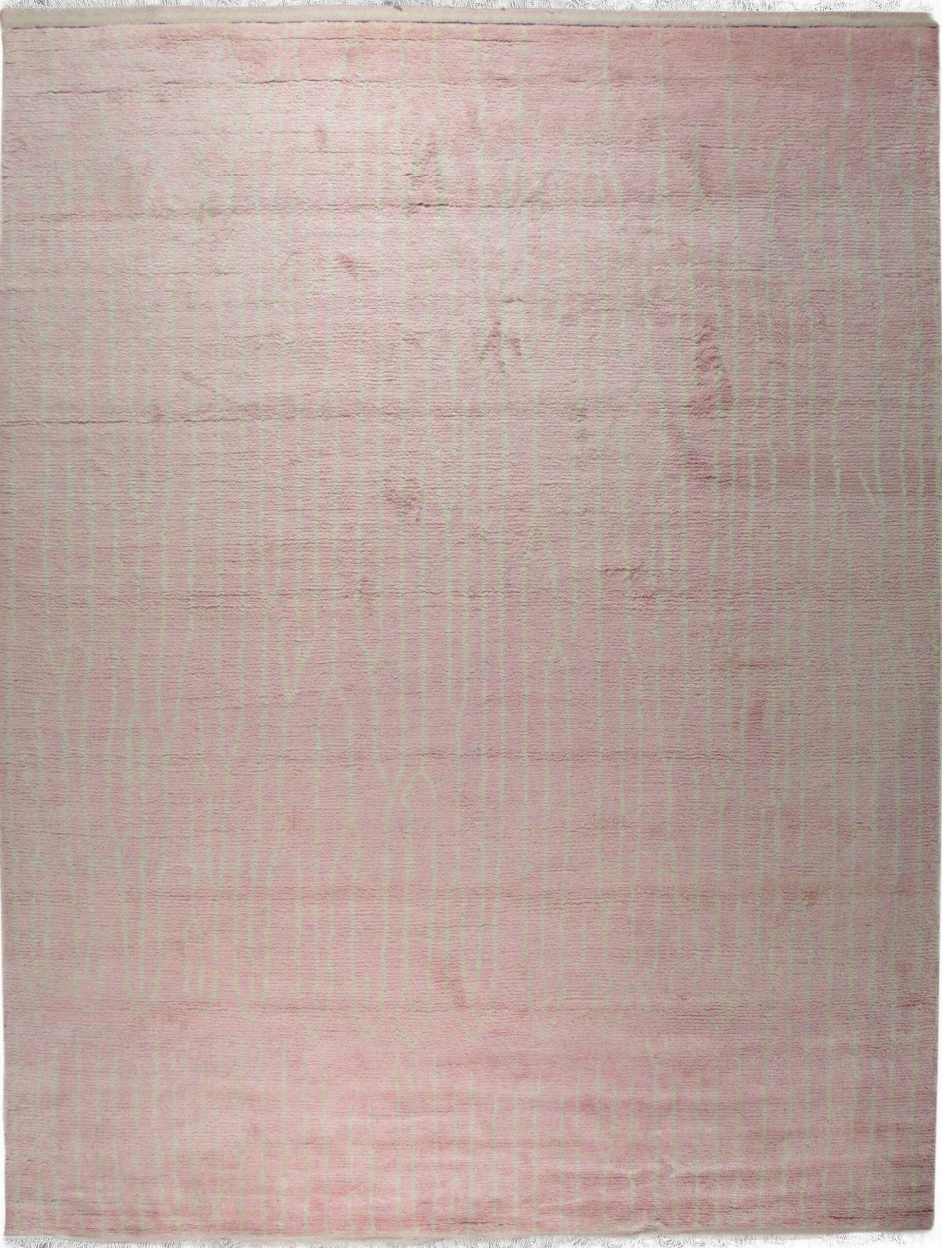 Rhea Moroccan Pink Hand Knotted Wool Rug, Country of Origin: India. This luxurious piece translates the iconic simplicity of North African design into a refined, contemporary format. The high-quality wool construction, typical of fine Indian rugs, ensures a plush, deep pile underfoot, maximizing comfort and texture in any modern setting.