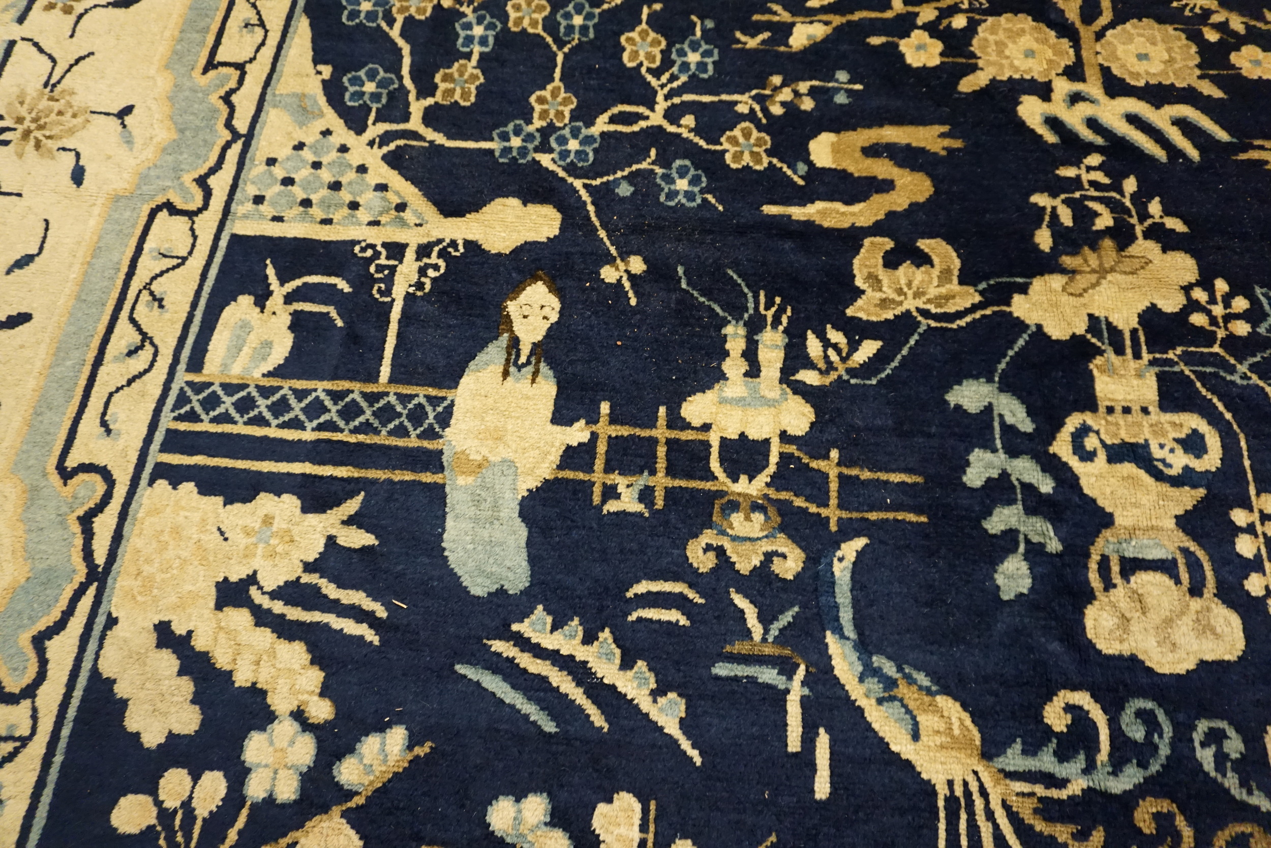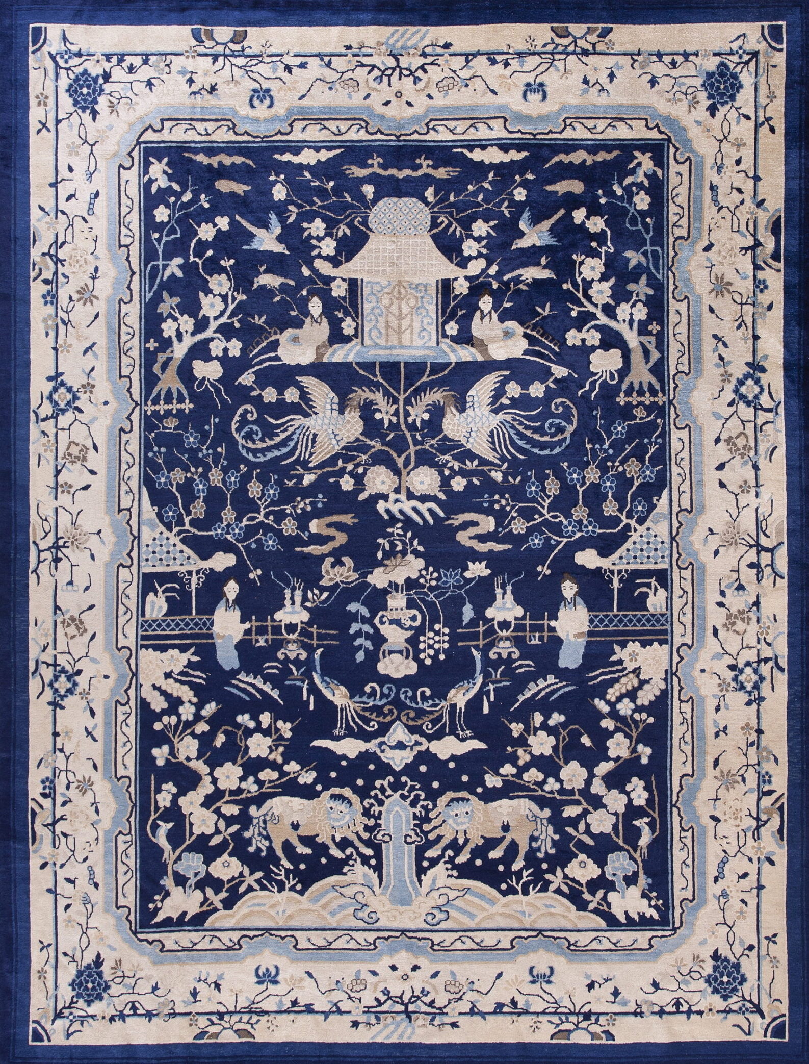 Room Size Chinese Antique Knotted – Peking Rectangle Blue 1920s Wool Rug