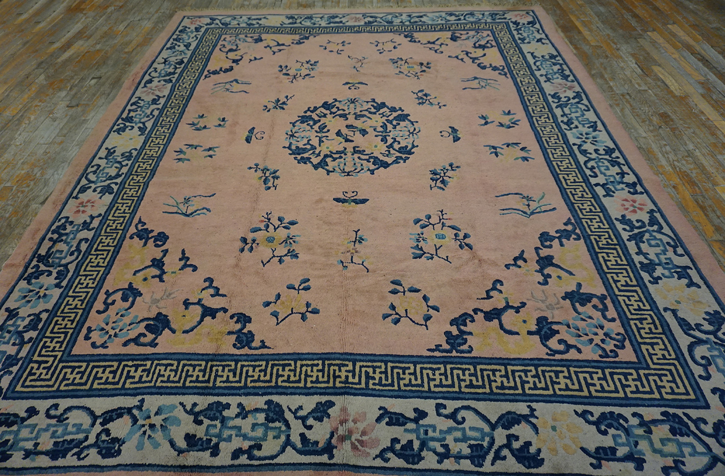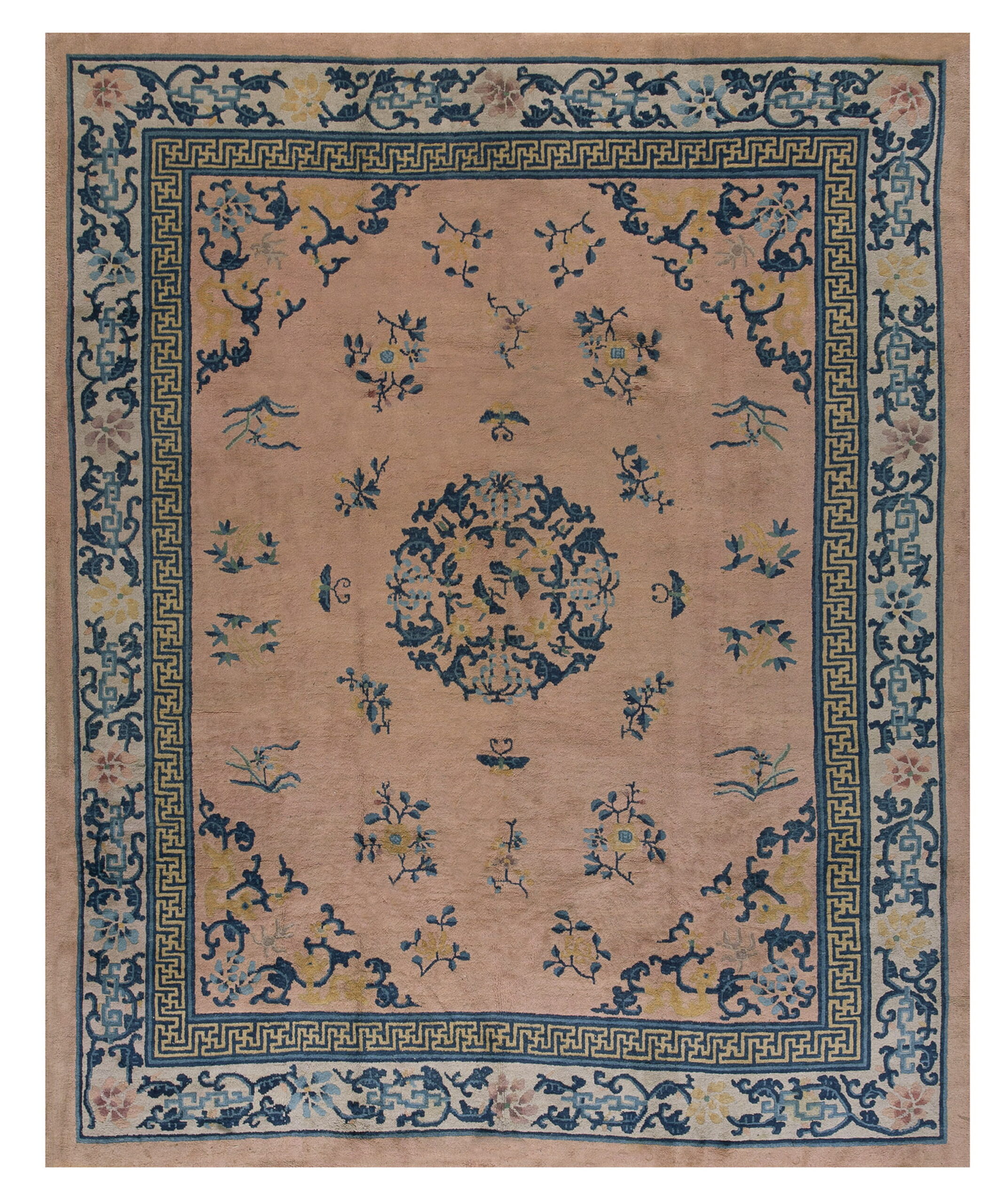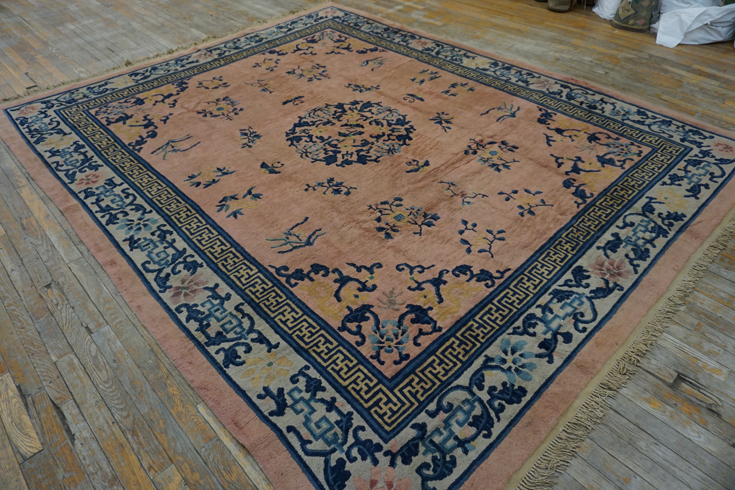 Woven during the Art Deco period, this rug successfully blends traditional Chinese iconography with the simplified elegance of modern design. It represents a superb acquisition for collectors seeking refined antique rugs from the golden age of Peking production, offering both historical value and timeless decorative appeal.