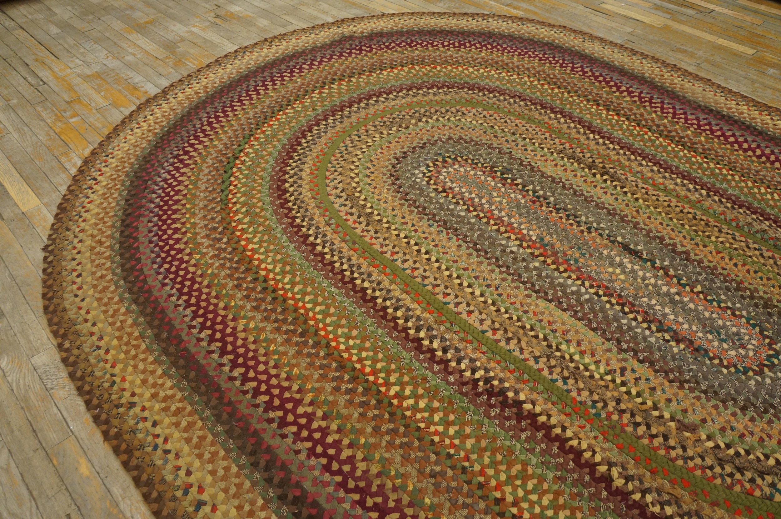 Its substantial dimensions qualify it as one of the larger room size rugs of its type, capable of anchoring a main living area or dining space. The inherent durability of the tightly woven braids ensures this piece remains practical for high-traffic areas, reflecting the rugged utility valued in textiles produced during the 1940s era.
