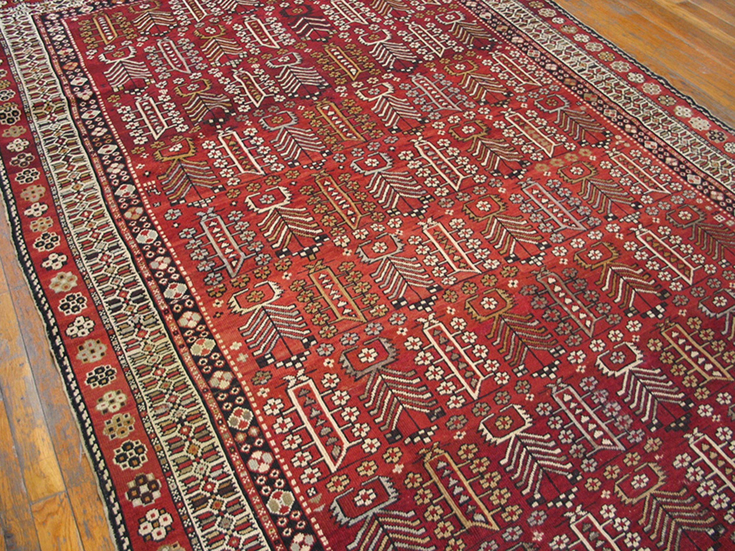 Antique Caucasian – Shirvan Caucasian 1900s Rug, Country of Origin: Caucasus, Circa Date: 1900s. This exceptional piece exemplifies the enduring geometric artistry of the region. Woven in the early 20th century, this textile showcases the rich madder red field typical of high-quality Caucasian rugs.