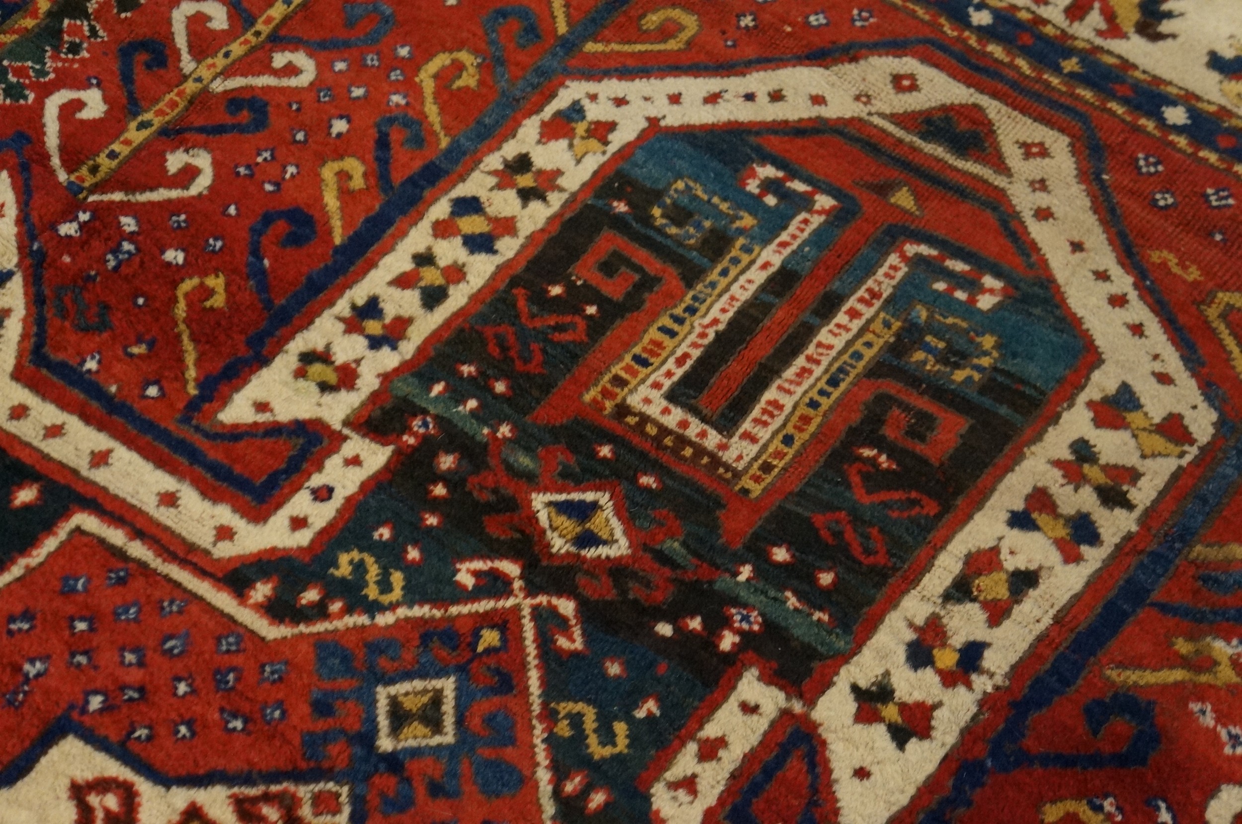 Antique Caucasian Caucasian Allover Knotted Rug, Country of Origin: Caucasus, Circa Date: 1860s. This exceptional example of 19th-century weaving hails from The Caucasus region. The piece displays the robust construction and bold, highly stylized geometric motifs characteristic of this provenance, representing a pure expression of nomadic artistry.