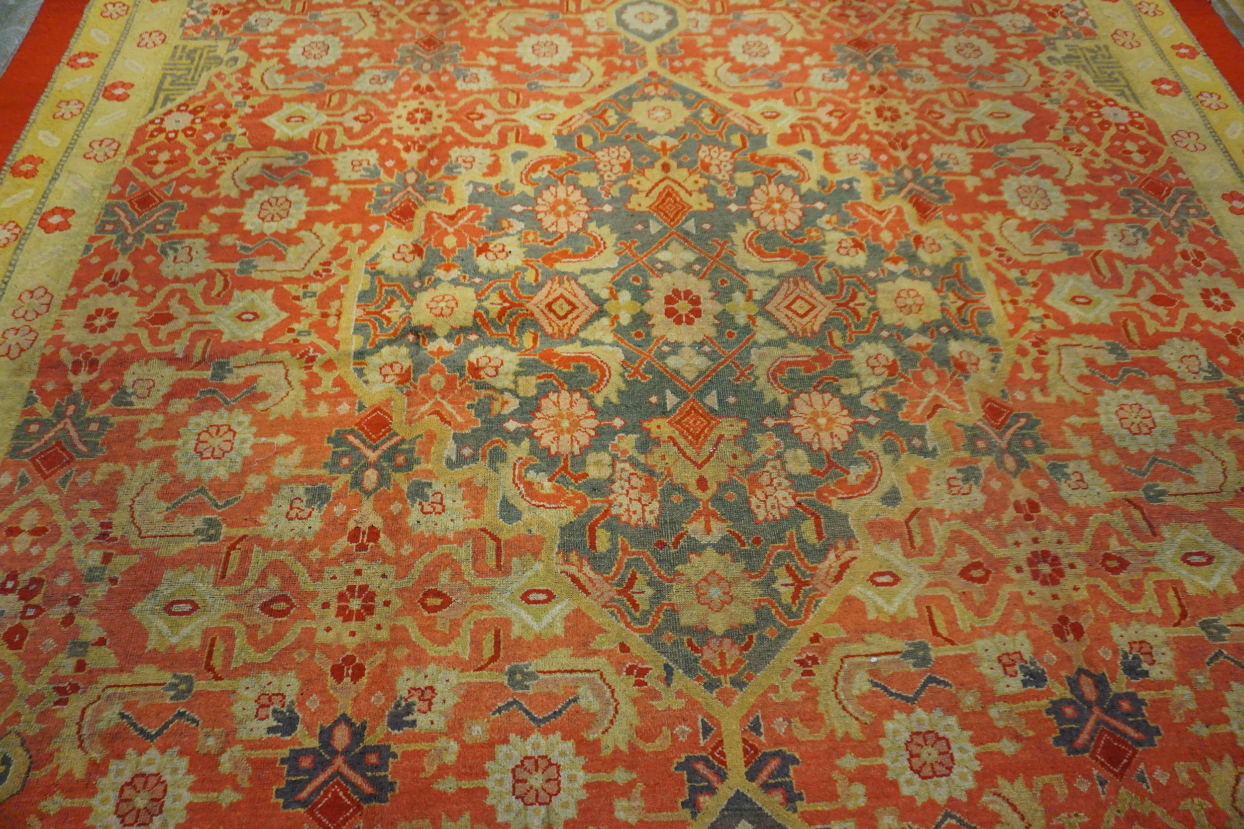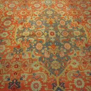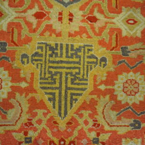 Set against a rustic coral ground, the design is enlivened with contrasting accent hues that enhance the depth of each motif and bring forward a warm, inviting palette. Complementary borders frame the field with cohesive contrast, reinforcing the overall pattern while providing a sense of visual balance. The hand-knotted wool pile — a hallmark of traditional craftsmanship — offers a resilient surface with a pleasing texture and enduring performance.