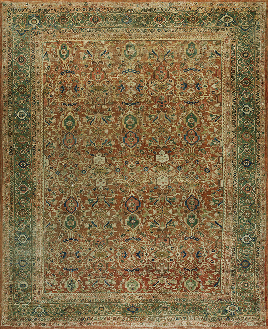 Woven with high-quality, durable wool, this piece exhibits the slightly coarser weave characteristic of Sultanabad production, lending it a textural richness. Although featuring stylized floral elements, the strict organization of the repeating motifs gives the rug a strong sense of order, placing it stylistically close to the tradition of geometric rugs.