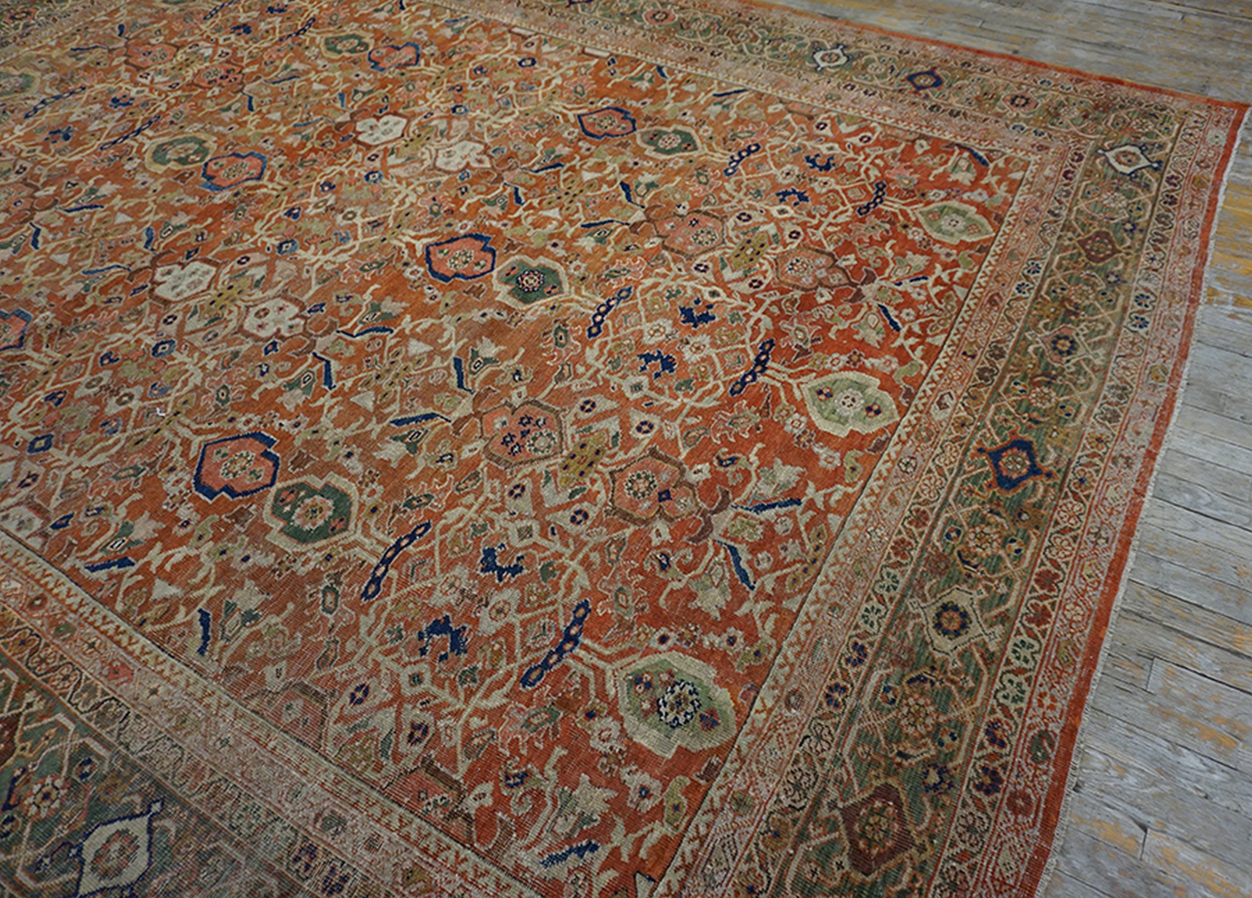 Antique Sultanabad Wool Rug, Country of Origin: Persia, Circa Date: 1900s. This exceptional example of a Sultanabad rug features the characteristic rust-red field and robust structure for which the region is renowned. The overall design is densely packed with stylized palmettes and vinery, offering a sophisticated interpretation of classical motifs.