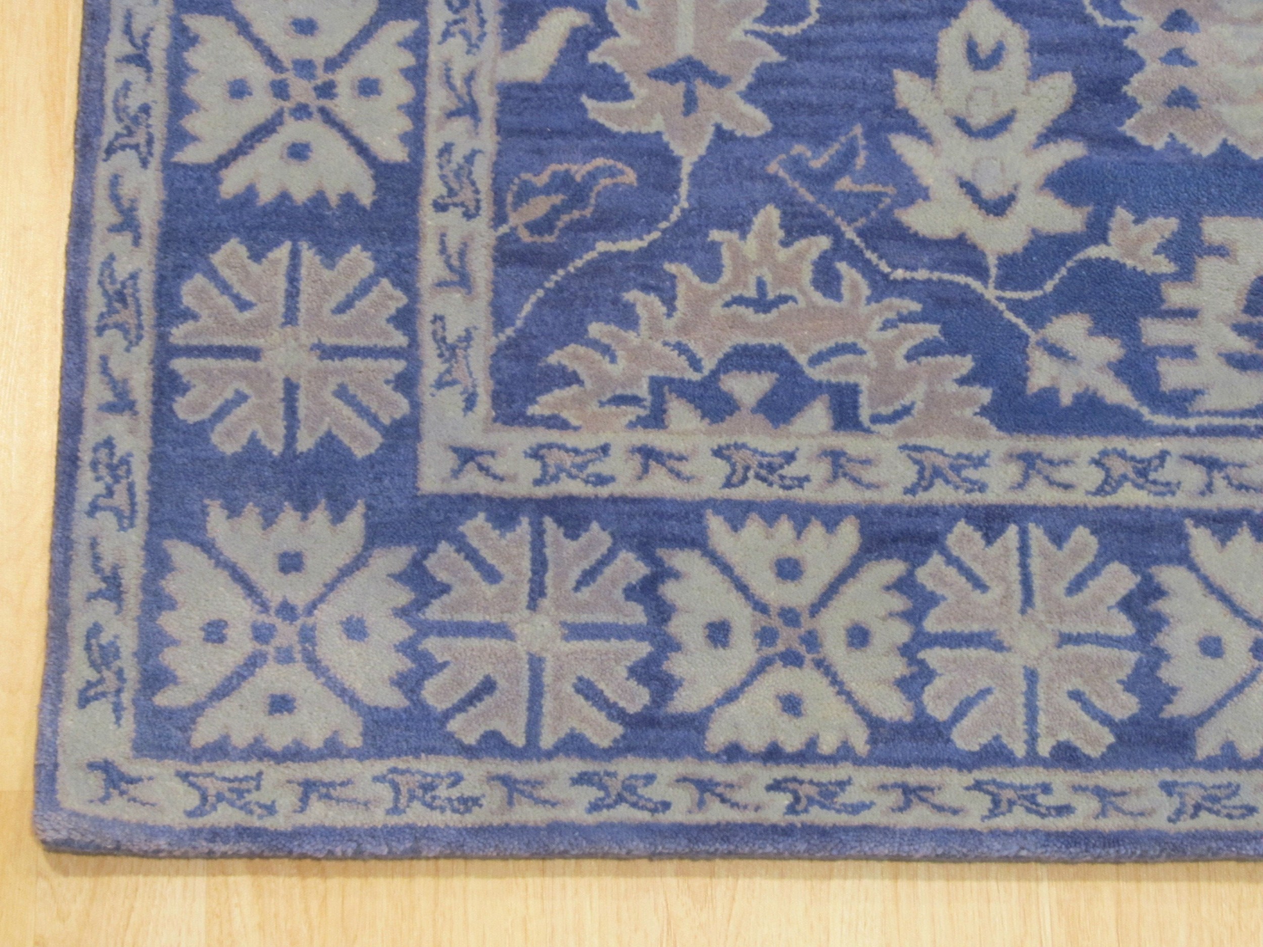 Rustic Oriental Blue Hand Tufted Wool Rug, Country of Origin: India. This newly crafted piece offers a compelling interpretation of traditional Oriental design, utilizing the soft texture of wool in a durable, hand-tufted construction. It joins our curated selection of new area rugs that blend heritage patterns with modern accessibility.