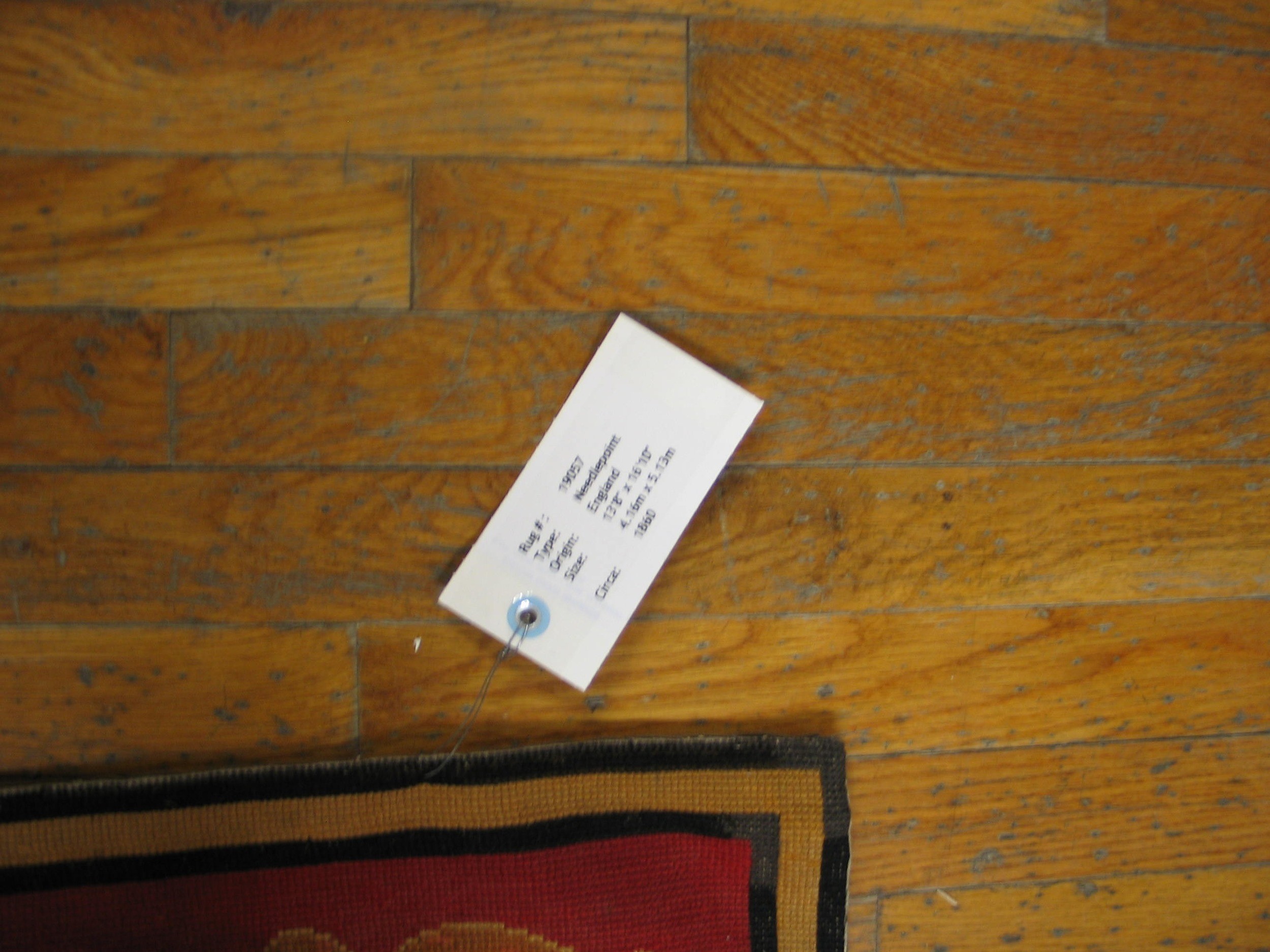 The “rustic” character of this piece is enhanced by its tonal depth and the subtle variegation of the red wool, which creates a textured, “lived-in” patina that is highly coveted by collectors. Historically, these needlework pieces were often commissioned as a more accessible alternative to the monumental palace carpets, yet they retained a high degree of luxury due to the immense labor required to stitch every square inch by hand. The geometric borders, featuring simplified foliate and linear guards, serve to anchor the repeating fleurs-de-lis, creating a harmonious balance between royal symbolism and rustic utility. To possess such a carpet is to hold a fragment of the French decorative arts—a bridge between the formal halls of Versailles and the enduring, soulful craftsmanship of the French countryside.