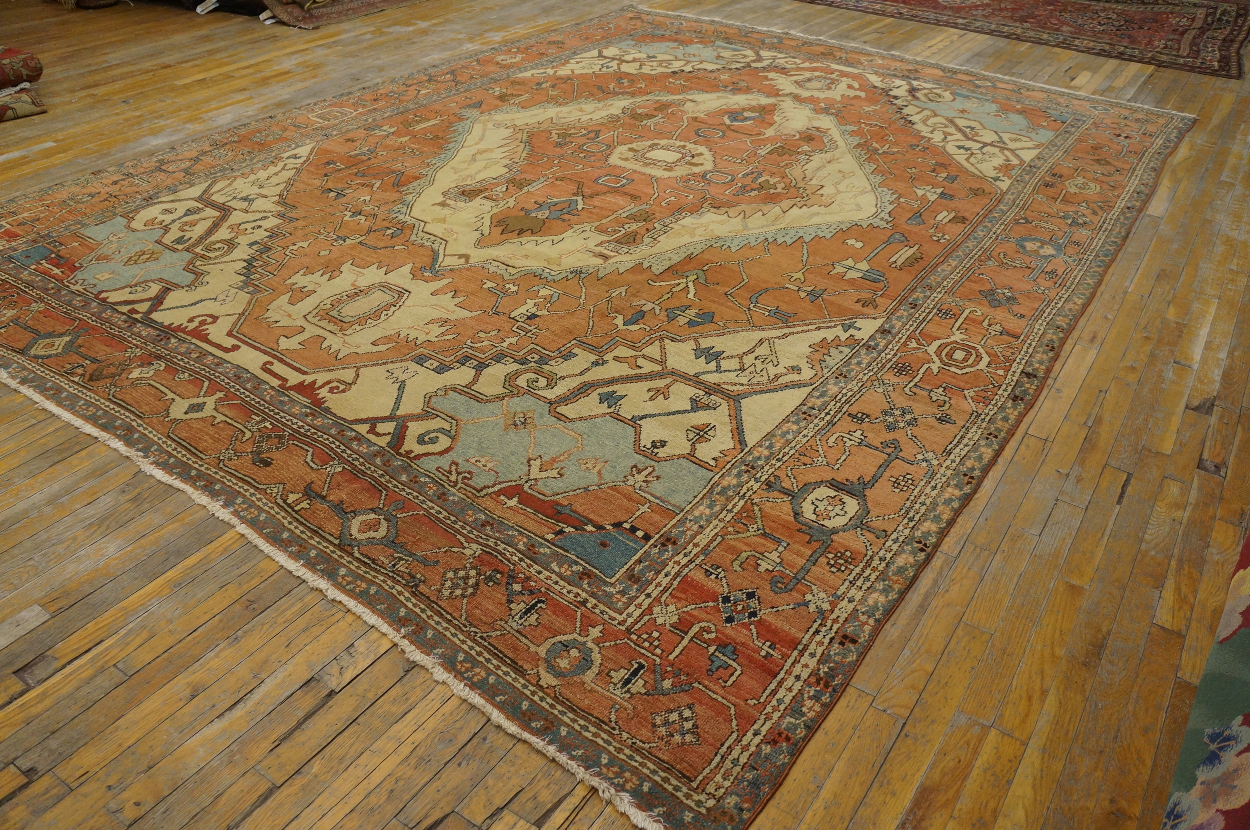 Antique Serapi Persian Coral 1890s Rug, Circa Date: 1890s. This exceptional Serapi represents the pinnacle of late 19th-century weaving from Northwest Persia. Serapi rugs are highly sought after among collectors of antique rugs for their superb wool quality and sophisticated adaptation of tribal designs into a more formal, large-scale aesthetic.