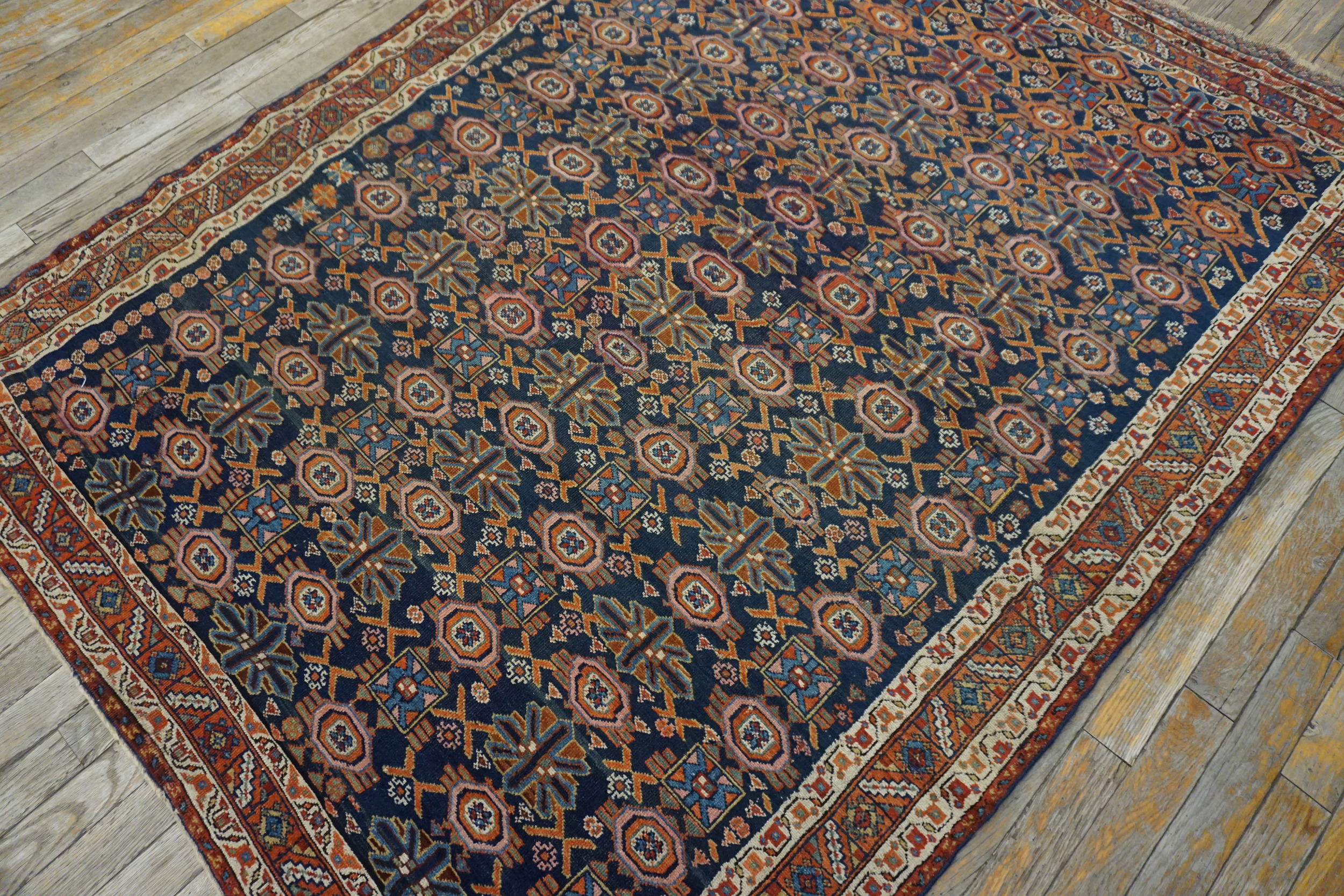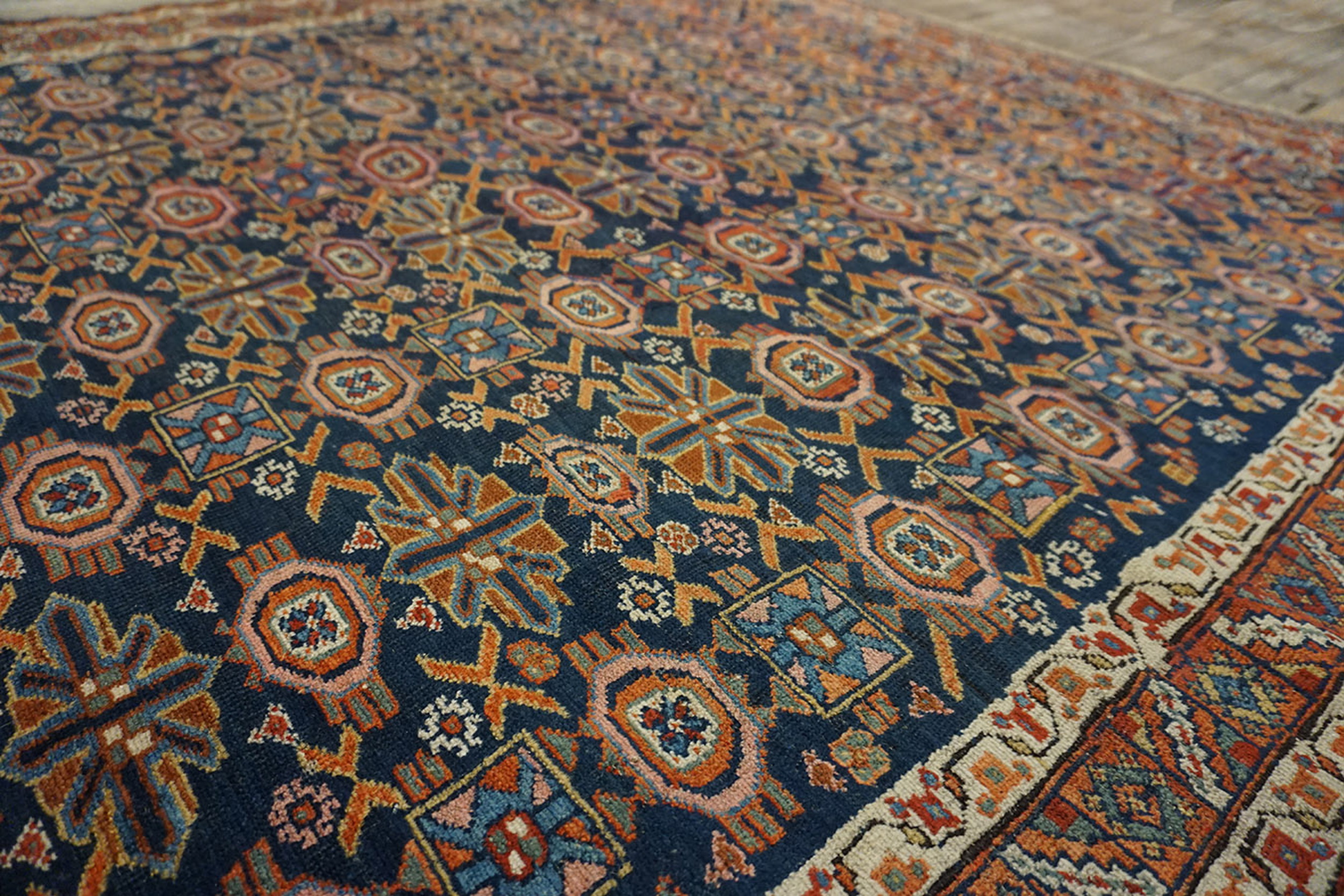 Antique Afshar Persian Blue 1890s Rug, Circa Date: 1890s. This exceptional example of Afshar weaving dates to the late 19th century, representing the sophisticated geometric artistry of the nomadic Qashqai and Afshar tribes of Southern Persia. Its enduring quality and historical significance place it firmly within our curated collection of antique rugs.