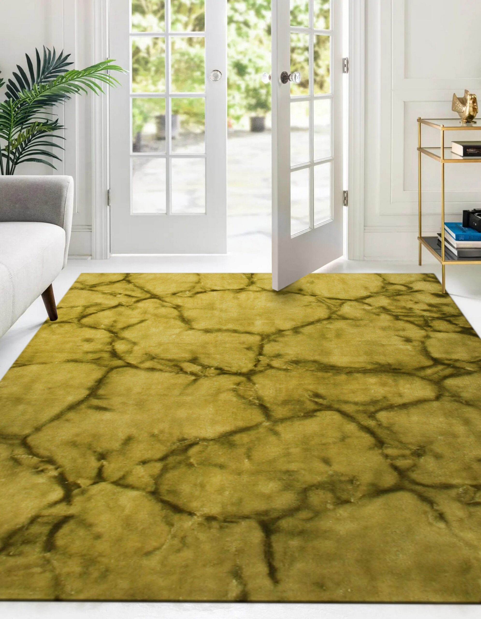 The palette is a sophisticated study in tonal variation, featuring deep olive and moss hues that anchor the design. This rich, earthy coloration makes it a compelling choice for collectors seeking green color rugs that provide depth without overwhelming the space.