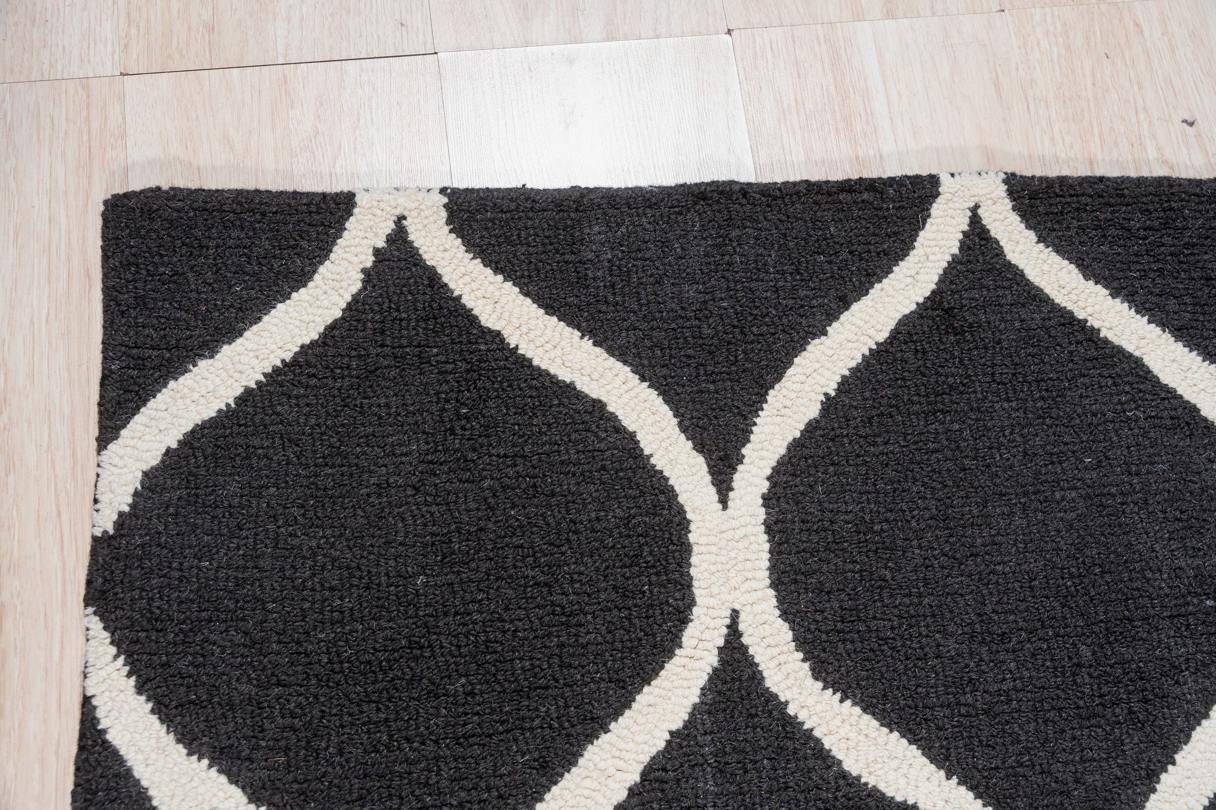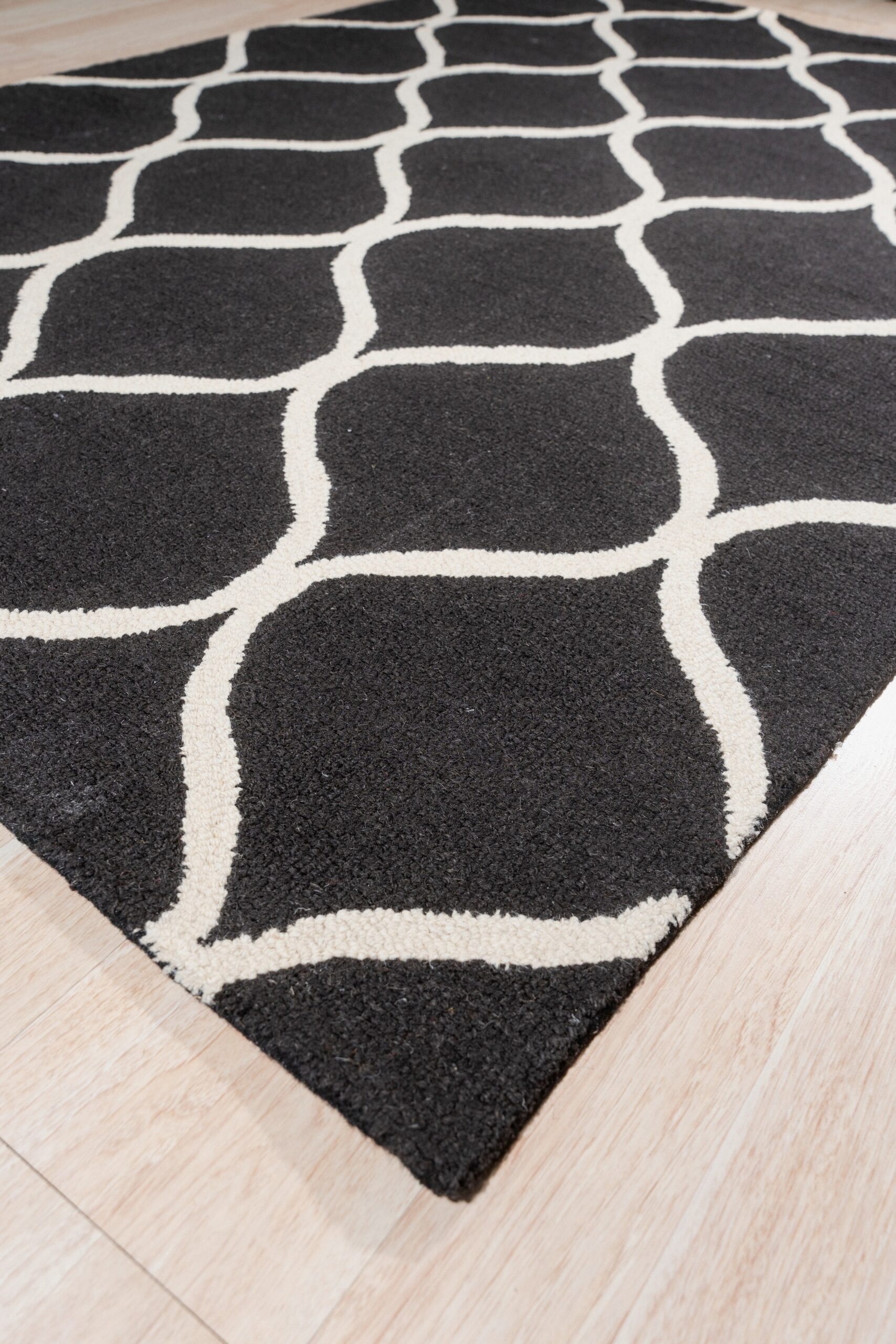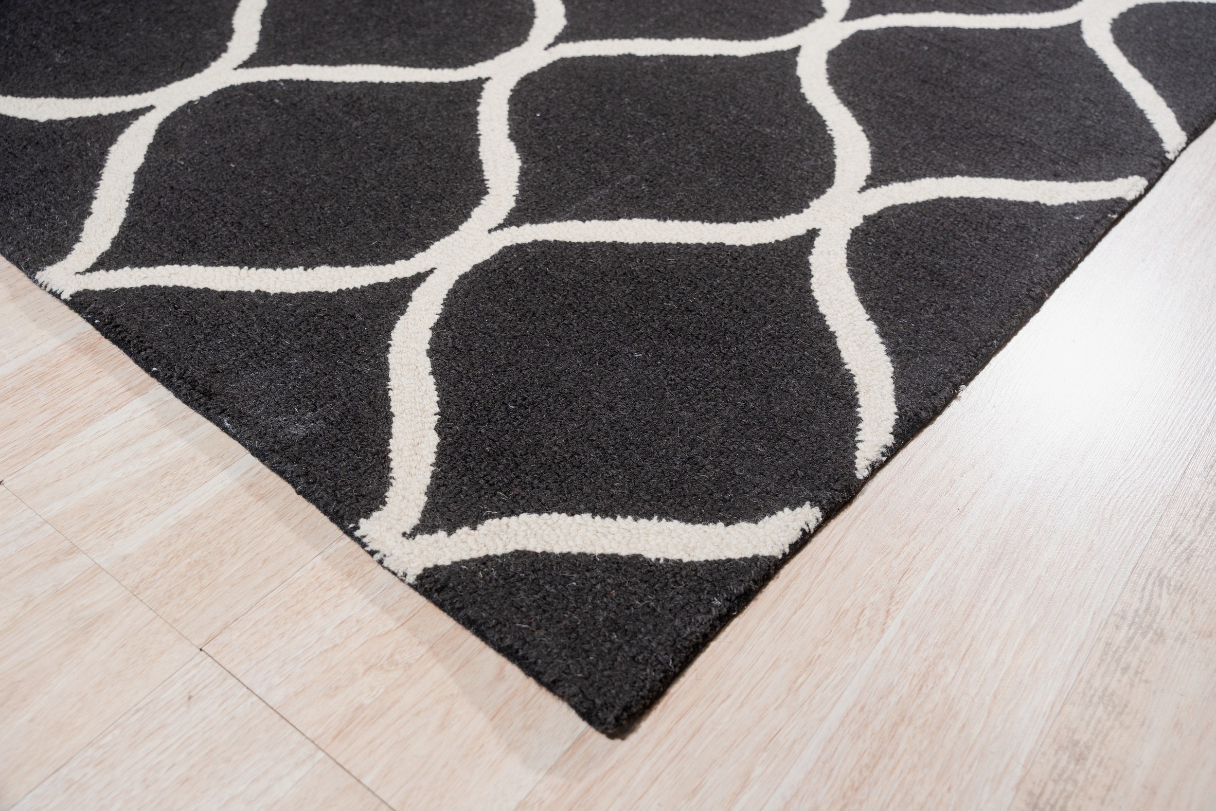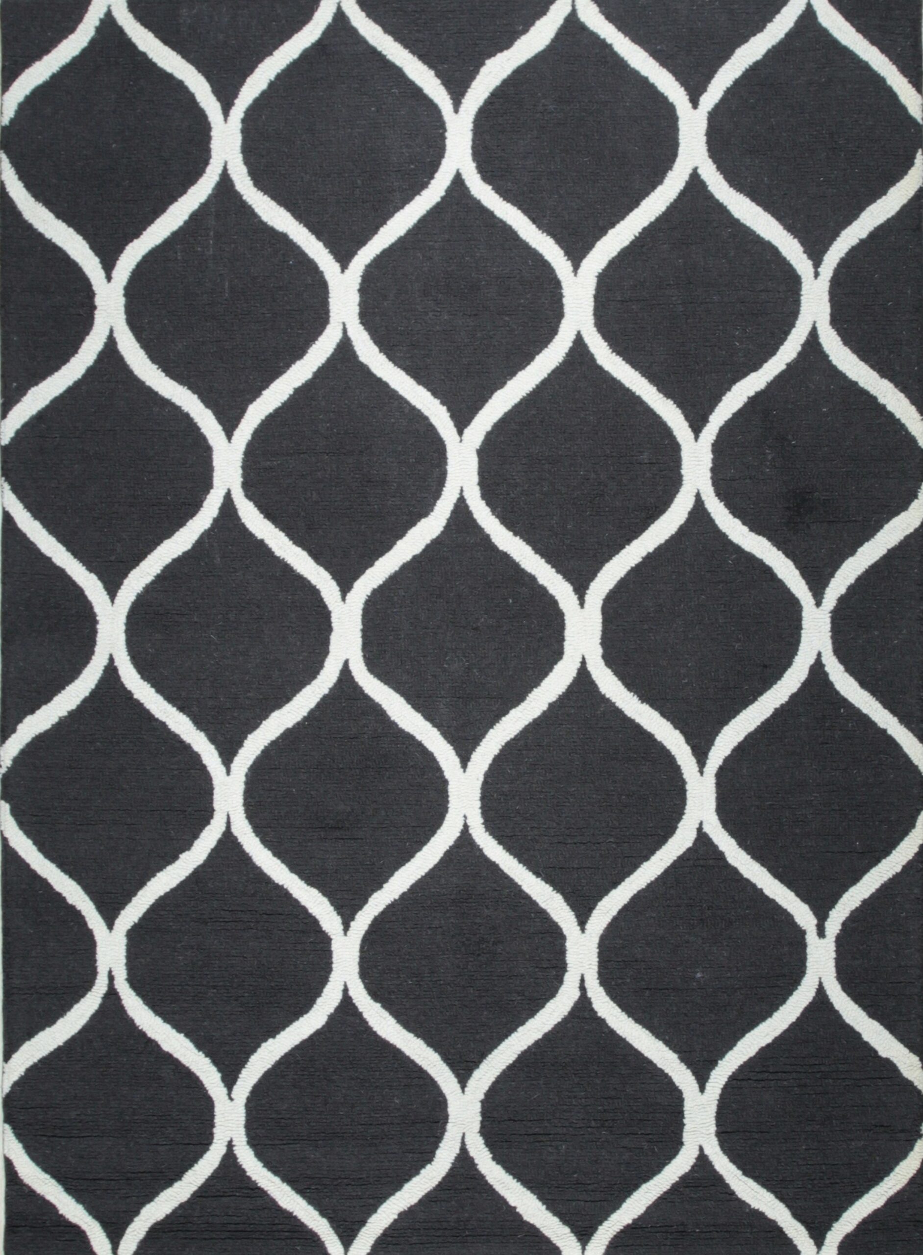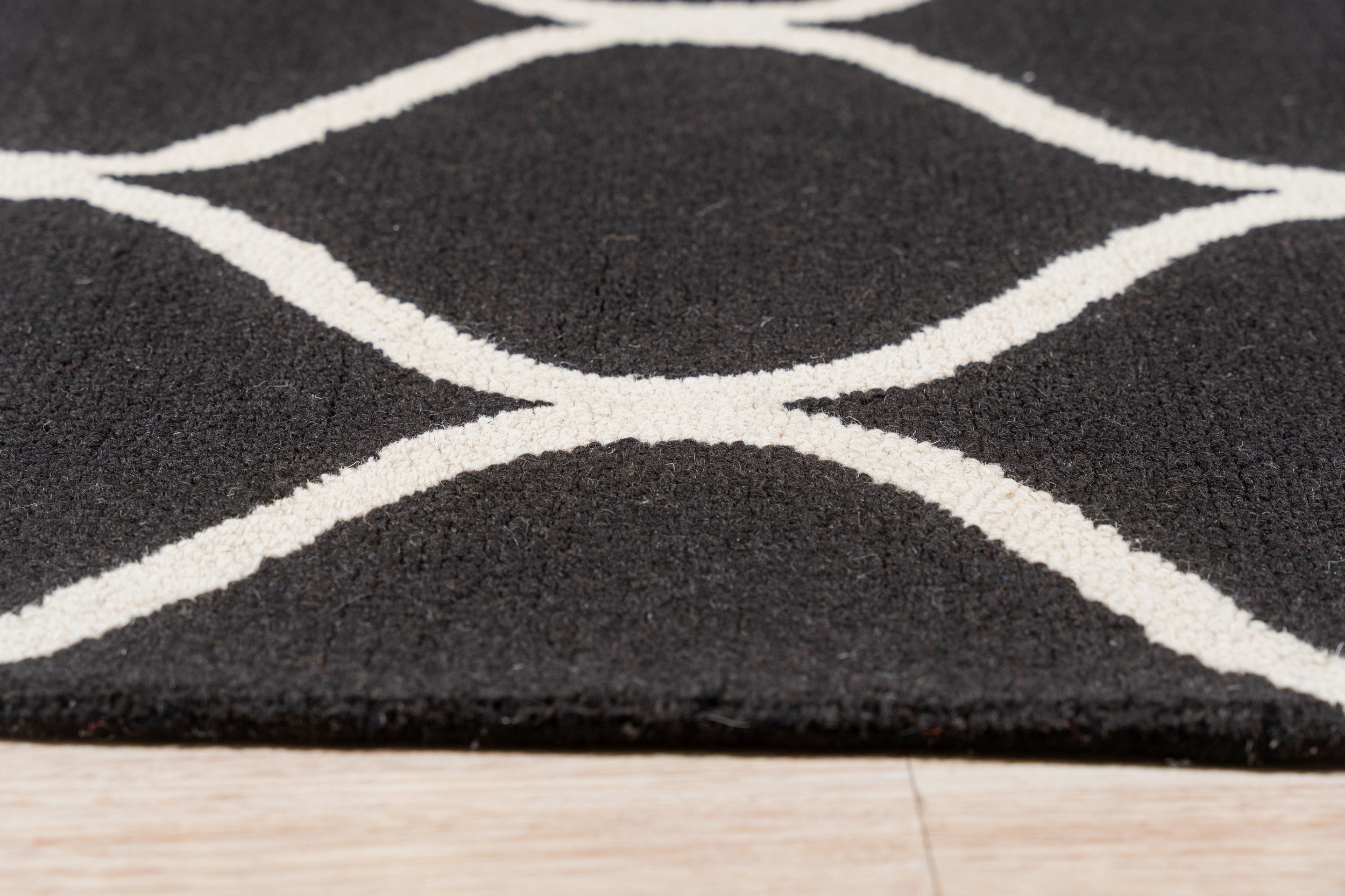 Sloane Willow Navy Hand Tufted Wool Rug, Country of Origin: India. This contemporary piece showcases a bold geometric lattice, executed in plush, hand-tufted wool. The quality craftsmanship and dense pile reflect the long-standing textile traditions of Indian rugs, ensuring both durability and luxurious texture.