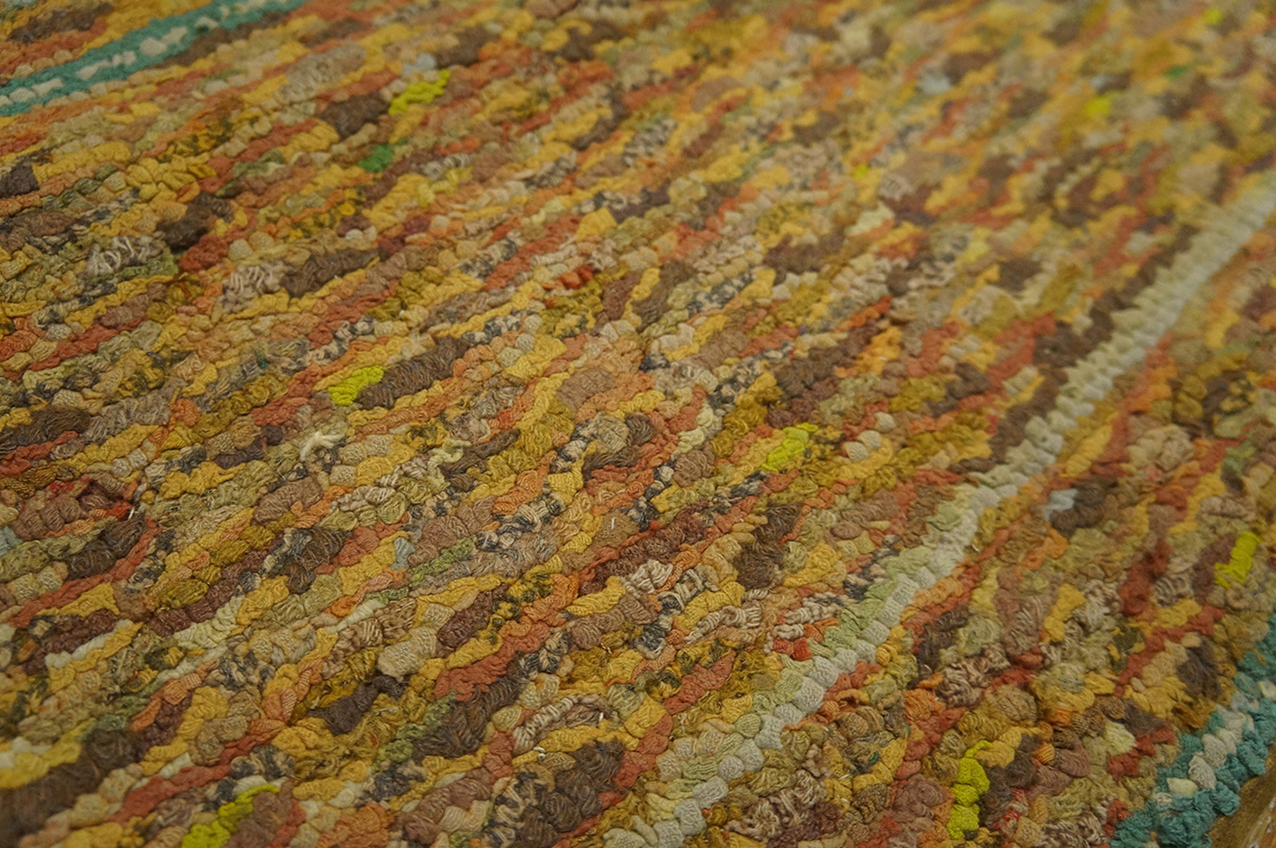 Woven during the 1920s, this piece originates from the tradition of American USA Rugs, where the hooked technique allowed for creative expression using recycled or repurposed materials. The dense, mottled surface is composed of countless small loops of wool, creating a highly tactile and durable floor covering that speaks to the era's resourceful aesthetic.