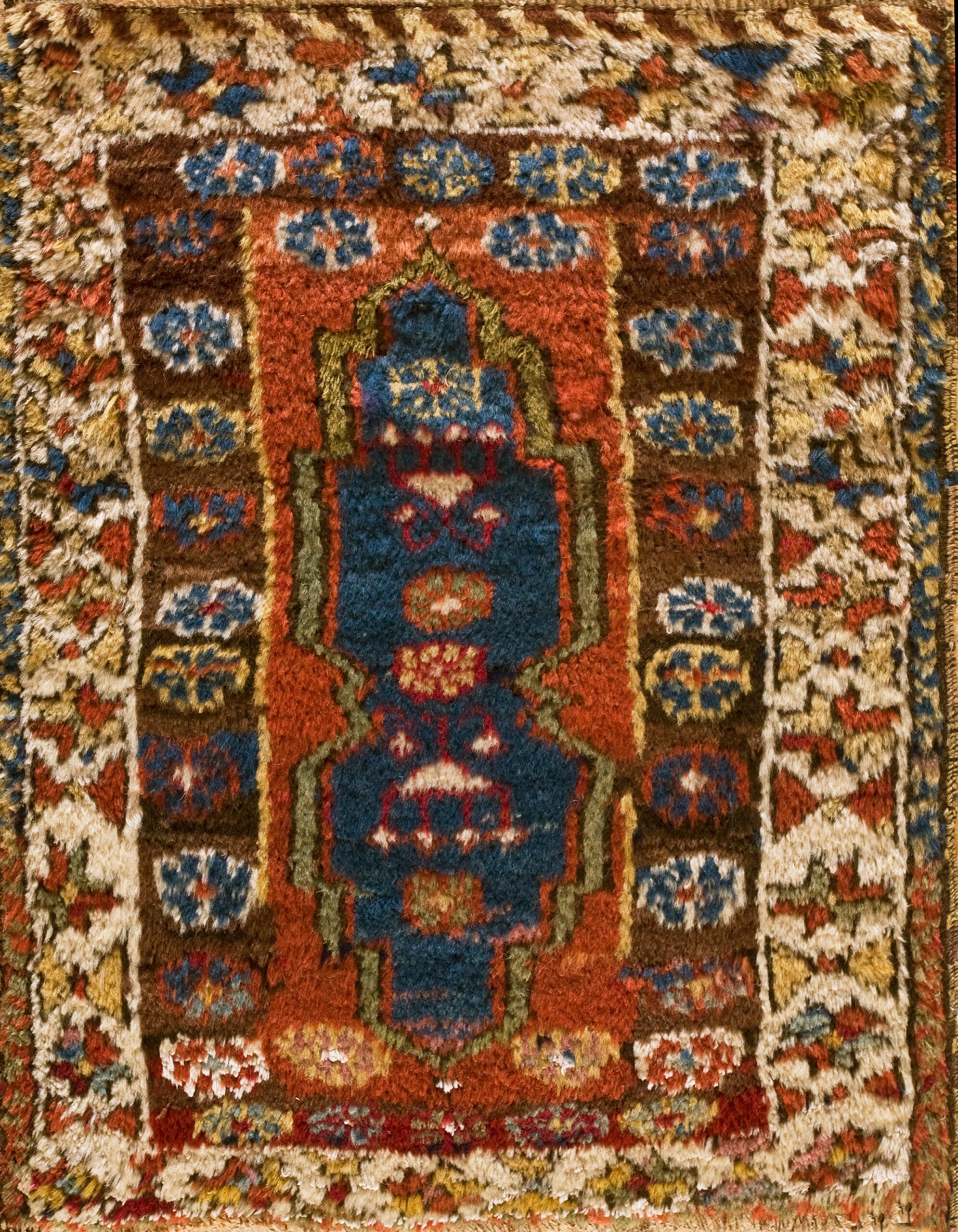Due to its specialized origin and dimensions, this textile falls into the category of small scatter size rugs, making it perfectly suited for display as a wall hanging, an accent piece, or layered within a sophisticated interior design scheme. Its primitive charm and remarkable state of preservation ensure its status as a unique cultural artifact.