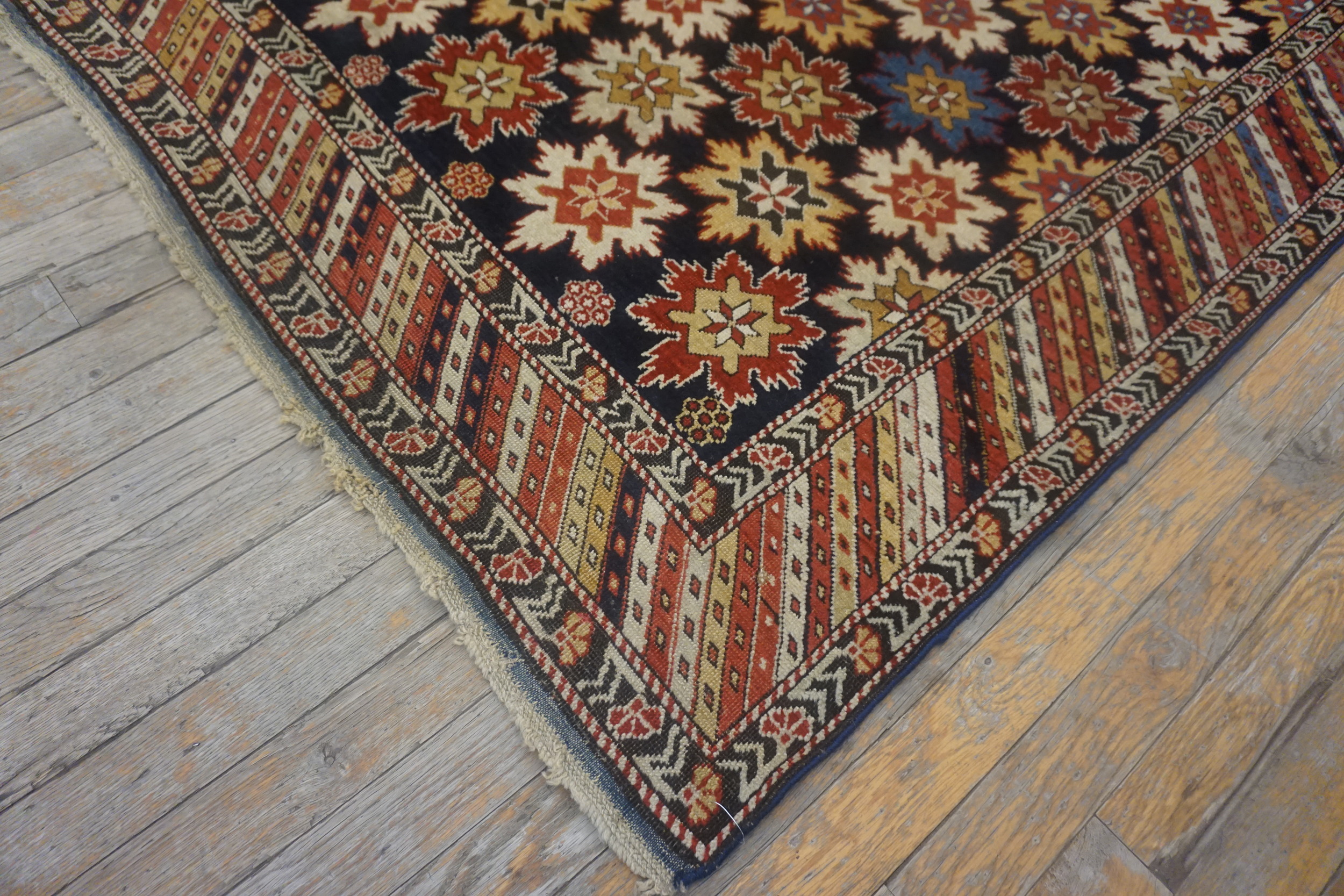 Antique Caucasian – Kuba Knotted Rug, Circa Date: 1880s. This exceptional example of 19th-century weaving represents the finest traditions of antique rugs from the Caucasus region, showcasing the distinctive geometric precision for which Kuba workshops are renowned.