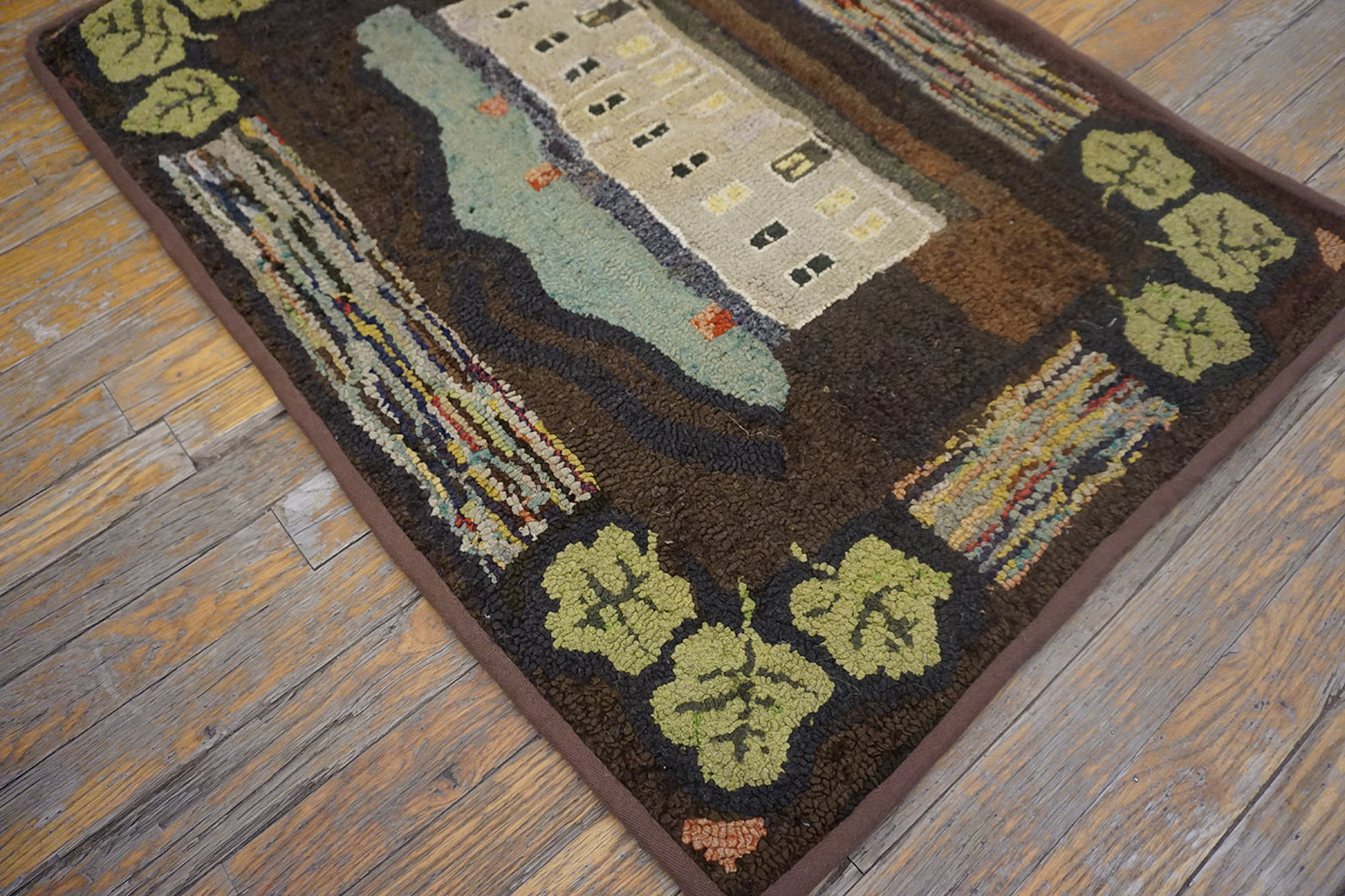 Antique American American Hooked Rug 1925, Country of Origin: American USA Rugs, Circa Date: 1925. This exceptional textile represents the best of early 20th-century folk art, utilizing the traditional hooked technique common to the American USA Rugs tradition. The piece captures a charming, naive perspective, characteristic of domestic textile production during this era.