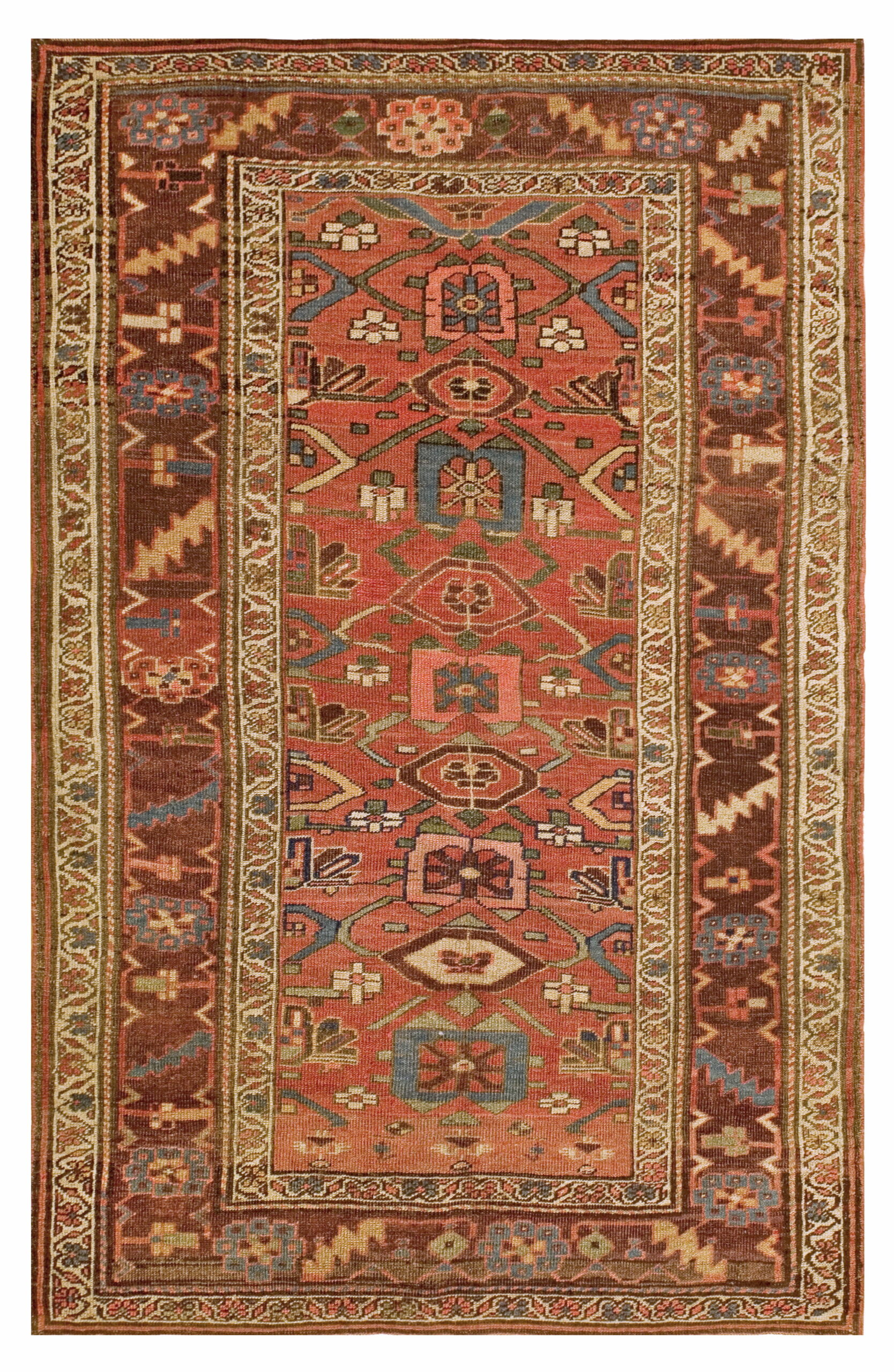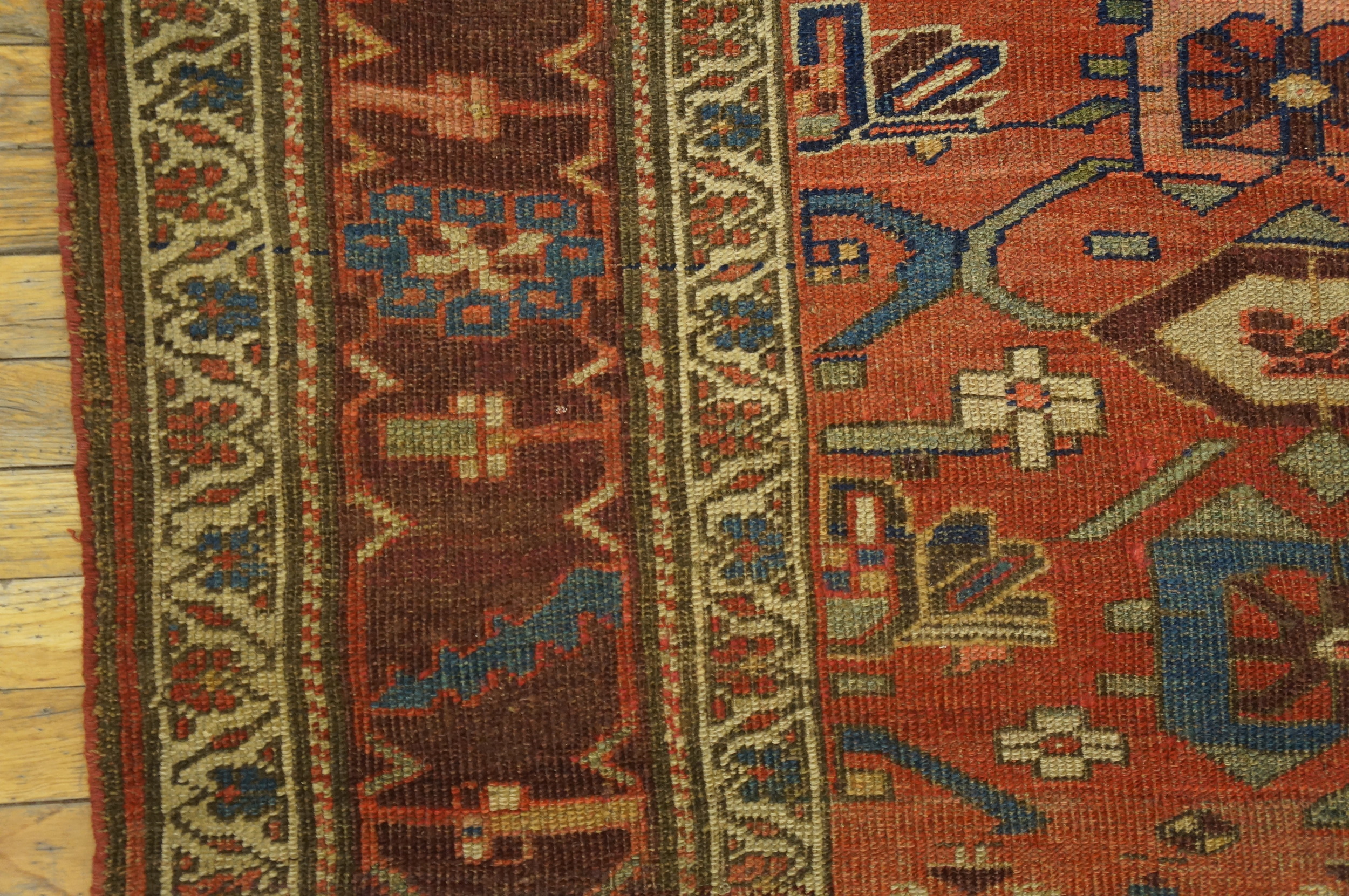 Woven entirely from hand-spun wool, this piece represents a superb investment in textile history. Its enduring quality and striking palette confirm its status among the finest examples of antique rugs available today, offering both decorative beauty and a tangible connection to the late Qajar era.