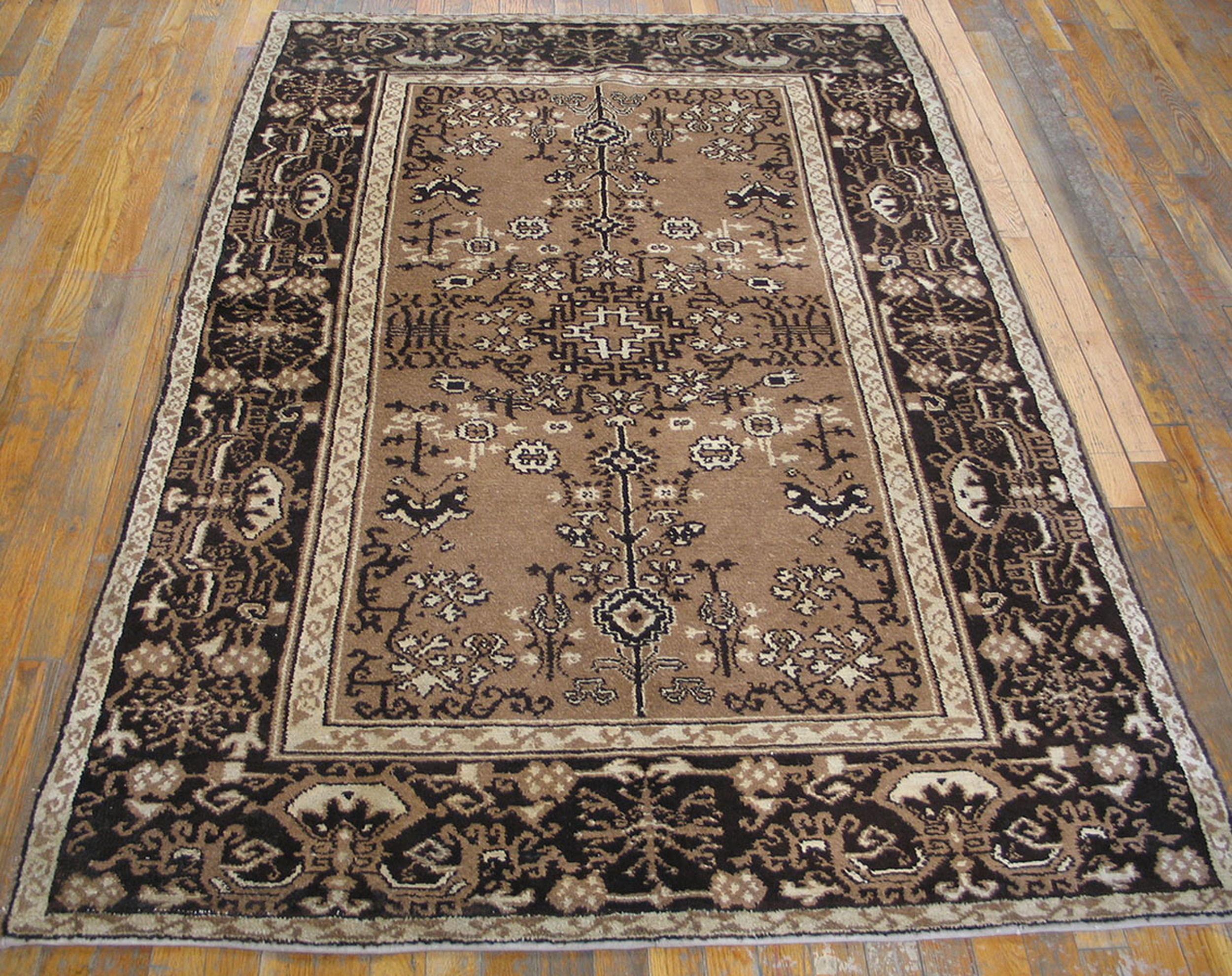 Antique Agra Small Scatter Size Wool Brown Rug, Circa Date: 1920s. This exceptional piece represents the enduring quality of early 20th-century Indian weaving. Its provenance places it among highly desirable antique rugs known for their dense wool pile and sophisticated construction.