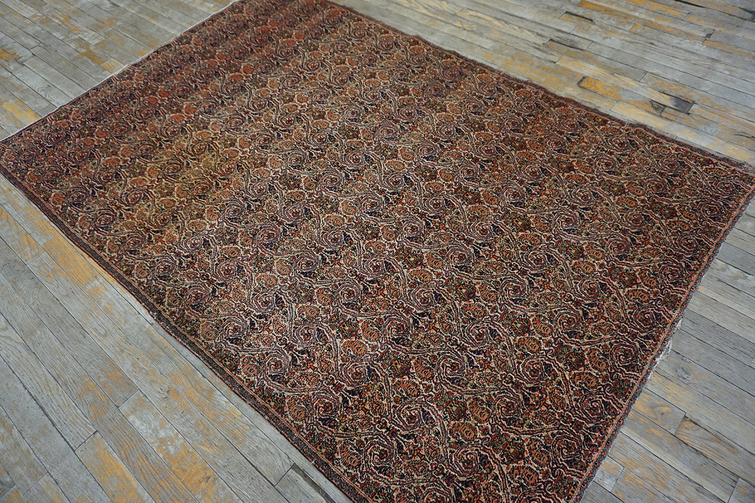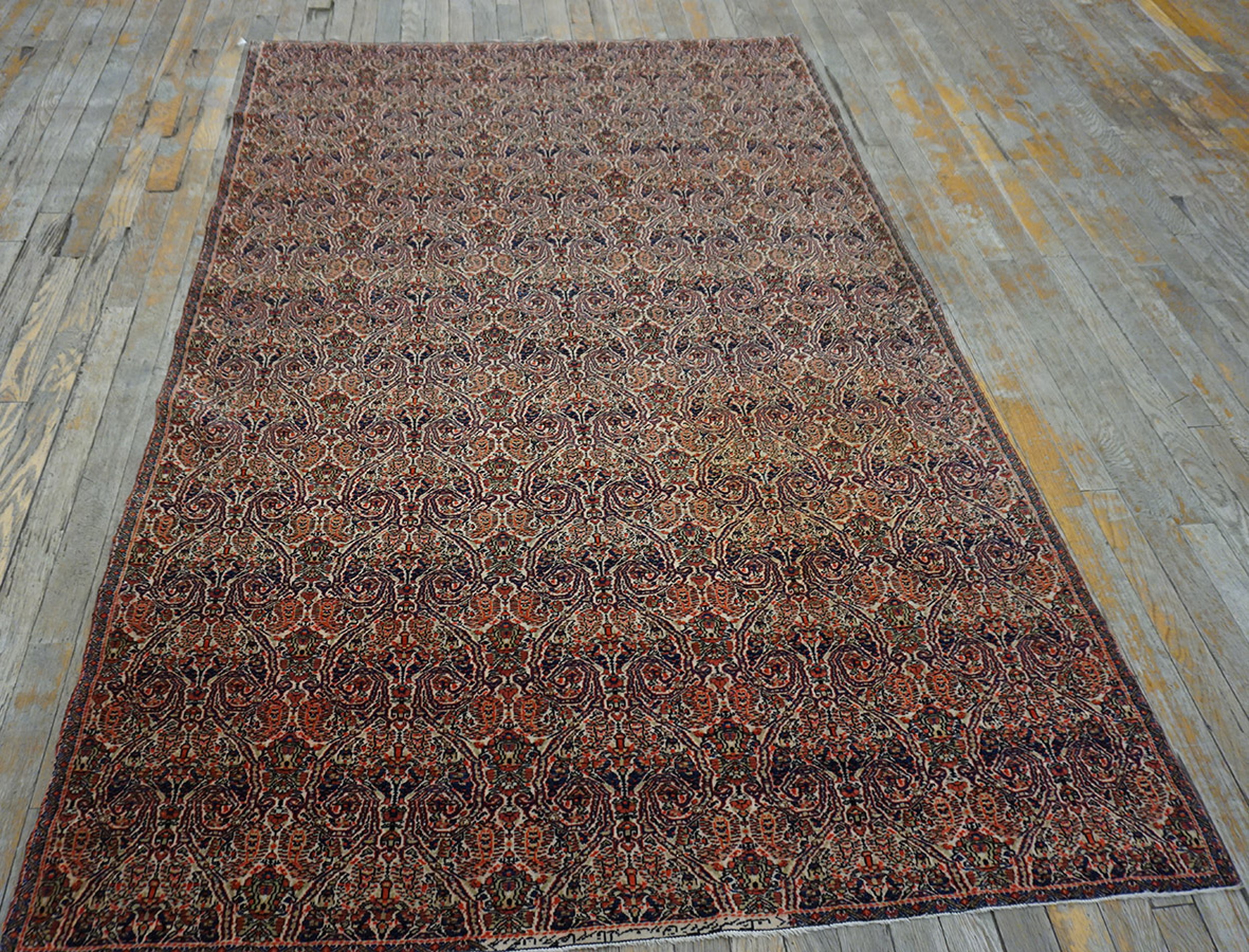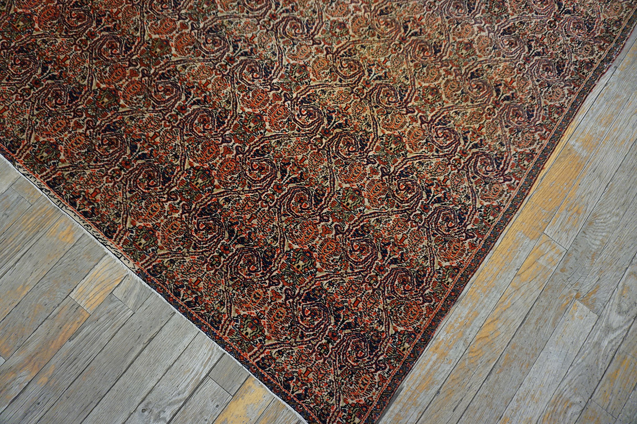 Antique Farahan Persian Ivory 1860s Rug, Circa Date: 1860s. This exceptional example of 19th-century Persian weaving hails from the Farahan district, renowned for its highly detailed, classical designs. The piece represents the pinnacle of craftsmanship found among antique rugs of the Qajar era, distinguished by its fine knotting and sophisticated use of natural dyes.
